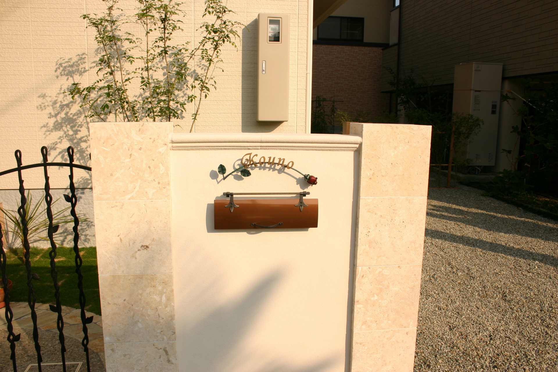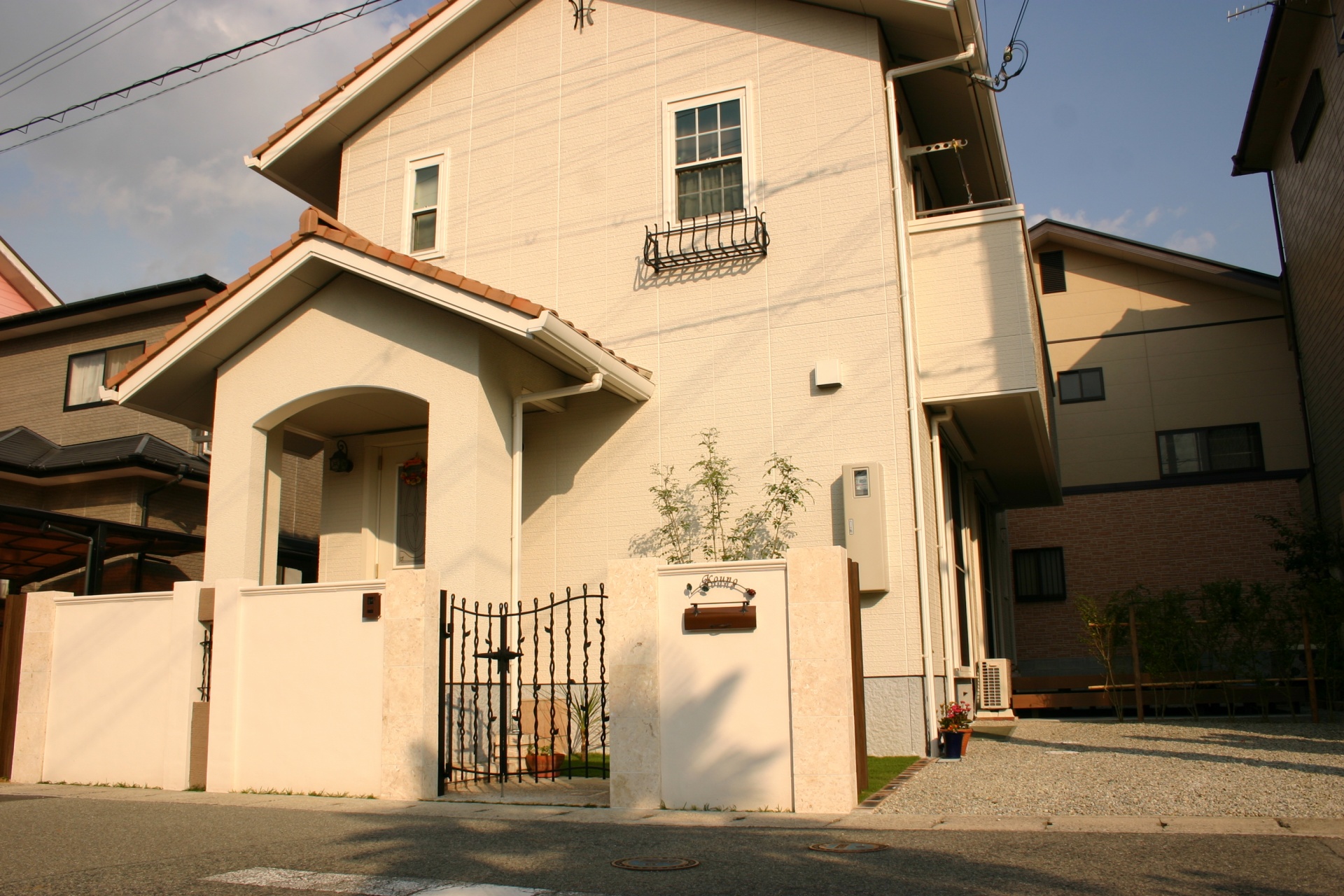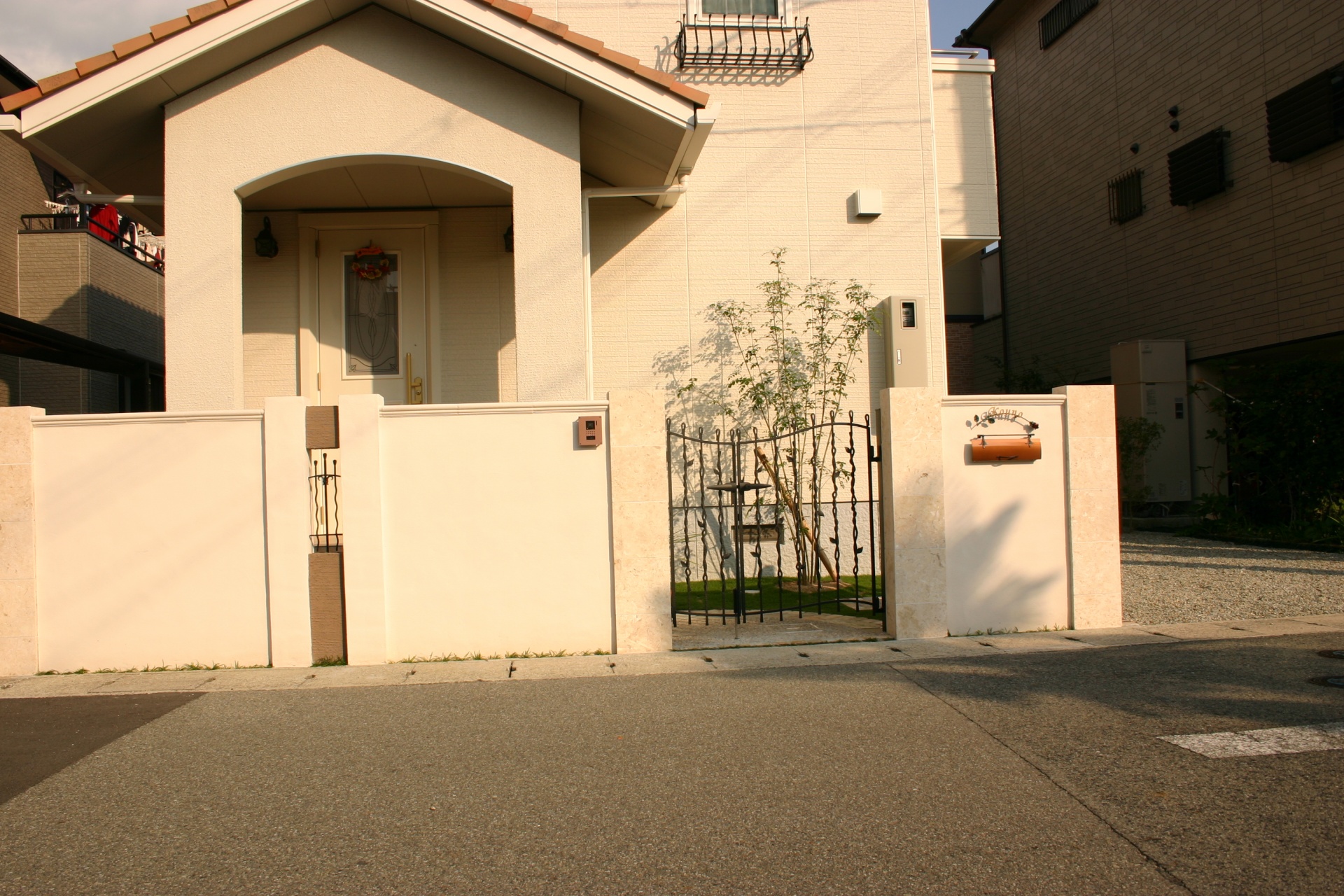 施工実績 建物を引き立たせる外構デザイン 赤穂市K様邸 シンプルな中にオレンジ色の屋根瓦が印象的な建物の赤穂市K様邸。 動きのある鋳物門扉で建物の格子とリンクさせ、 玄関前の塀の中心部には デザイン性のある鋳物フェンスと茶系で色替えをした部分が建物との調和を図っています。