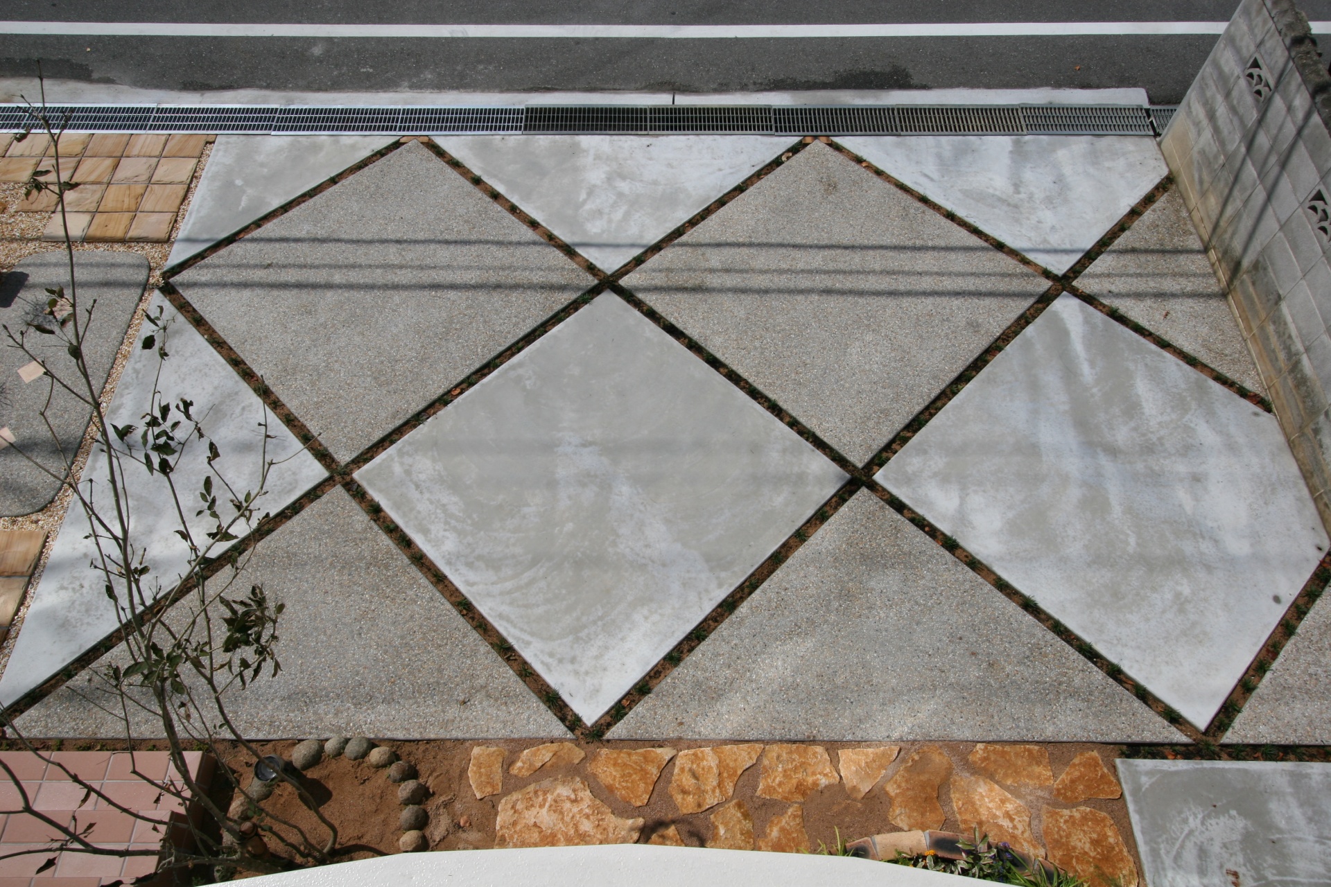 ひし形でガレージデザイン|洗い出し+コンクリート