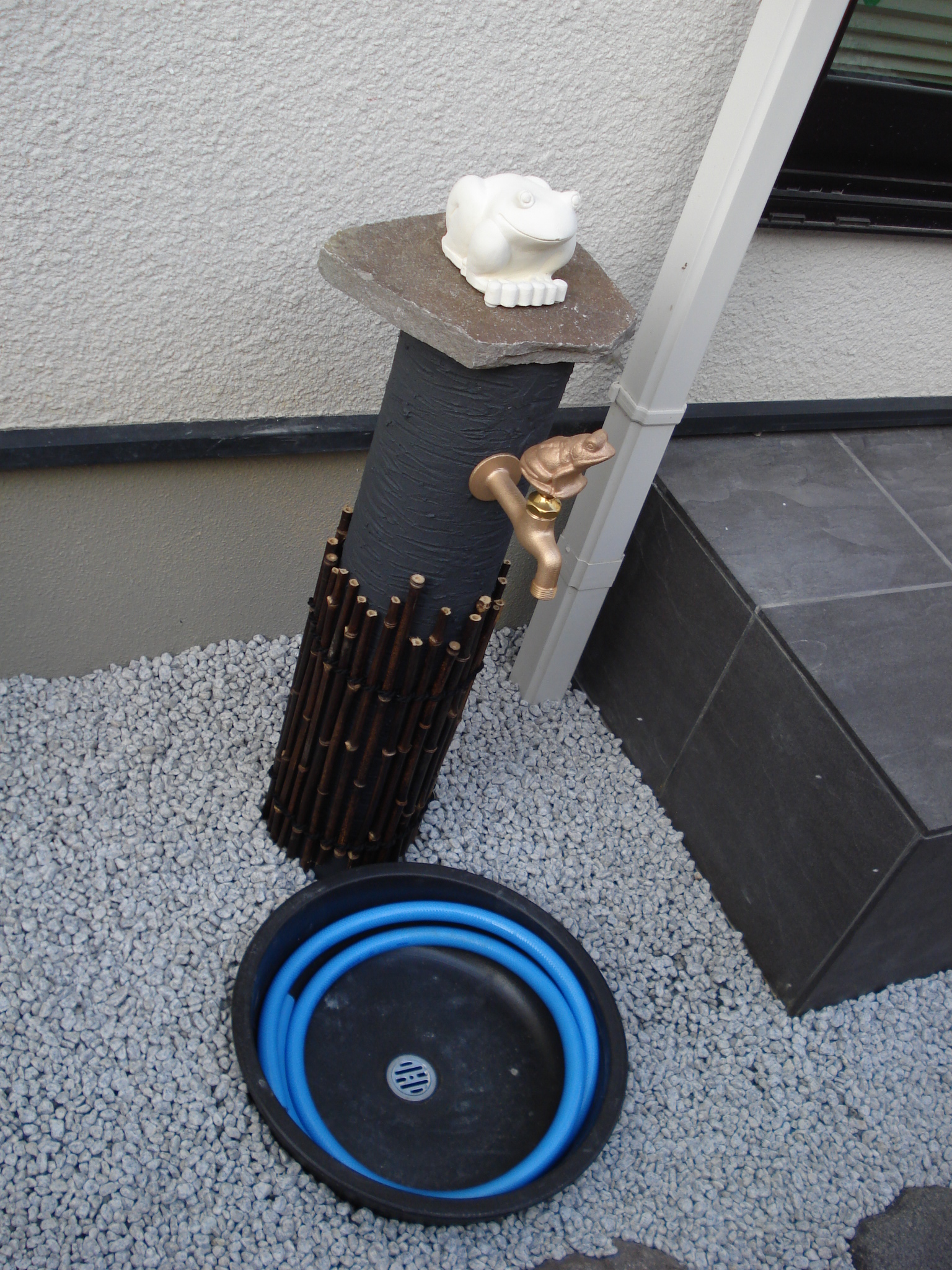 お客様の「カエル」好きなことをお庭に取り入れてみました。 和風なお庭に可愛らしさが漂う立水栓が出来ました。