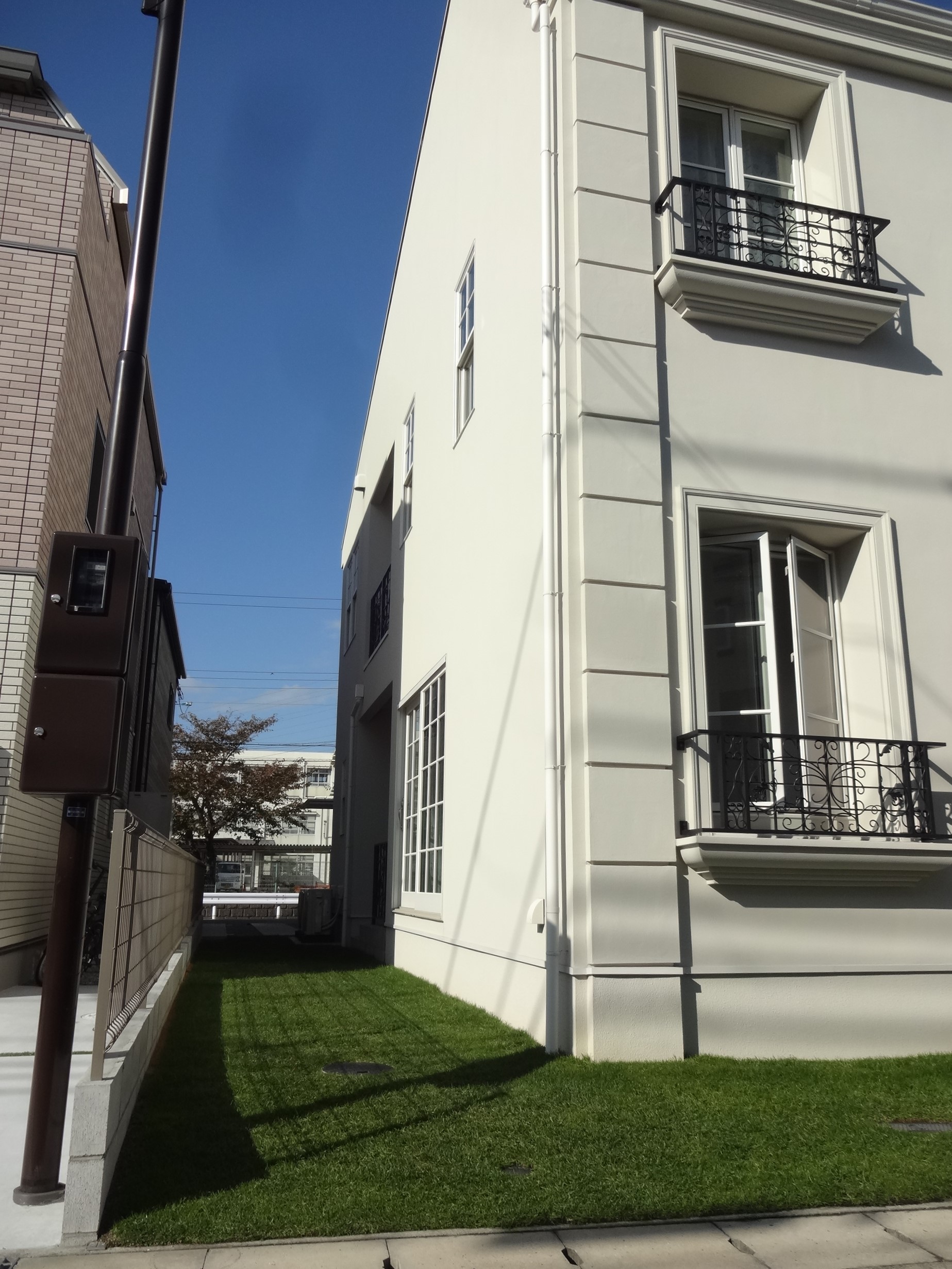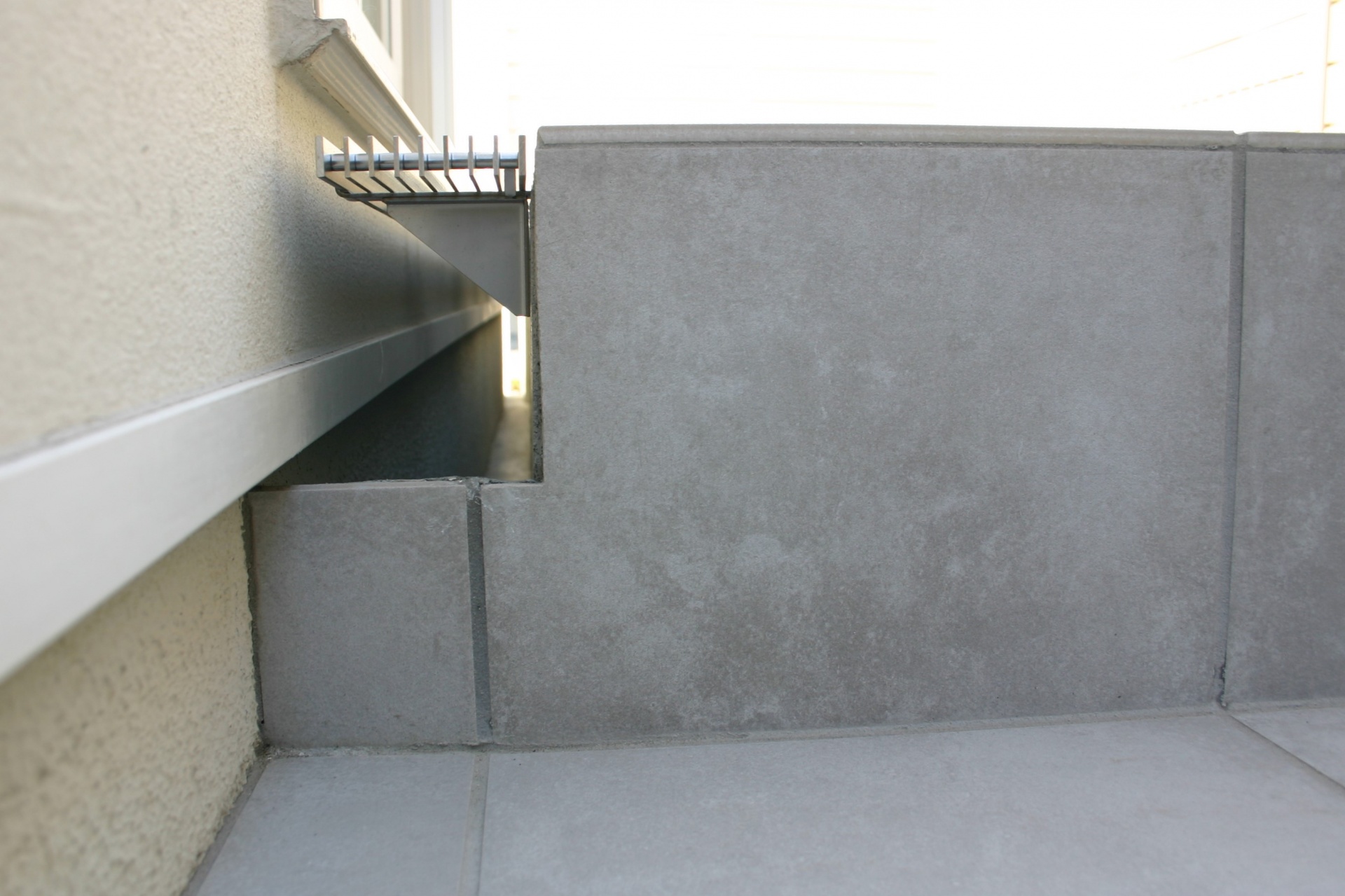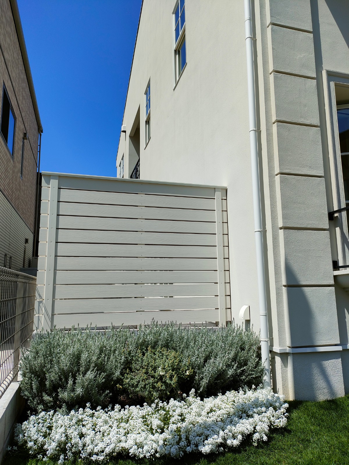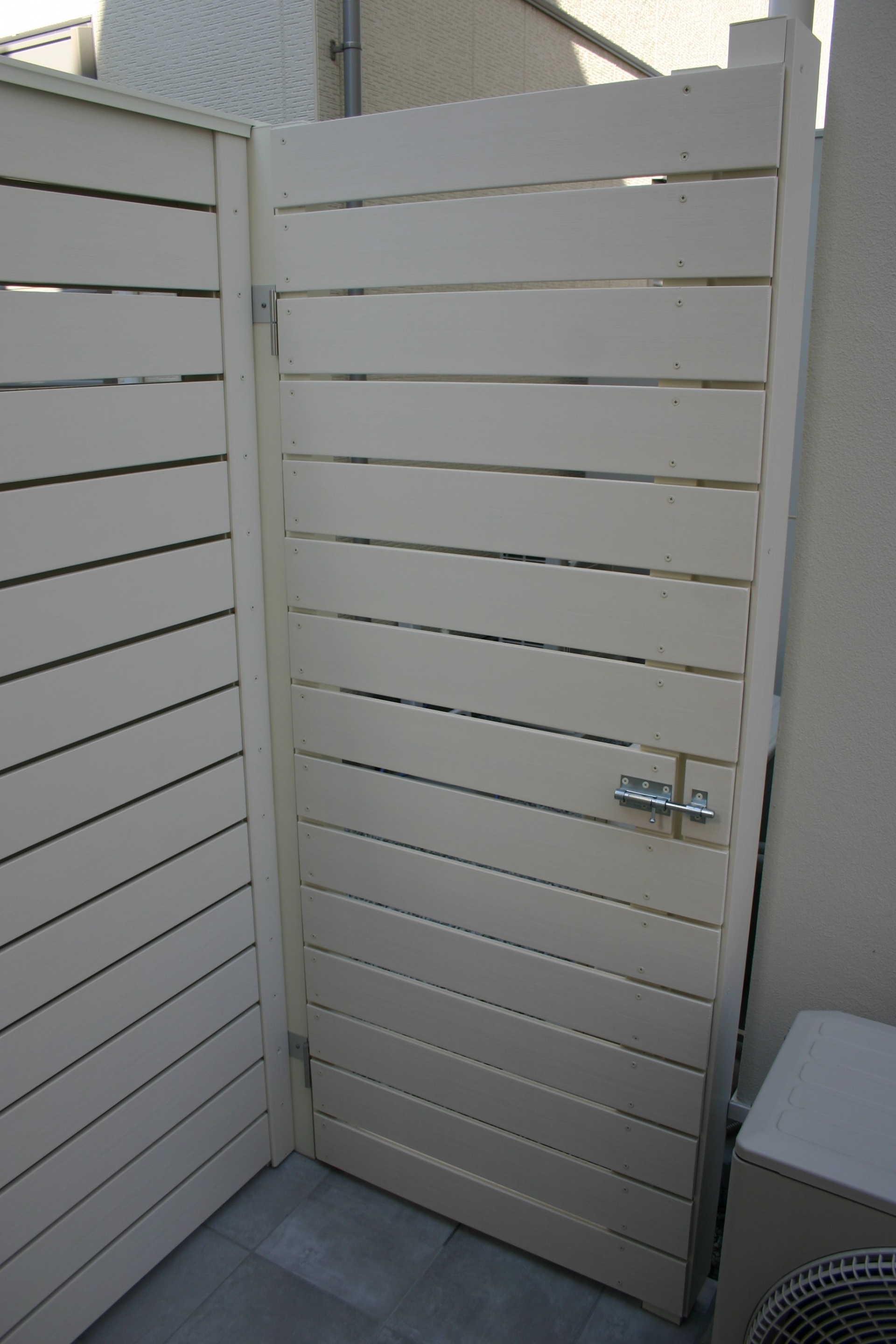 施工実績 建物と調和した拘りアルファウッドフェンス 姫路市LEMO様邸 芝生一面のオープンなお庭から、目隠しフェンスでプライベートを満喫できるお庭へと生まれ変わりました白で統一されたプライベートガーデンは圧迫感もなくフェンスの隙間から適度な風を取り込みます勝手口前のスペースには300□タイルとアイアンの手摺りが施工されていました同じタイルを使用しリビングからも繋がる一体感のあるおしゃれな空間となりました植栽スペースも確保し お好きなお花を植えて頂き眺めても楽しいお庭になっています 外から見たお庭は年中緑がいっぱいの天然芝生を張っていました4年前の完成写真はこちらからどうぞ4年前の施工途中はブログでご紹介しております 一部天然芝生を残しそれ以外は視線を遮る目隠しフェンスにてプライベート空間を作らせていただきました道路面から見える箇所はフェンスの板材を両面張りにして意匠性をだしています 髙いタイルテラスからは高さ約1m50cm2段下がった土間テラスからは約2mあります隣地からの視線を気にせずにお過ごしいただけます 3方向目隠しフェンスを立て一部 出入り用のフェンスと同じデザインで扉を付けました アルファウッドオリジナル門扉 閉 閉めている際は横張りフェンスとデザインを合わせ一体感があります アルファウッドオリジナル門扉 開内側に錠があり内開き仕様です 爽やかな風がリビングへと吹き込むます タイルテラスも建物掃出し窓より段差が無いように高さをあげています建物外壁と干渉しない様に溝をとりすき間を専用のグレーチング(テラスエッジ)で塞いでいます水勾配も建物側にとっているため建物とのすき間が水路にもなります 建物際にグレーチング(テラスエッジ)ステンレス製のシンプルなデザインなのでこちらのタイルの色目とも良く合いますね 基礎から上の水切りや建物に直接タイルを当てることはできないのですき間を開けて、それを塞ぐためのグレーチング LEMO様より2期工事のご依頼としてお声がけいただきました天然芝はお手入れの大変さもあり、隣地に家が建ったことも踏まえてプライベートな空間を作りたいとのご要望でした当初はタイルテラスに木製のパーゴラに植物を絡ませて緑を取り入れた目隠しも検討されていました木製パーゴラだと塗装等のメンテナンスに手間や時間がかかり植物を絡ませると塗装も出来なくなりますそこでご提案させて頂いたのがディーズガーデンのアルファウッドを使用した横張りのフェンスでの目隠しでした経年変化にも強く耐久性もあり、色も建物と調和するアイボリー色がピッタリでした施工中も何度も現地で打ち合わせを重ね進めさせていただきましたこちらのミスでご迷惑をお掛けしましたが寛大な心でご対応してくだいました事 感謝しております今後とも 株式会社LEMO様が益々のご発展をされることお祈りしております