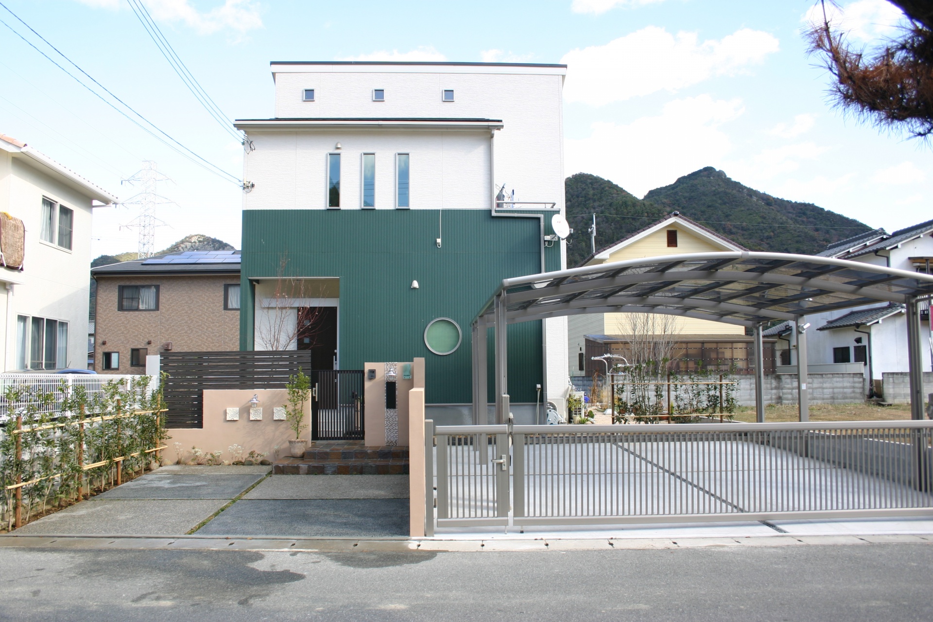 施工実績 赤穂市新築外構 デザインタイルでアジアンスタイル グリーンとホワイトのツートンカラーのS様邸。建物本体の丸窓に合わせ、サイド塀に丸窓をデザインしました。落ち着いた色合いで土間関係をまとめ、アジアンなイメージに仕上がりました。Planning:Kajiwara 夜のライトアップ。 デザインタイルをマリンランプがやさしく照らします。 塀にはタカショー アートウッドフェンスを使用。 水道栓にはエクステージイメージキャラクター カエルクンが・・ お客様の声 プランニングに感動し依頼しました。 結果、色々な無理なお願いも聞いて頂き予想以上の出来に満足のいく完成となりました。 エクステージさんに頼んで本当に良かったと思います。 ありがとうございました。