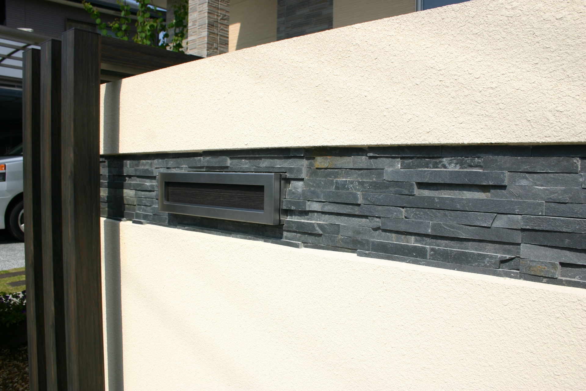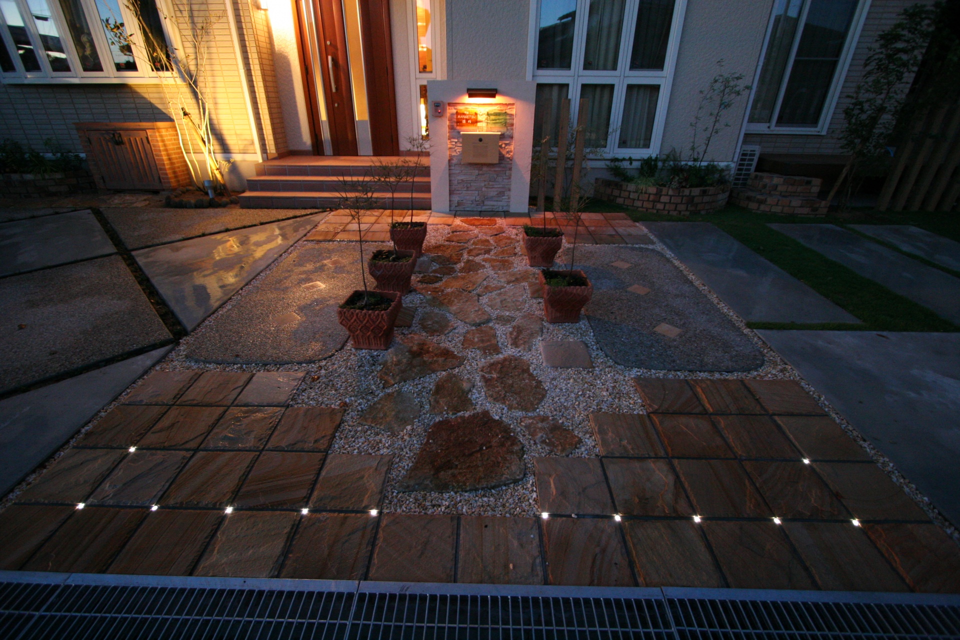 施工実績 たつの市新築外構 エバーアートウッドデザイン門柱 玄関扉のウッドをエクステリアの空間に取り入れてみました。門柱はニッチ加工の中に石目調のタイルをセレクト。落ち着いたモノトーンのエクステリアに仕上がりました。 お客様の声 最初から最後まで納得のいく内容でした。 デザインについても要望通りの仕上がりになり満足しています。 完成後、自分の業者選択に間違いが無かったと確信しました。