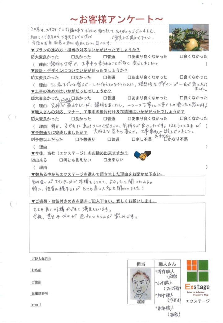 知り合いがエクステージで外構をしていてよかったと聞いたから。特に担当の梶原さんがとても良い人☆と聞いていました!