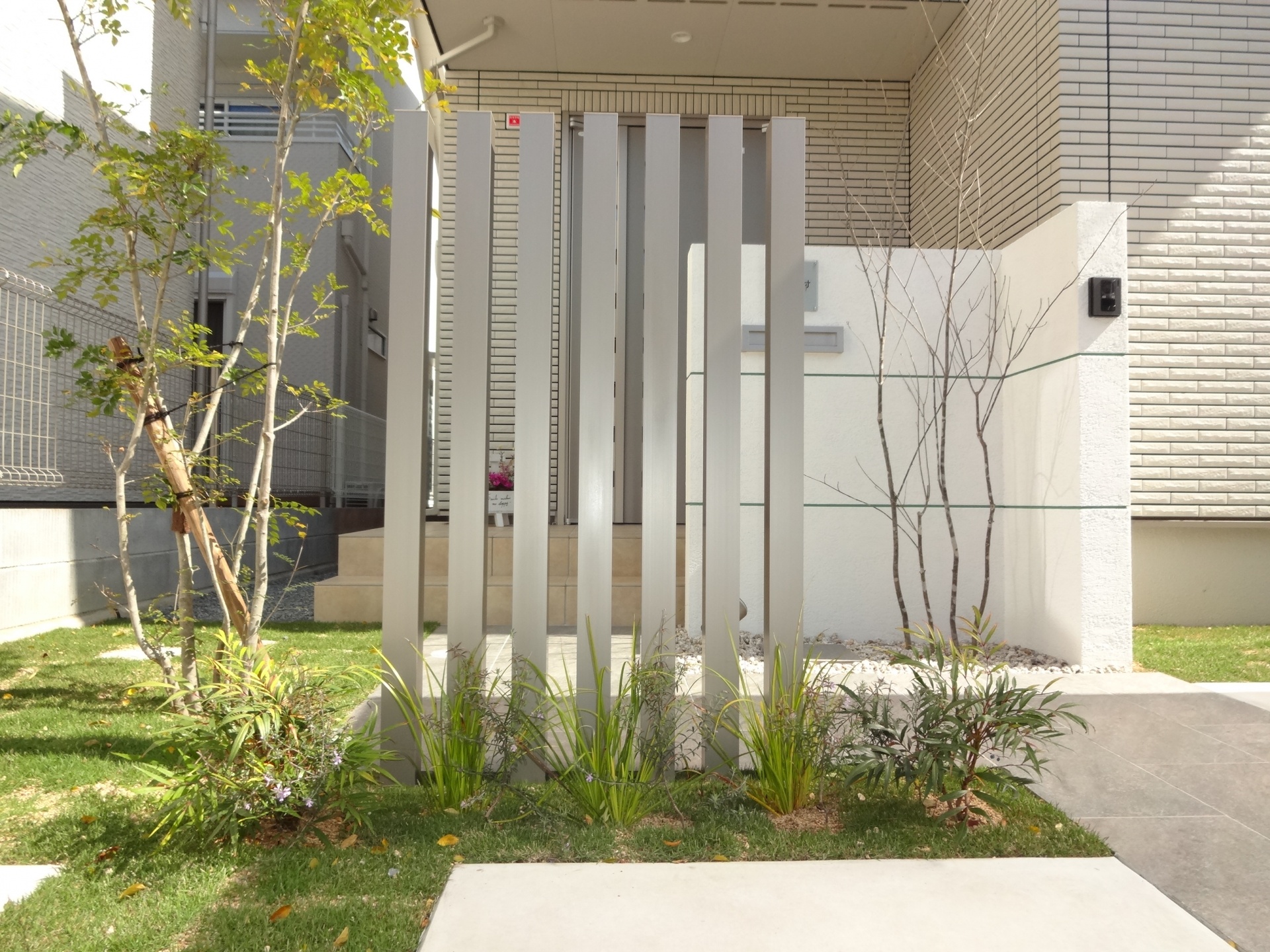 とても良い外構ができて満足しています。今後、芝生や木々が色づいていくのが楽しみです。