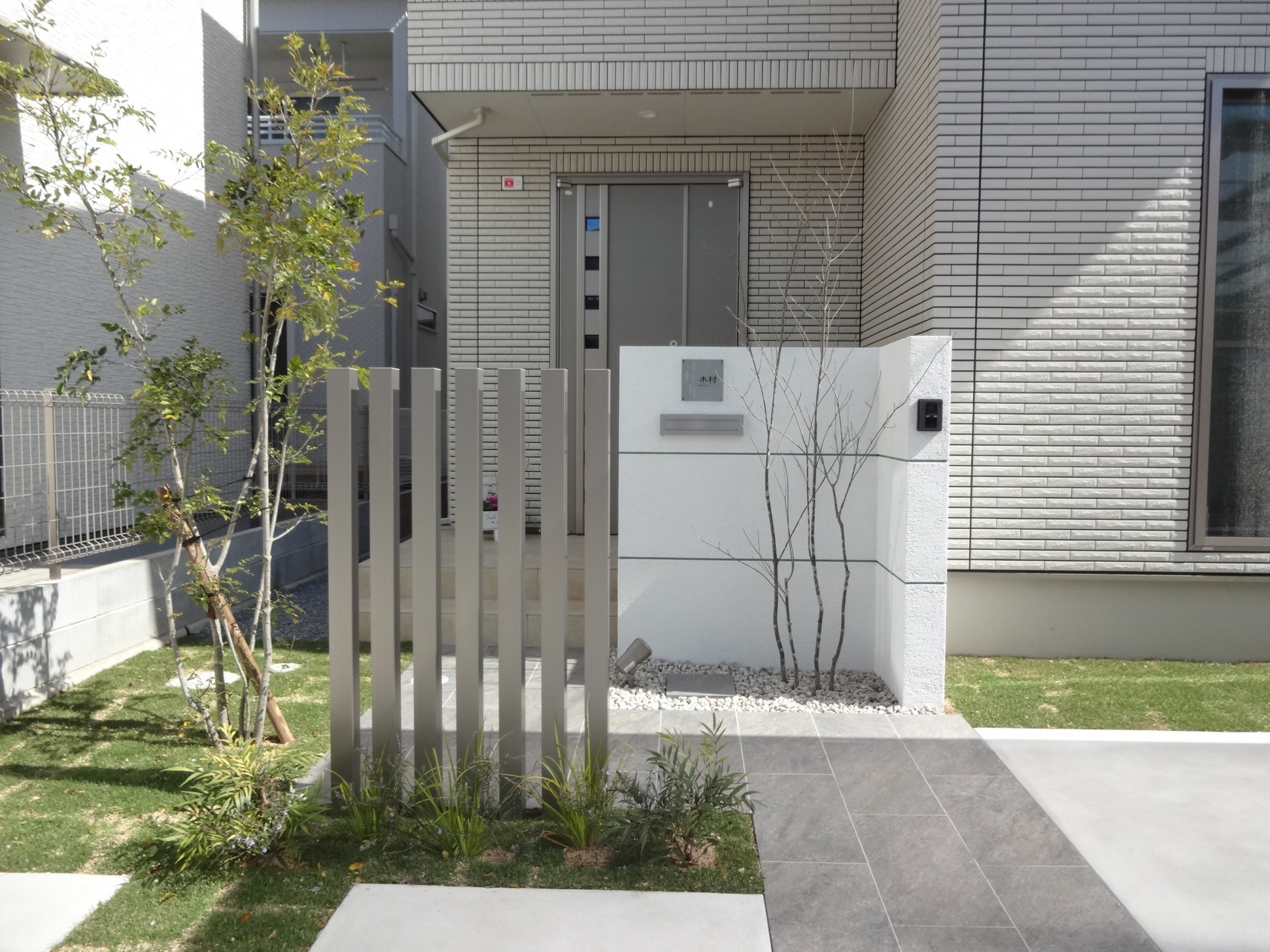姫路市新築外構 シンプルモダン|セミクローズの門回り