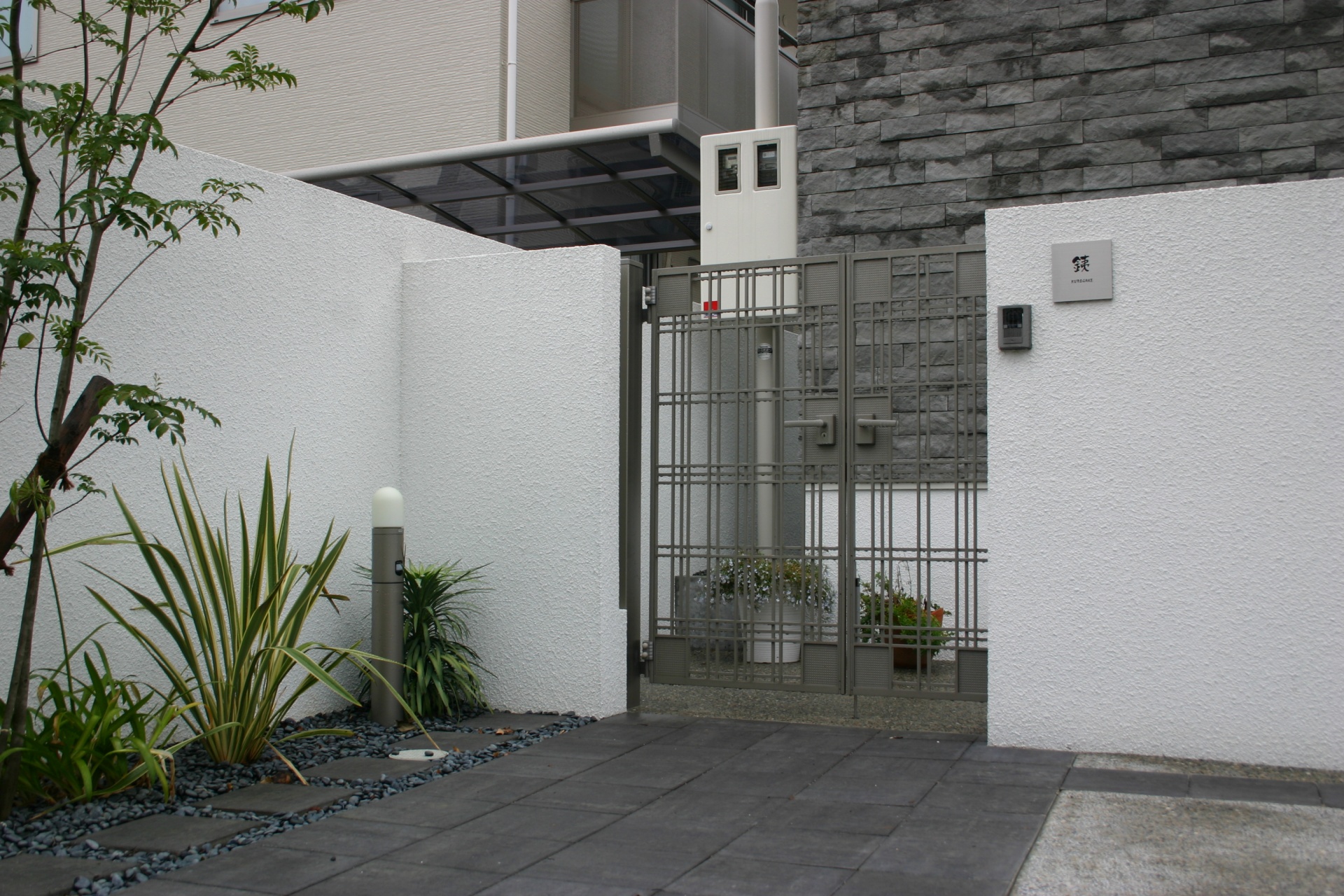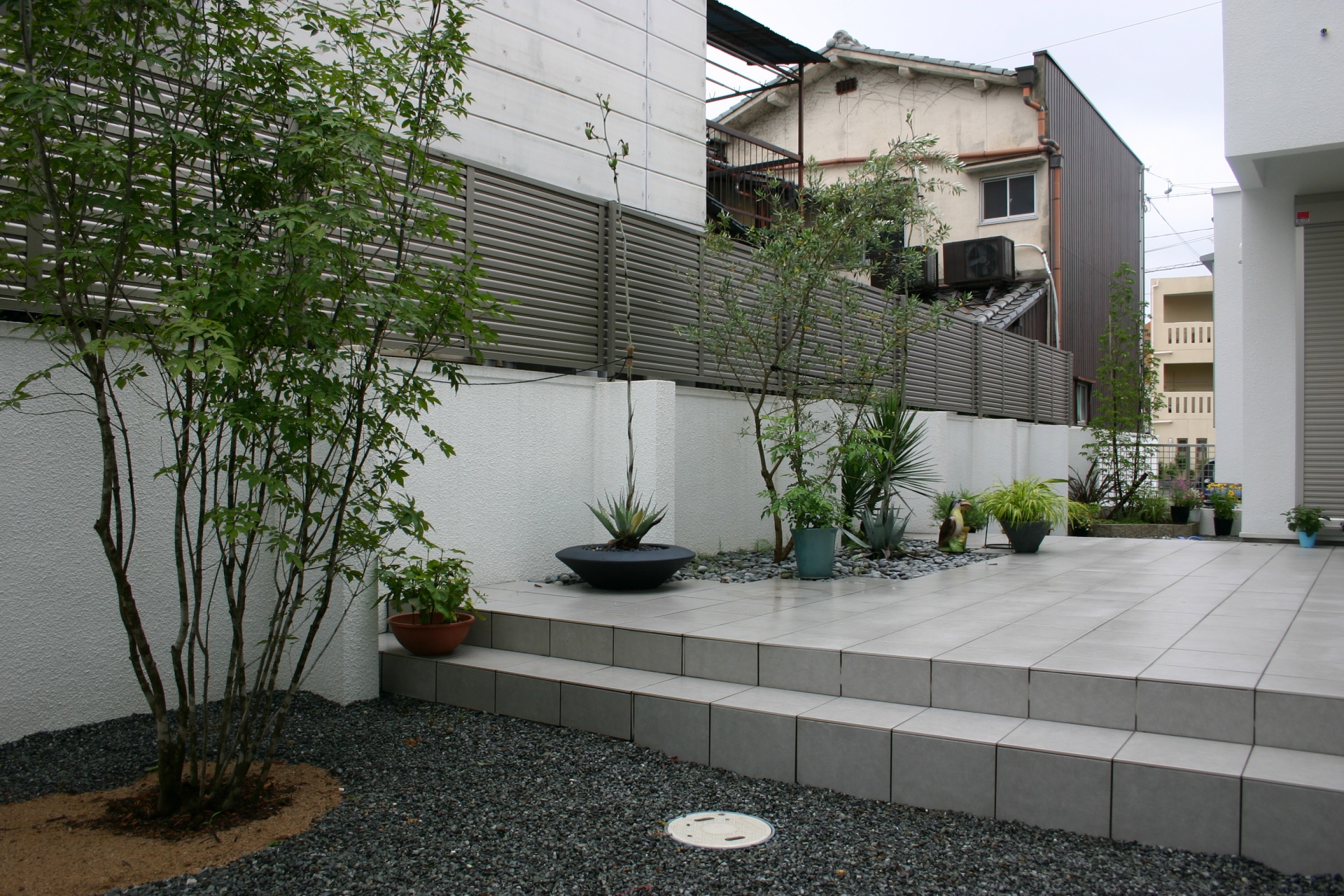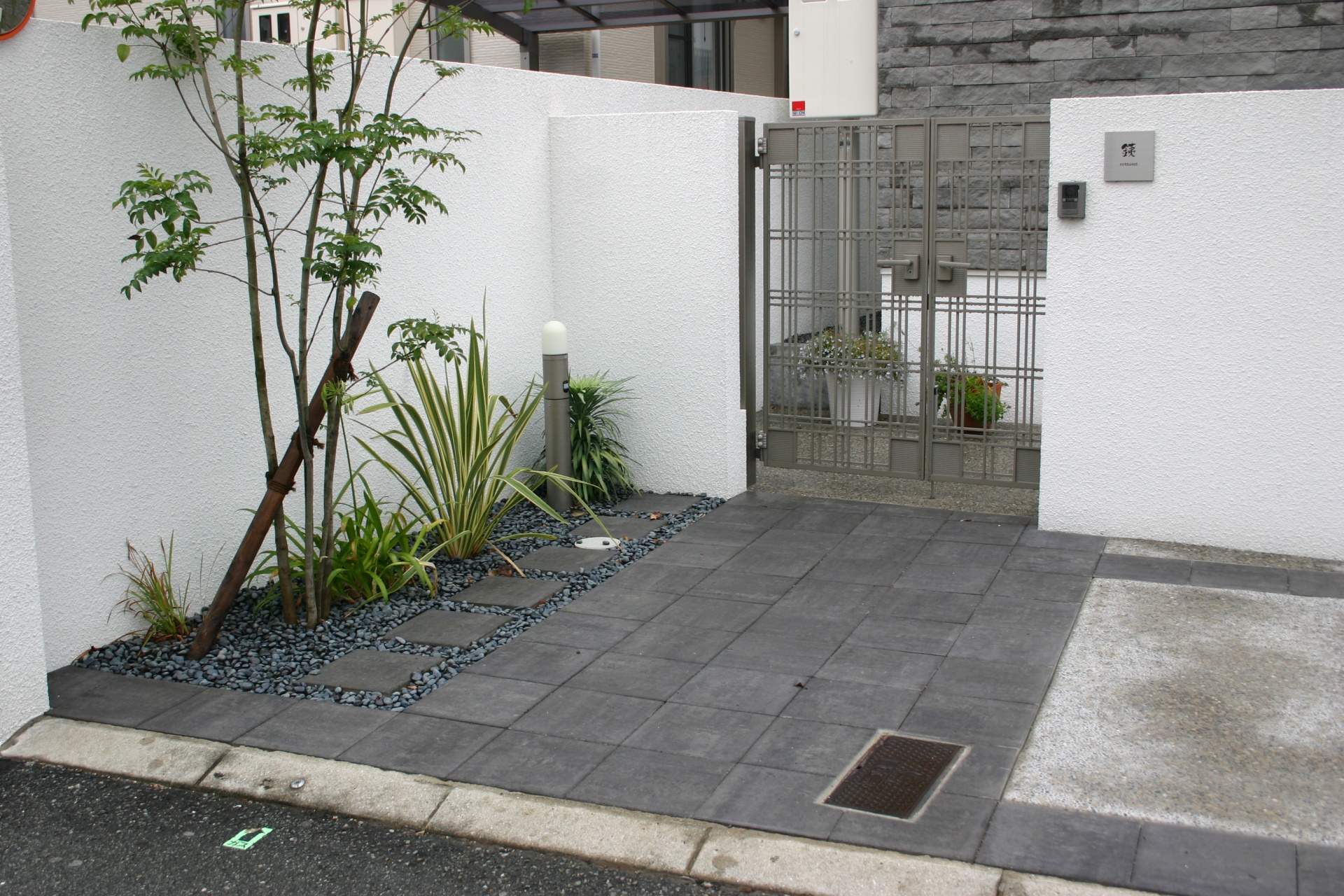 施工実績 姫路市新築外構 コントラストが美しいクローズエクステリア 建物が引き立つ様に、シンプルな白壁で仕切り 建物の石張りの意匠壁が良く映えます。 植栽もにぎやかではなく、質の良いものを数少なく植え込んでいます。 高木も適度に配置され、高さのバランスも綺麗です。 建物石張り意匠壁が良く映えます 黒の平板敷きアプローチ 中庭タイルテラスから見える植栽スペースも上品に仕上げています ドライなイメージでオリーブをメインツリーに 角のデッドスペースにはハナミズキを植えています