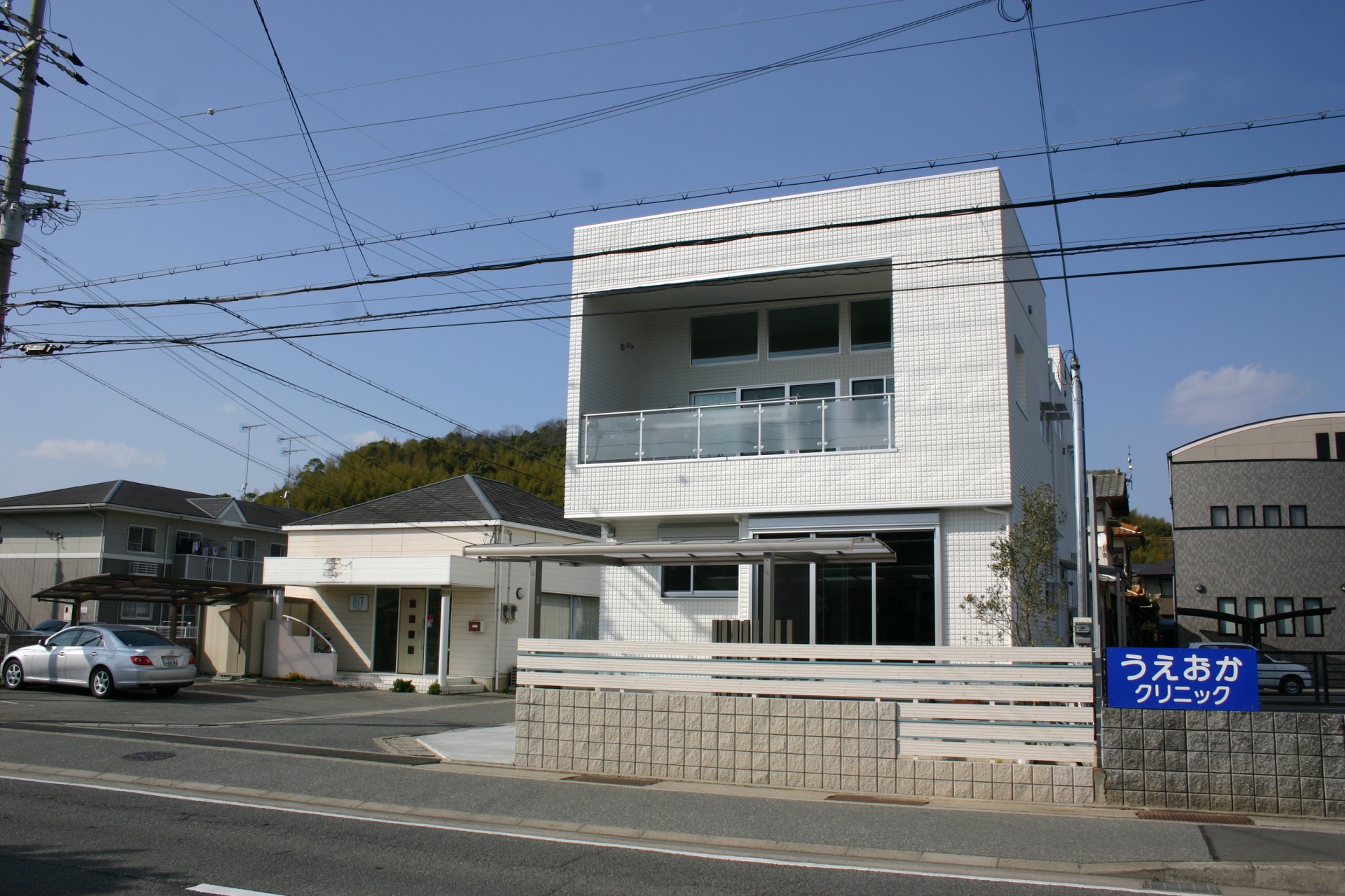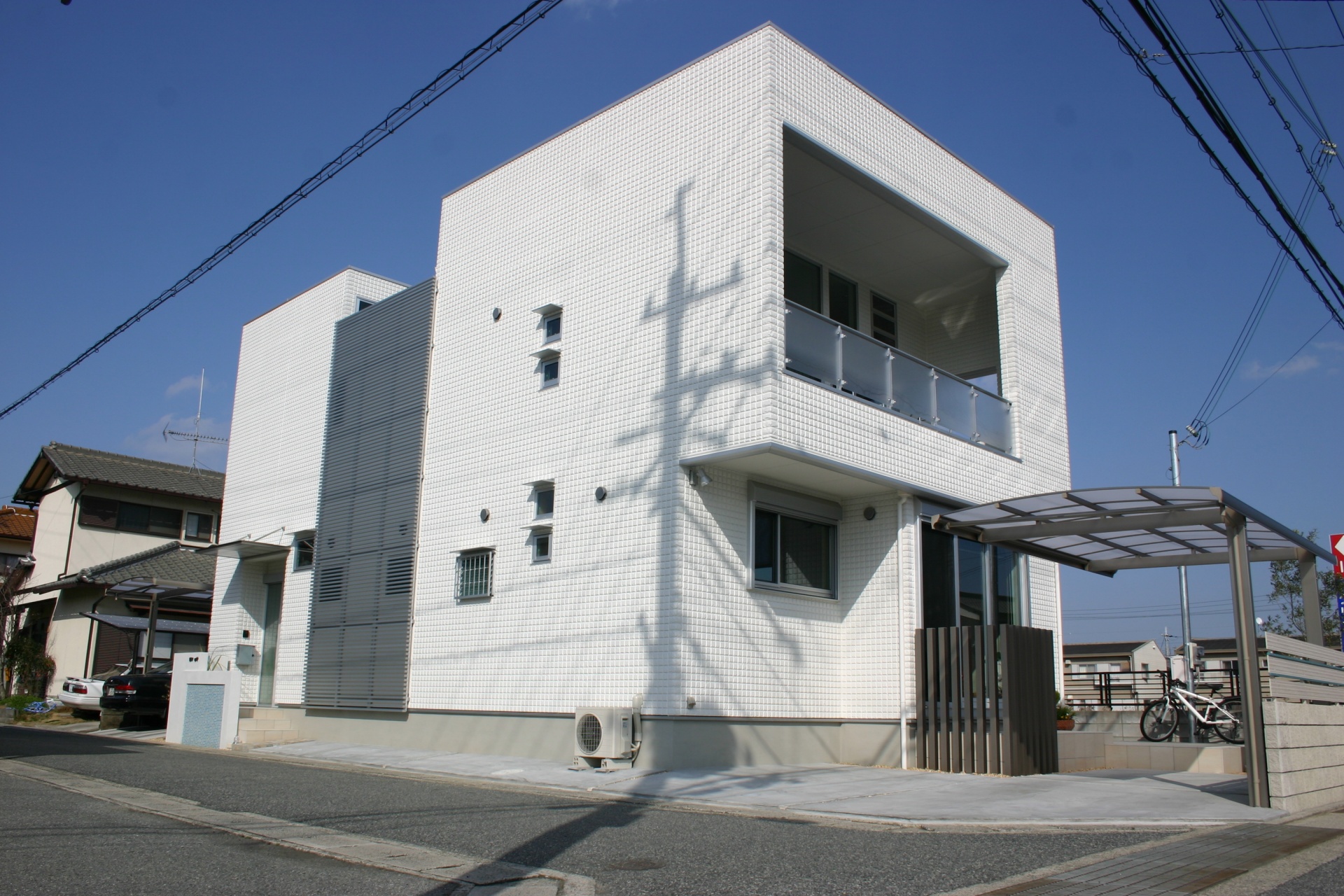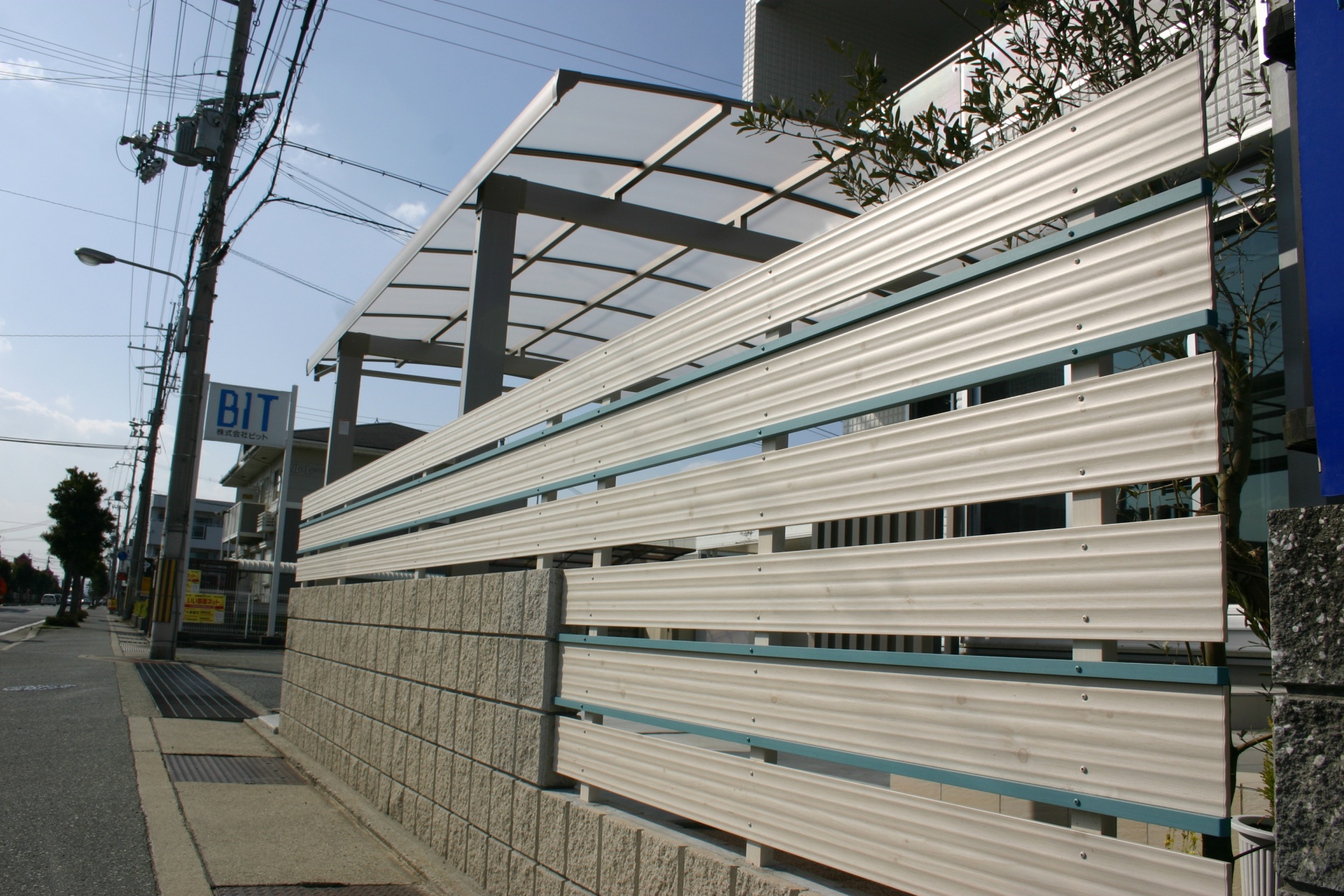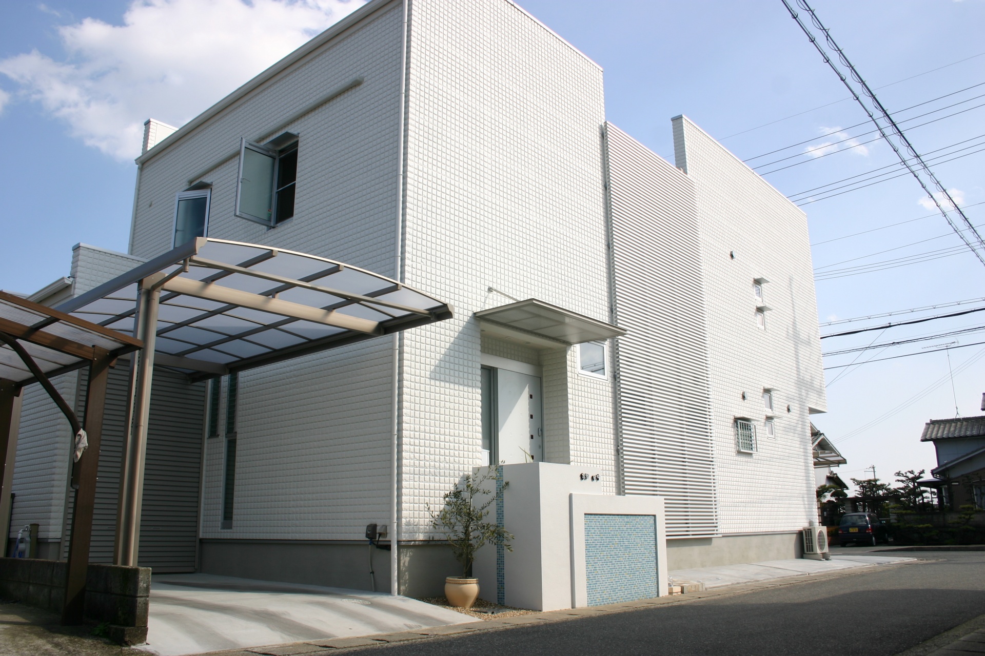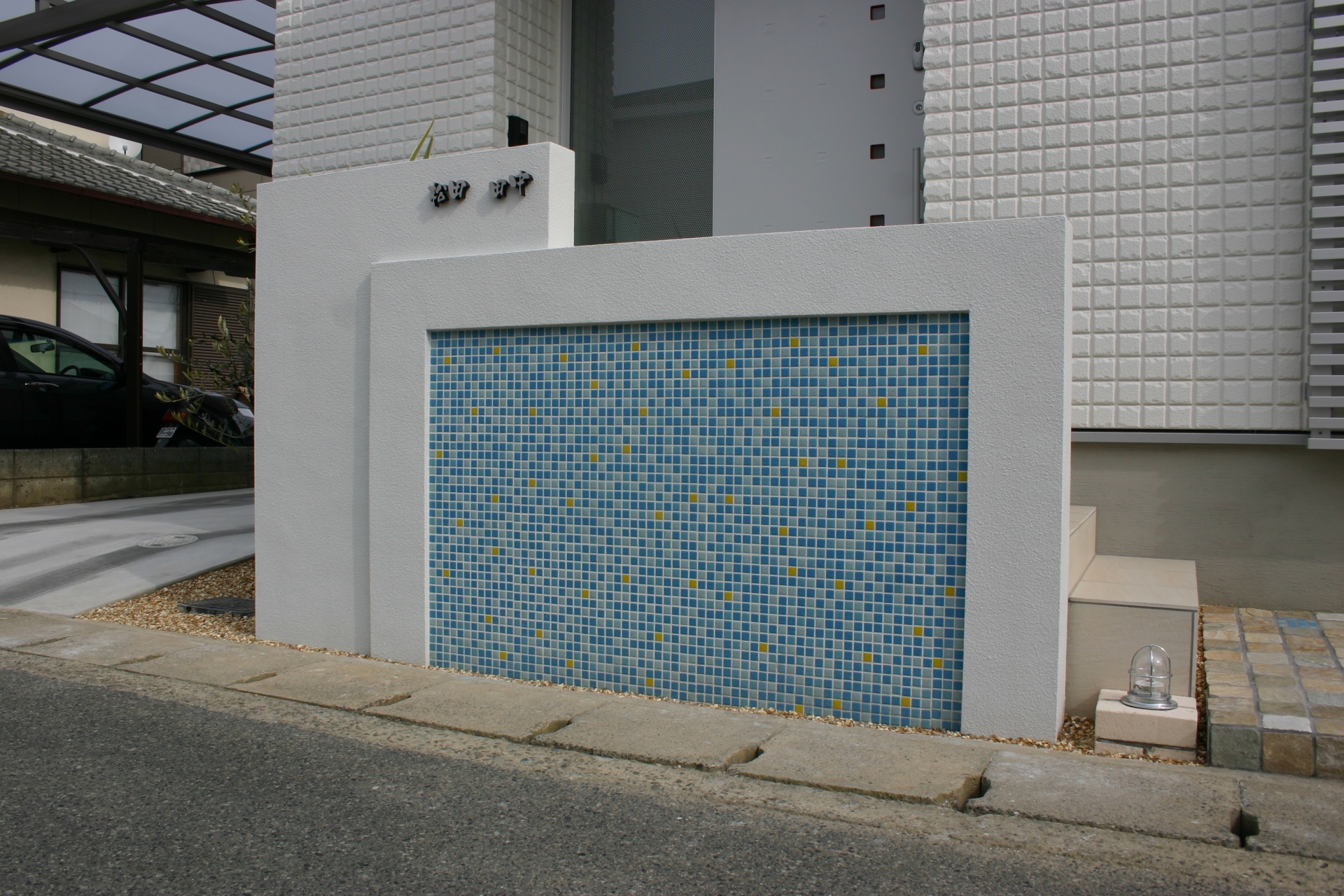 太子町新築外構 白に合わせたスカイブルータイル