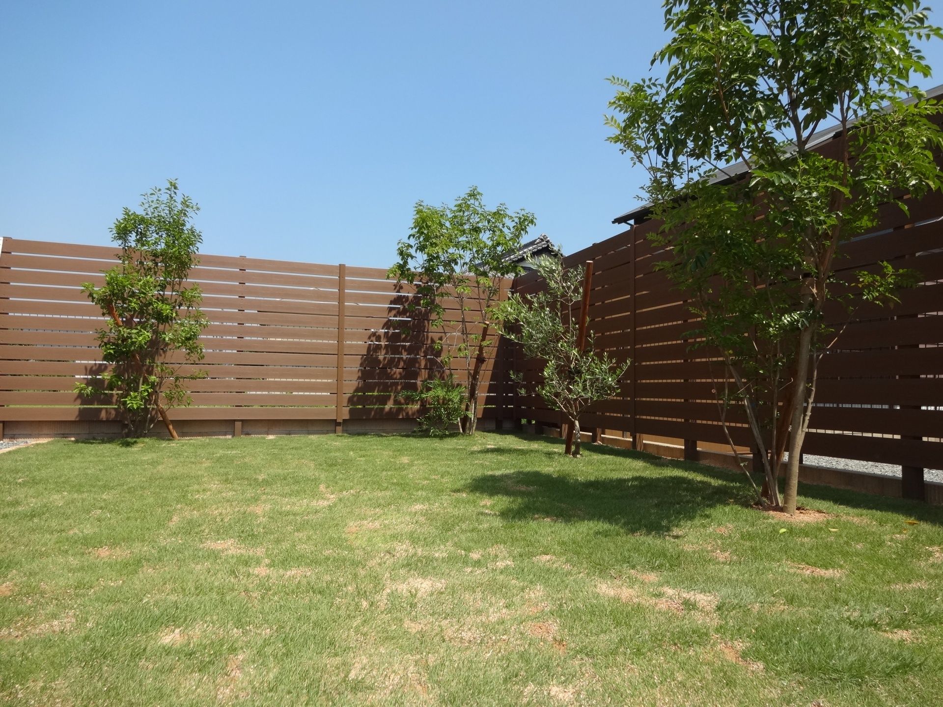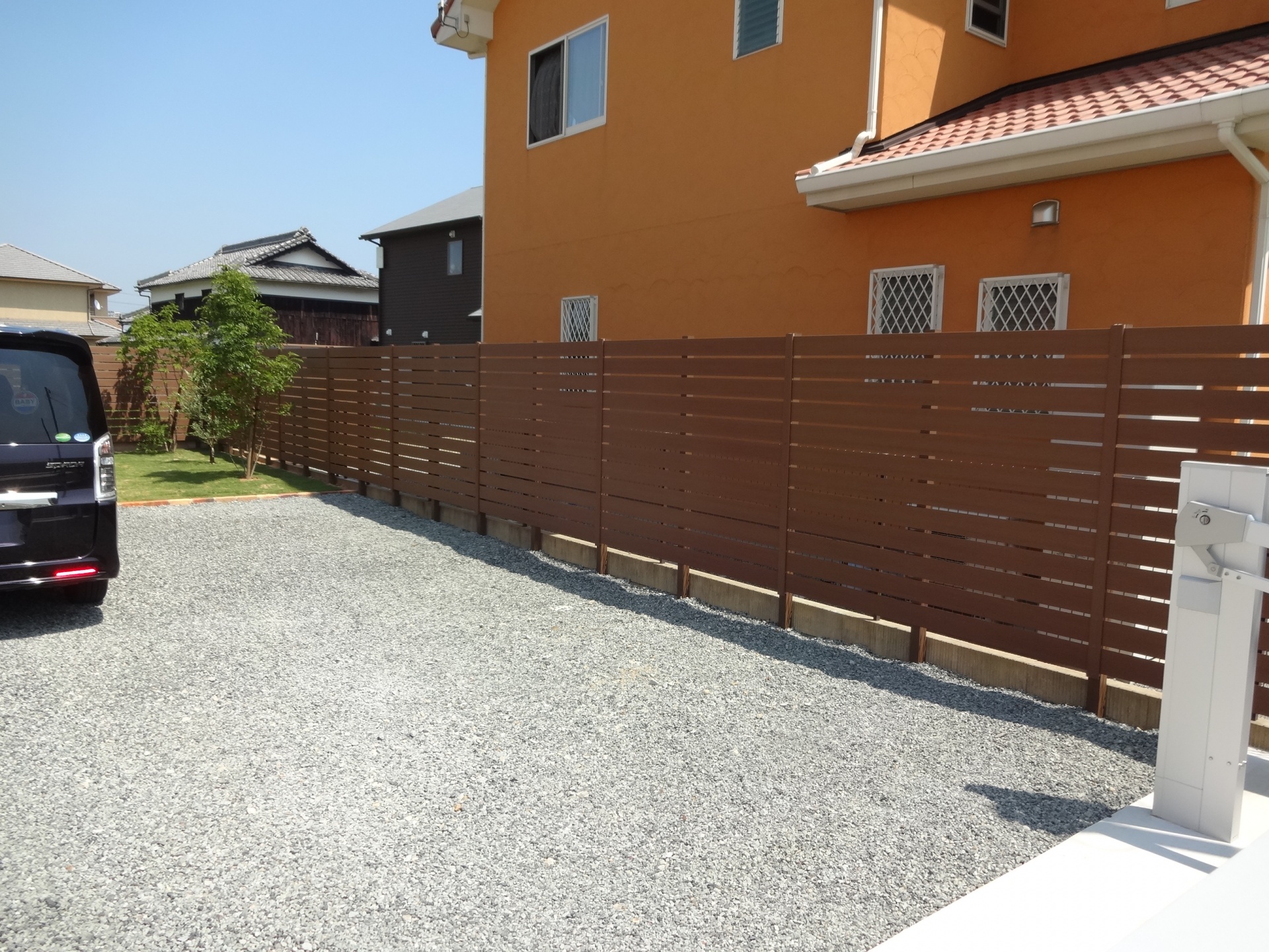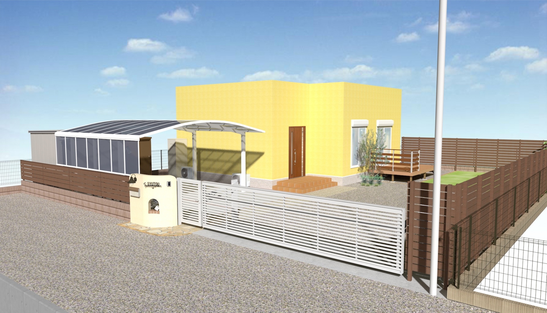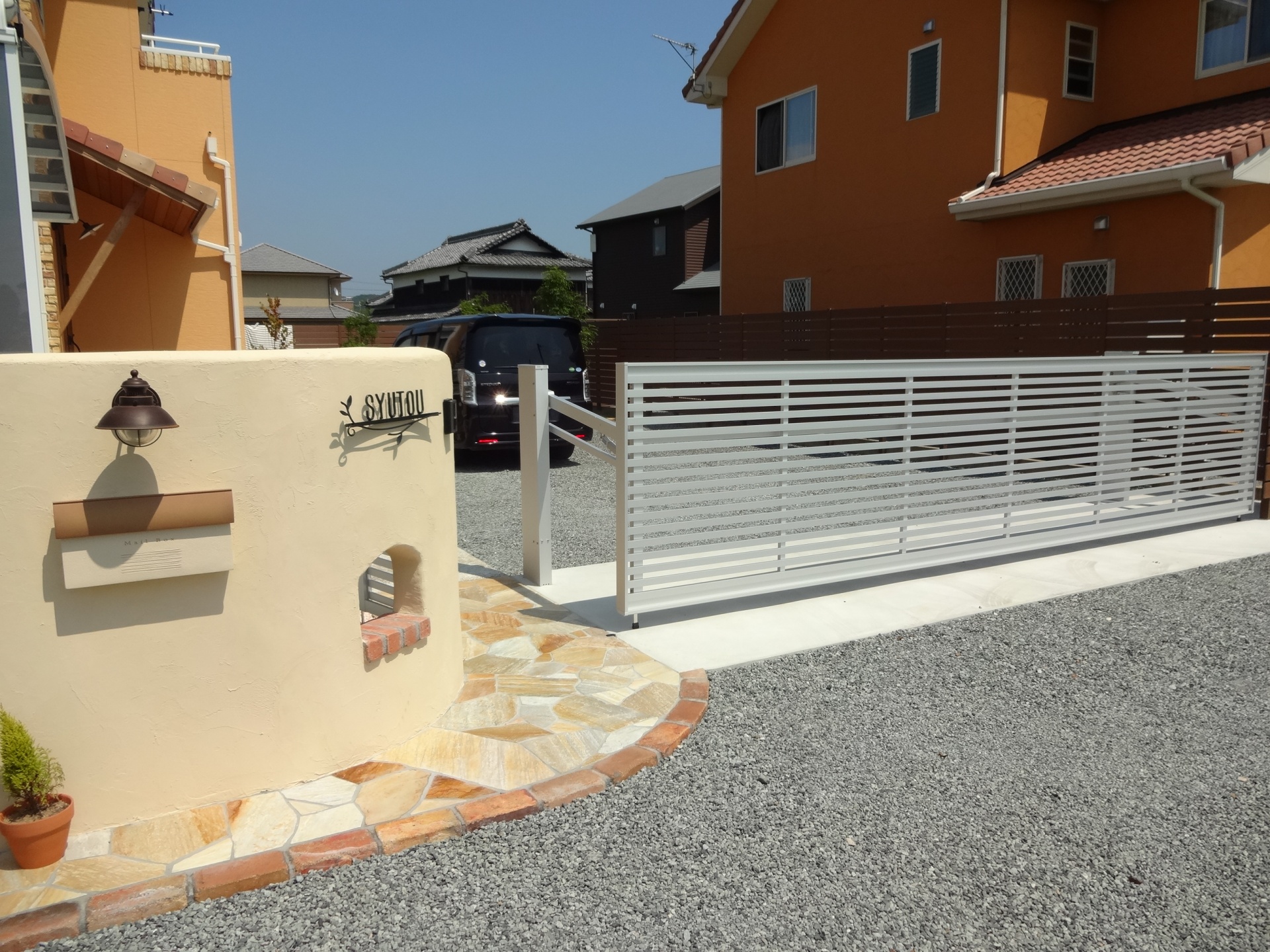 施工実績 太子町リフォーム外構 建物にあった可愛い欧風門回り オープンからクローズへとリフォームのご依頼をいただきました太子町S様邸既存の門柱は取り壊し新たに門柱や門扉/ゲートを取付け建物に合った門回りとなりました隣地との目隠しにもディーズガーデン:アルファウッドを使用することでお庭の雰囲気もずいぶん明るく過ごしていただきやすくなりました before イメージパース 既存の表札と門灯は再利用しましたポストは前入れ後ろ出しのディーズガーデン:クレア-U塗り壁と足元の自然石が明るく建物との一体感があります 元々、門柱がありましたが駐車するのに何度かぶつけたことがあるということで撤去することになりました クローズスタイルなので門袖壁と門扉・車庫のゲートで閉じています 隣地との境にディーズガーデンの樹脂フェンスアルファウッドでおしゃれに目隠ししています ウッドデッキ前のお庭には芝生と植木を配置目隠しのアルファウッドもお庭の背景としてナチュラルなお庭を演出してくれています
