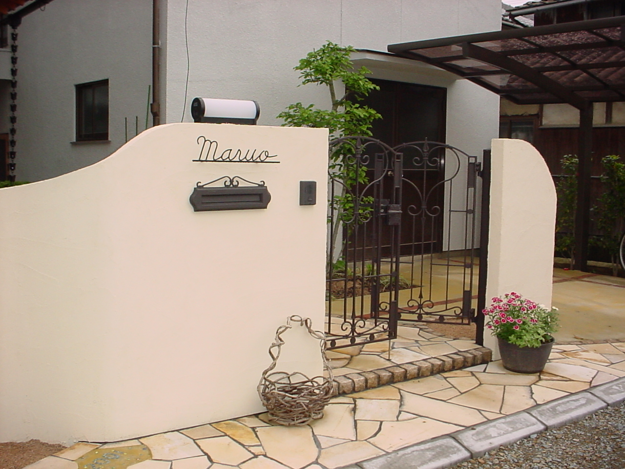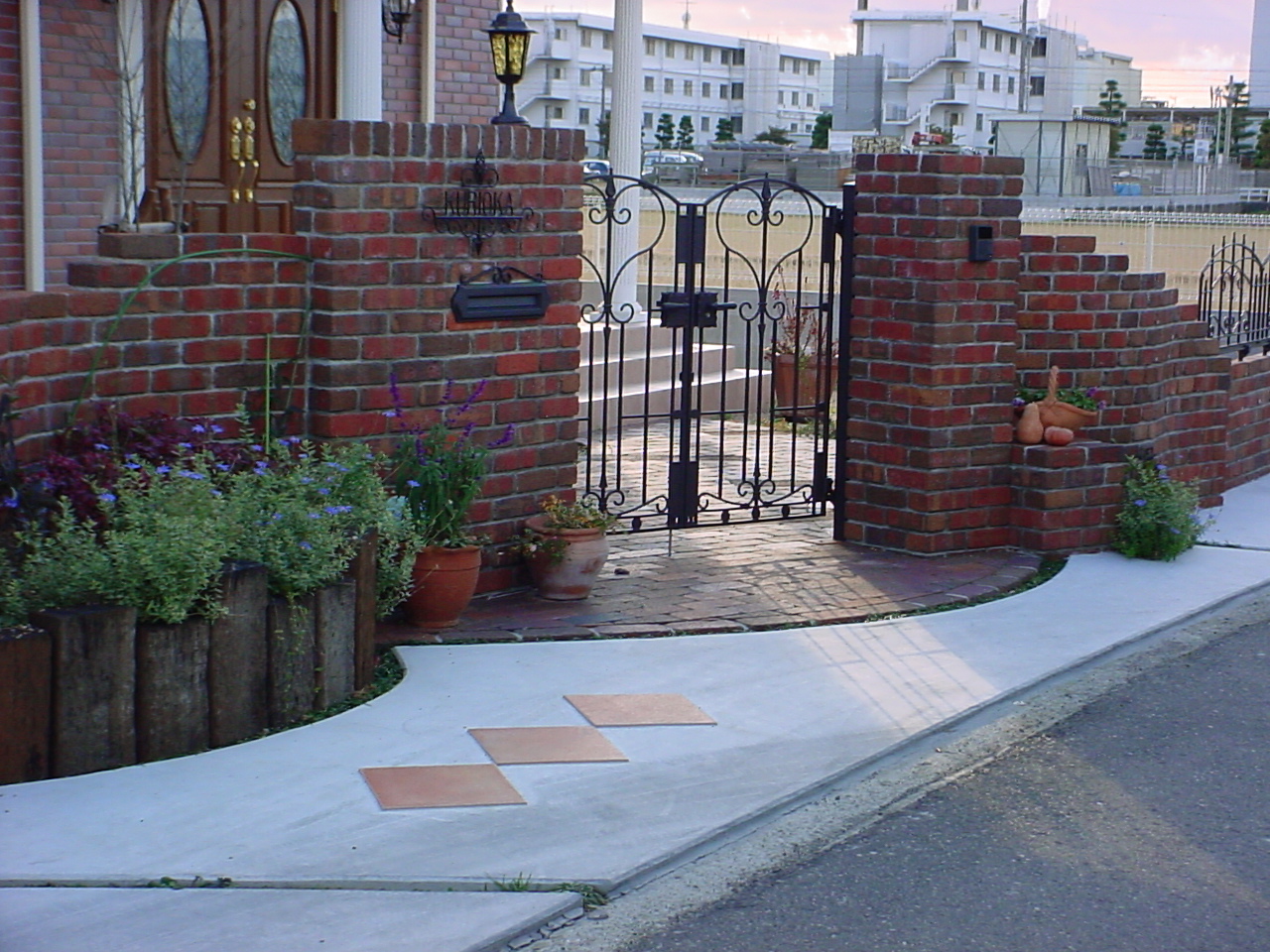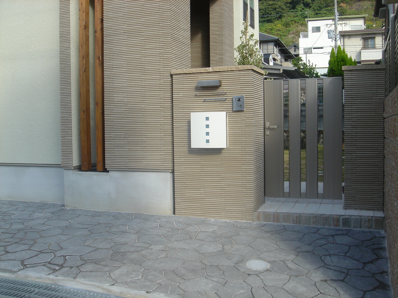 施工実績 姫路市新築外構 建物に合わせたタイル張り門柱 総2階の建物にタイル張りの玄関エントランスが印象的な姫路市F様邸。 ビルトインガレージですので、門周りのみ門扉で閉じるクローズ外構です。 門袖壁は玄関エントランスと隣り合わせになるため、同色のタイルで一体感を計りました。 高さのバランスも考慮した門周りとなっています。 建物同じタイルを門袖壁に張り一体感のある門周りデザイン