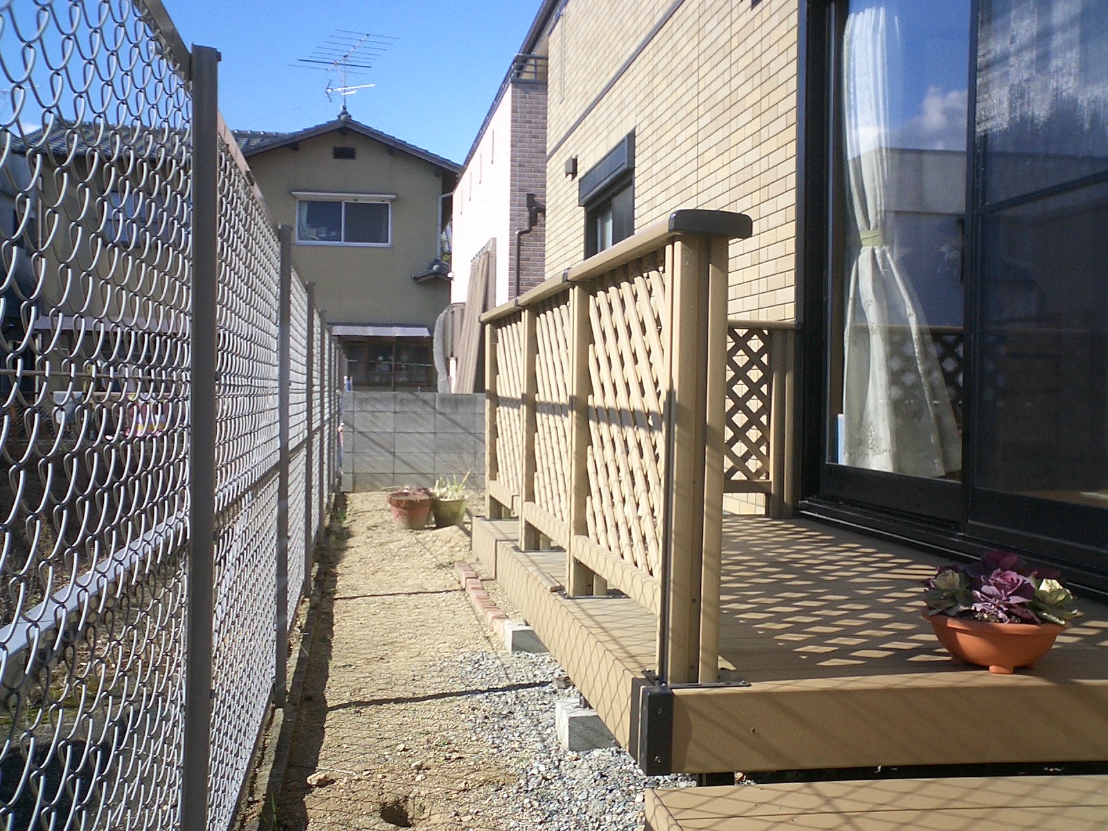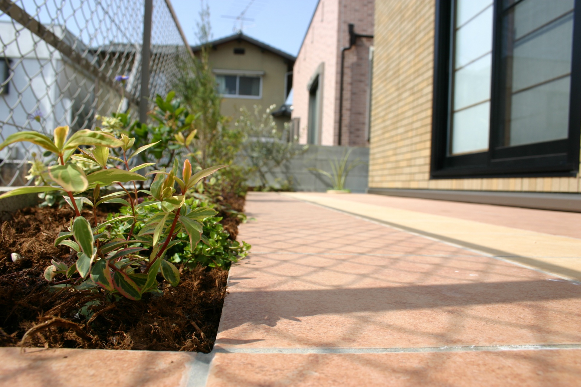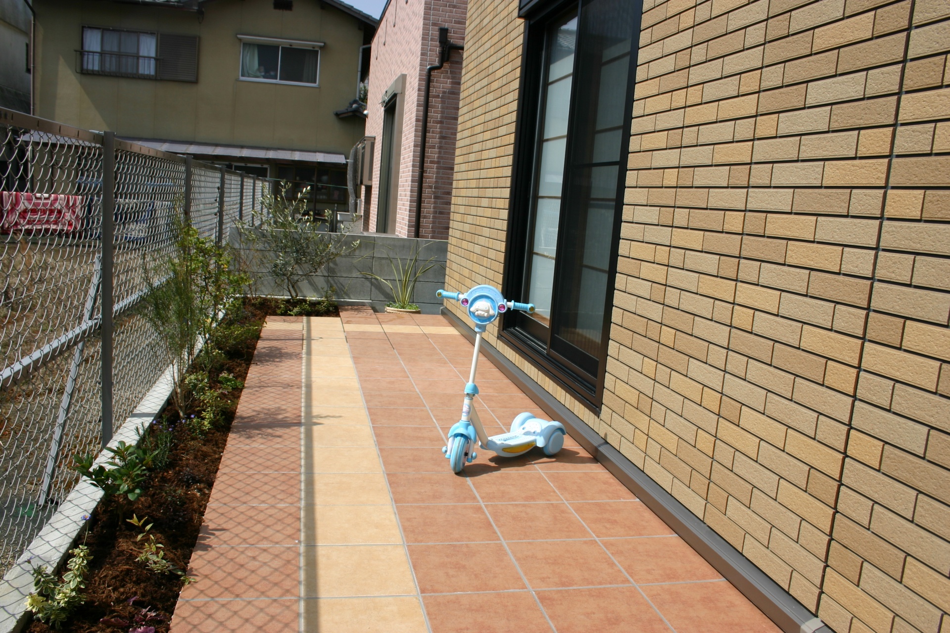 施工実績 スペースを有効活用 たつの市A様邸 手つかずだったお庭が、タイルテラスと植栽で大変身!! お天気のいい日は、Yちゃんもお外に出て、ひなたぼっこや、キックボードを楽しんでいるそうです! After Before 2階からの眺め 早くおおきくな~れ(*^_^*) ちょっと日焼けした「はにかみ君」 オリジナル立水栓の座り心地はいかが?? 今回は伸縮門扉とテラスも取り付けました。 大事なキックボードと自転車を守らねば(>_<) ようこそ、我が家のお庭へ・・・ レンガにうつったシマトネリコの影。 デッキの端にはパパとYちゃんのビーチサンダルが並んでいます。