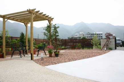 たつの市外構デザイン お庭いじりの後はパーゴラでひと休み