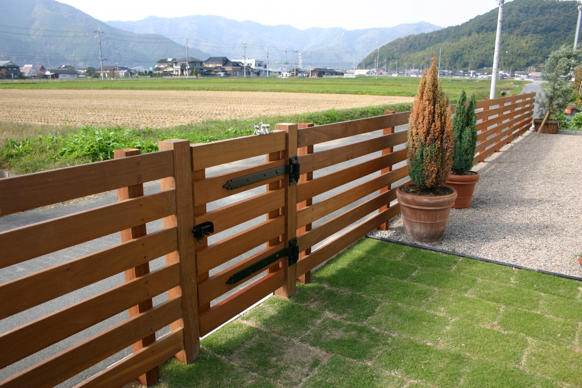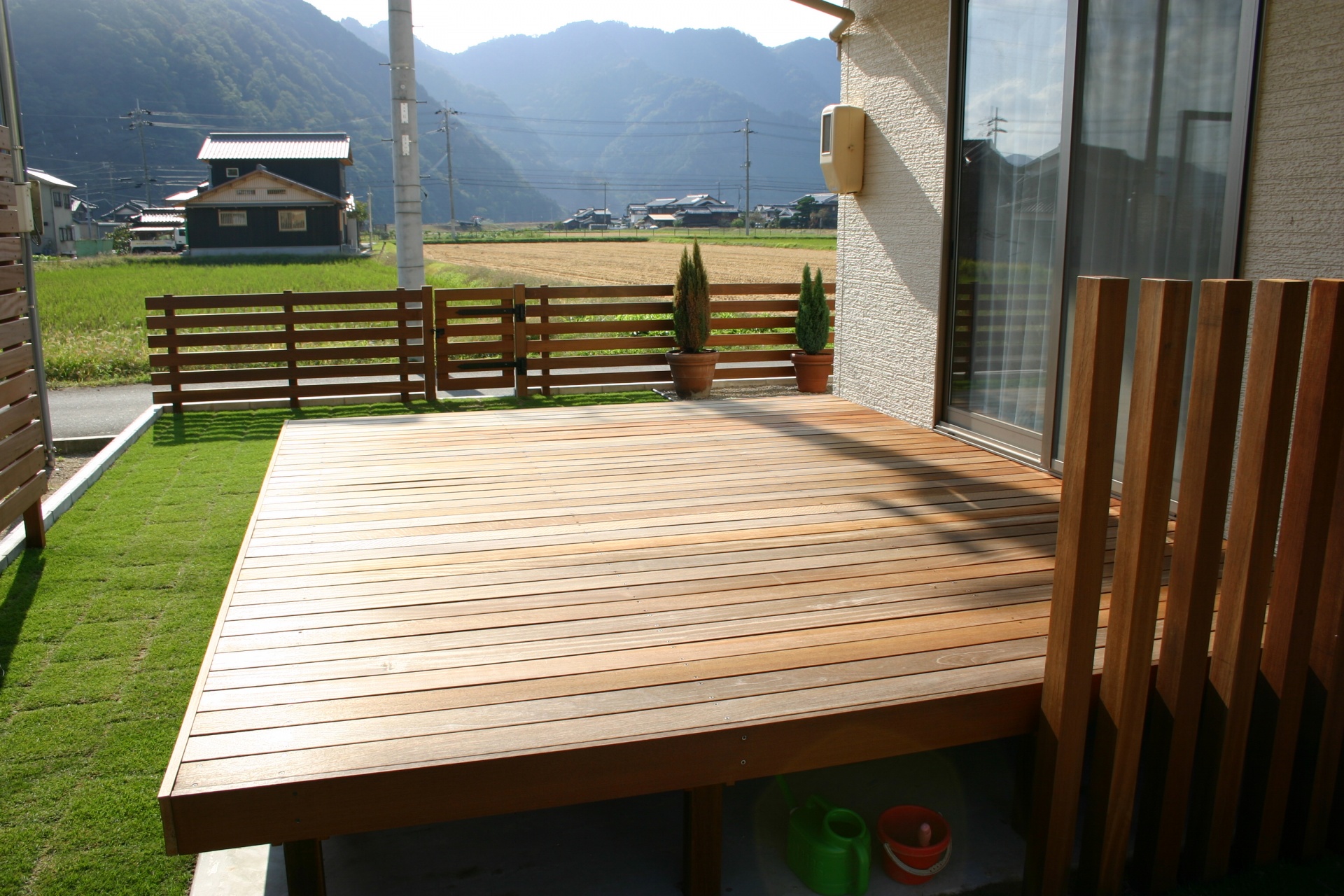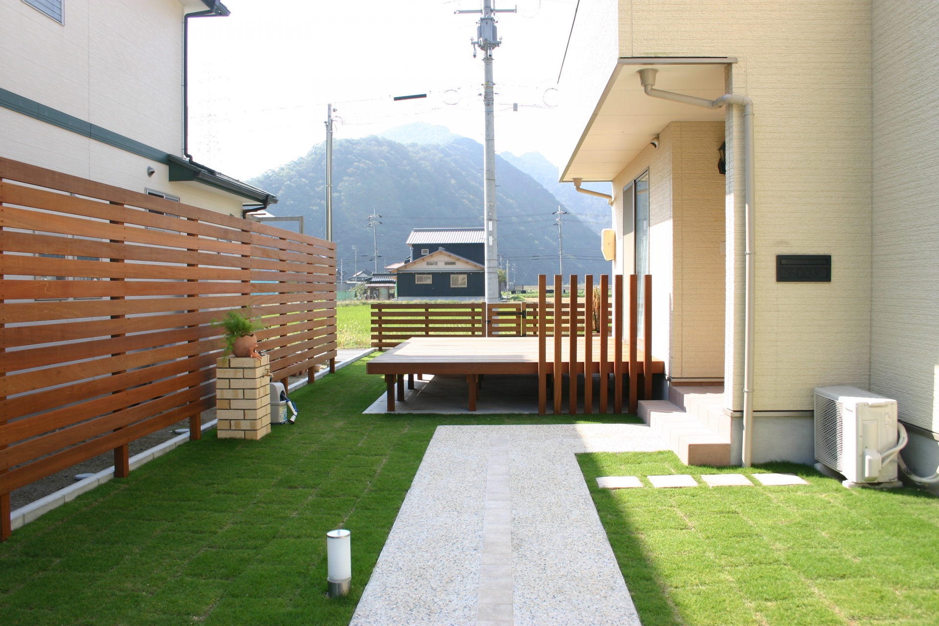 施工実績 天然木のウッドデッキ|ウッドフェンス 宍粟市S様邸 自然素材に拘りデッキ・目隠しフェンス・ゲートを全て天然木で仕上げました。 芝生の緑も入って爽やかなお庭になりました。 お庭から見える山々を借景に癒しの空間になっています。 リビングからの窓から繋がる大きなウッドデッキ。 天然木なので温かみがあります。 ウッドフェンスと同じデザインでゲートを作りました。 自然に囲まれたお庭の門周りをピックアップした写真はこちらです。