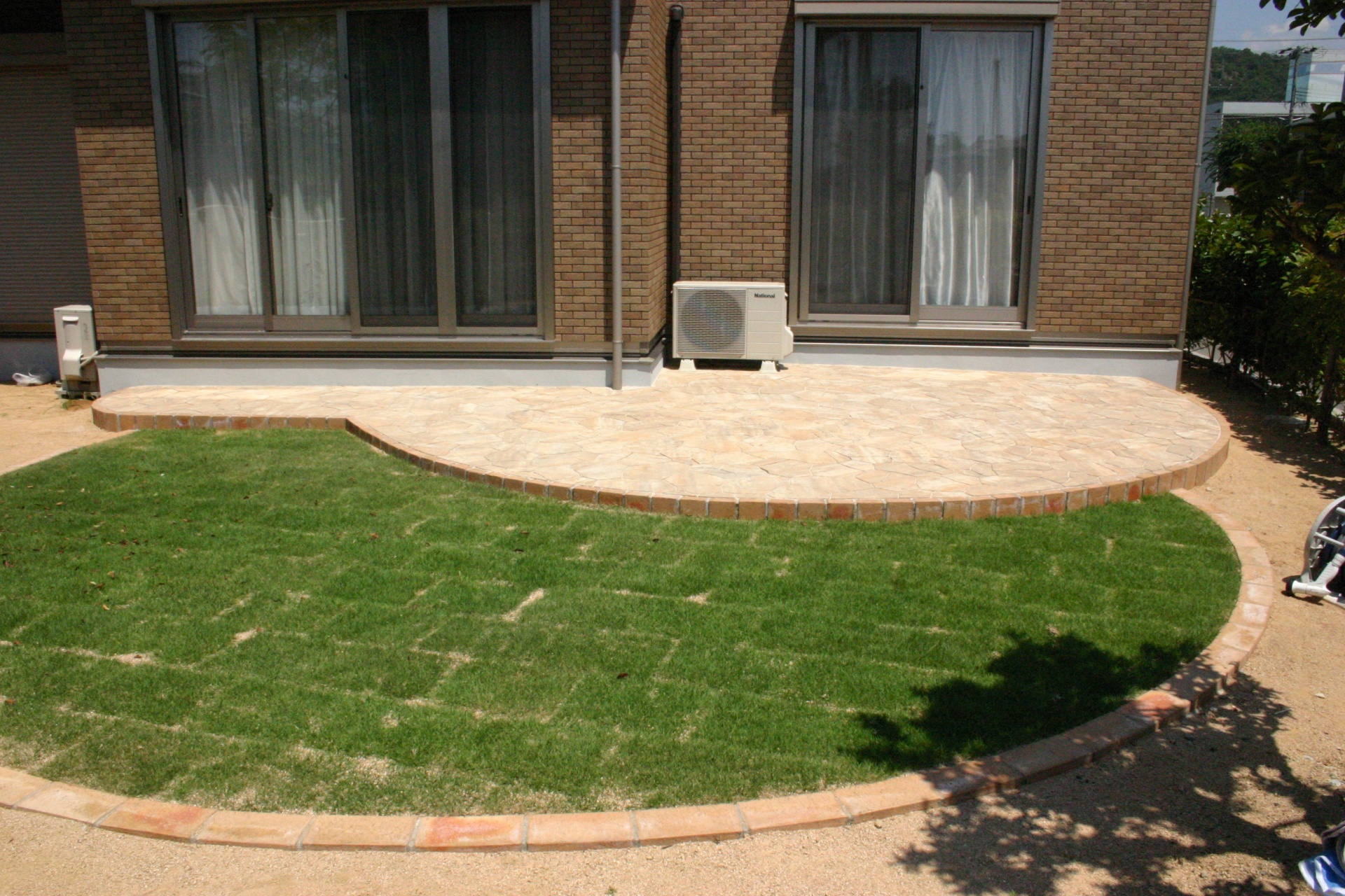 同じくアールで広がる芝生ラインが全体のバランスを引き締めます。