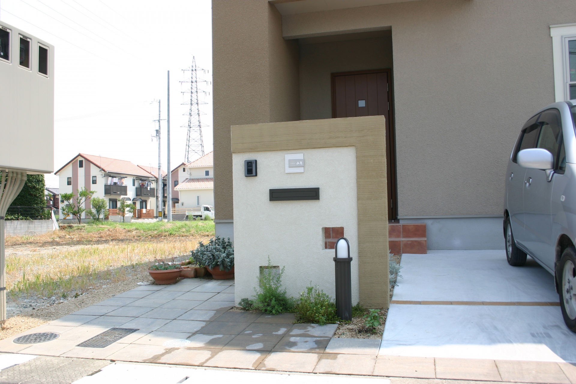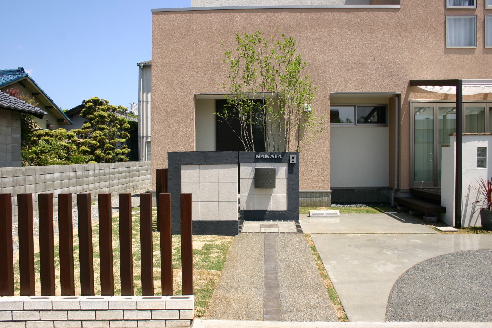 対称レンガデザインエクステリアデザイン
