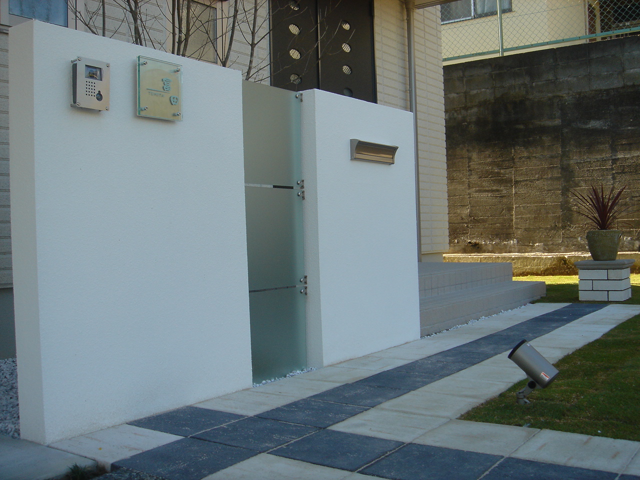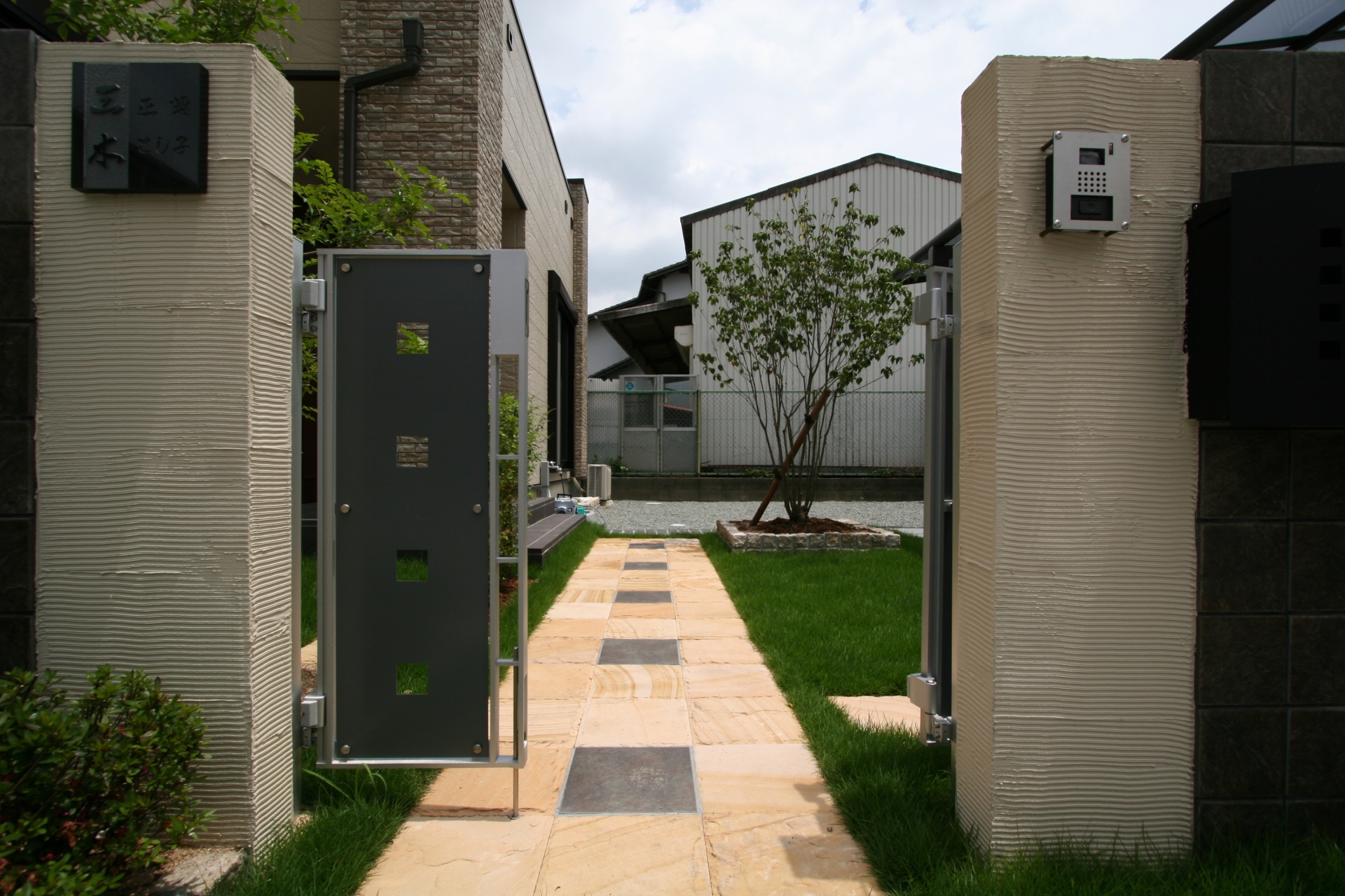 施工実績 ナチュラル花壇に木目のフェンス 姫路市T様邸 建物の中心部分にエクステリアの中心となる部分を合わせて調和を図りました。 腰高程度の塀の間には魅せる木目調横張りフェンスに自然石積み花壇。 その後ろにはシンボルツリーの株立ちのアオダモを配置しています。 シンプルですが見た目にすっきりとしたお庭になりました。 before