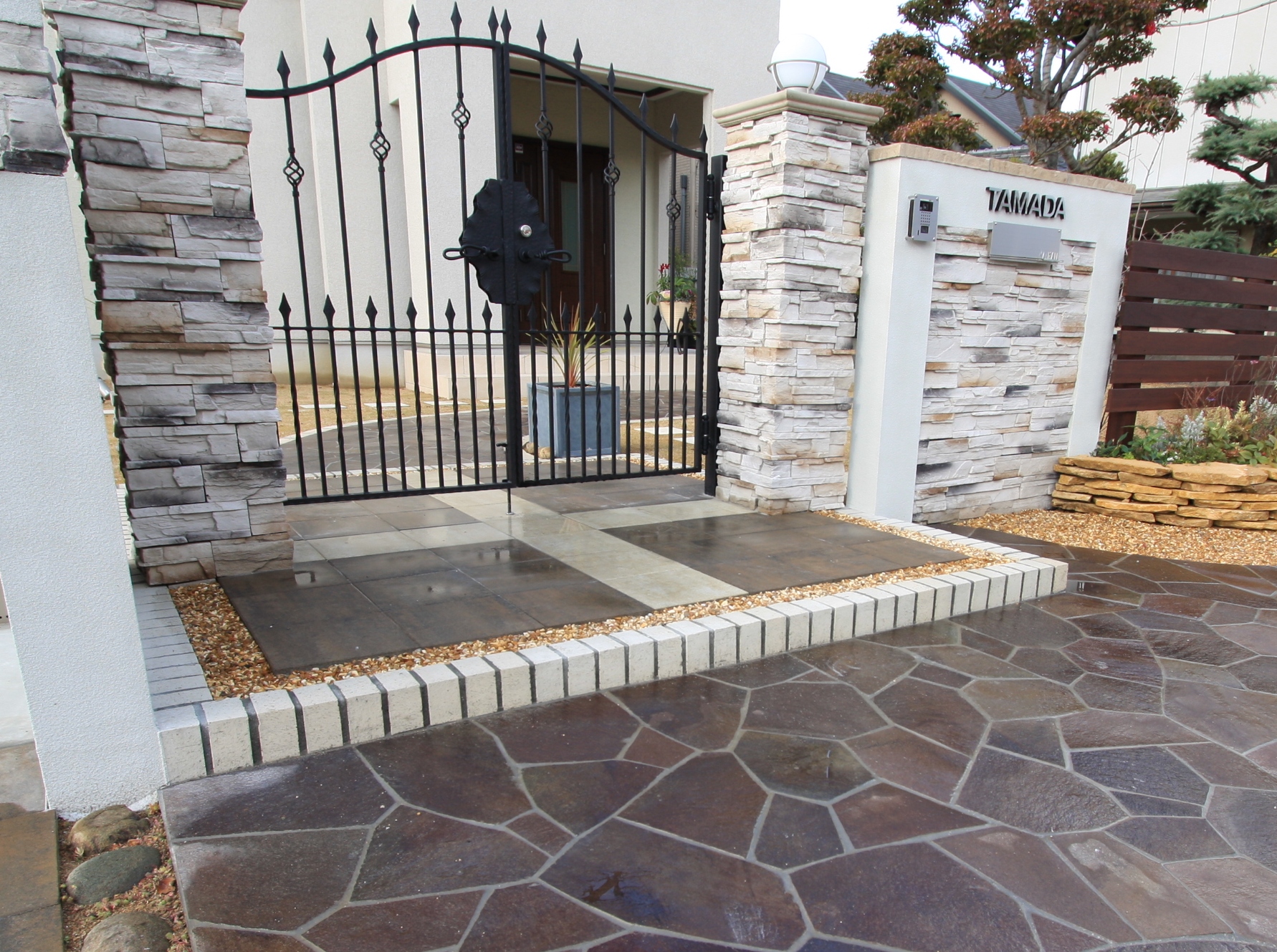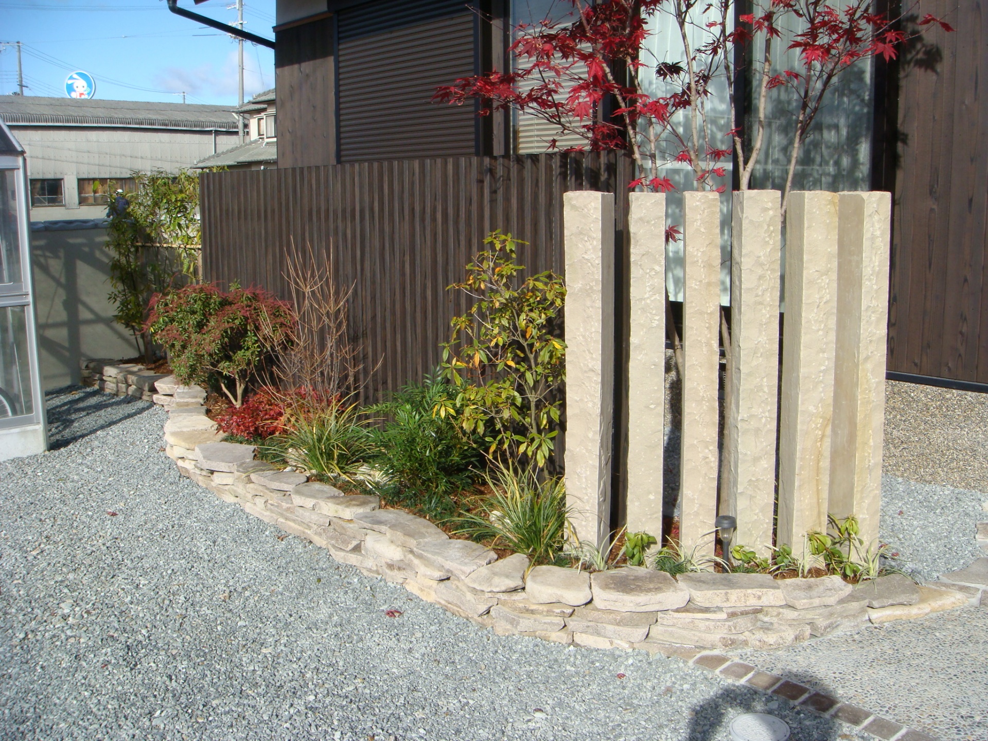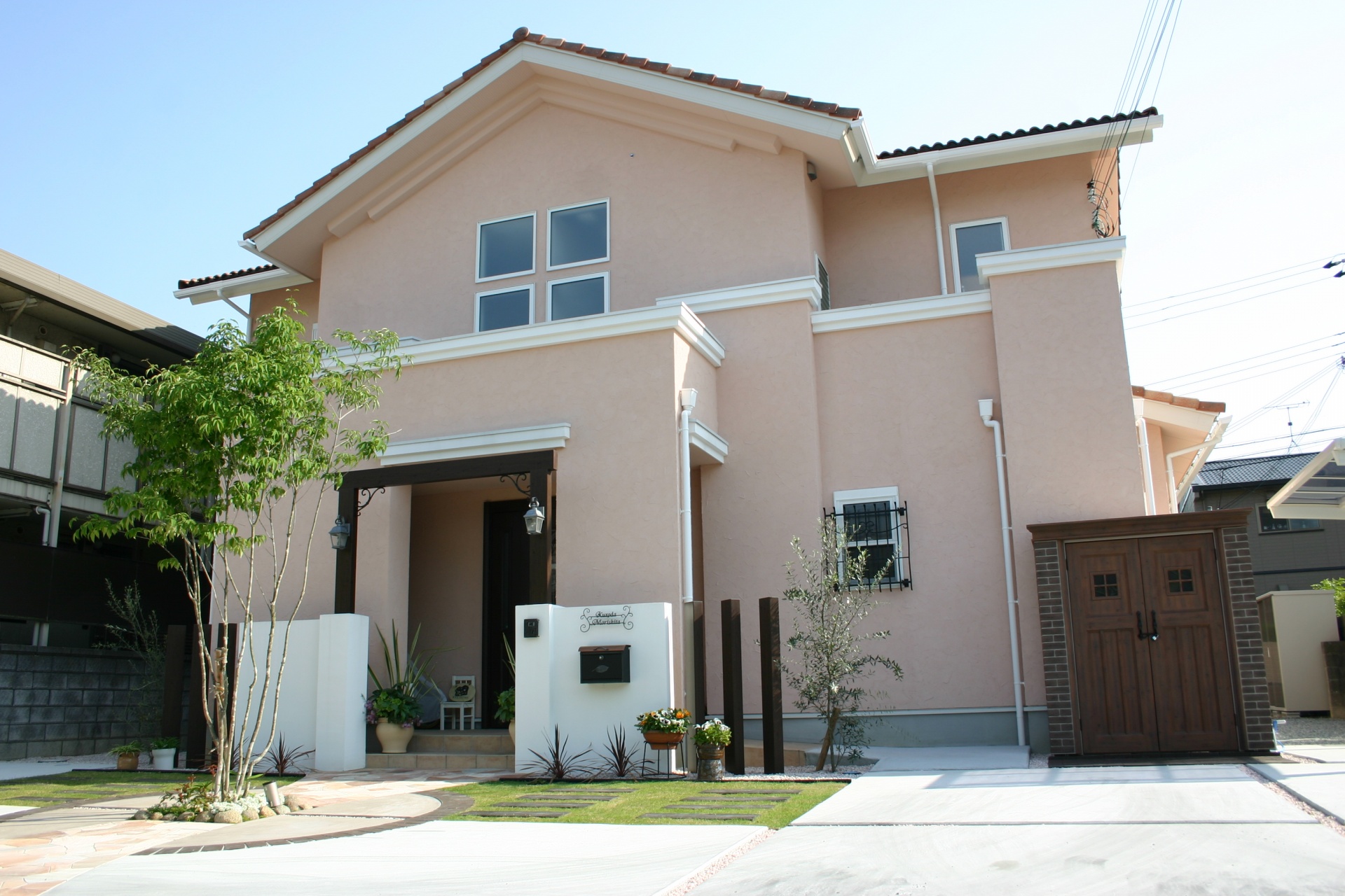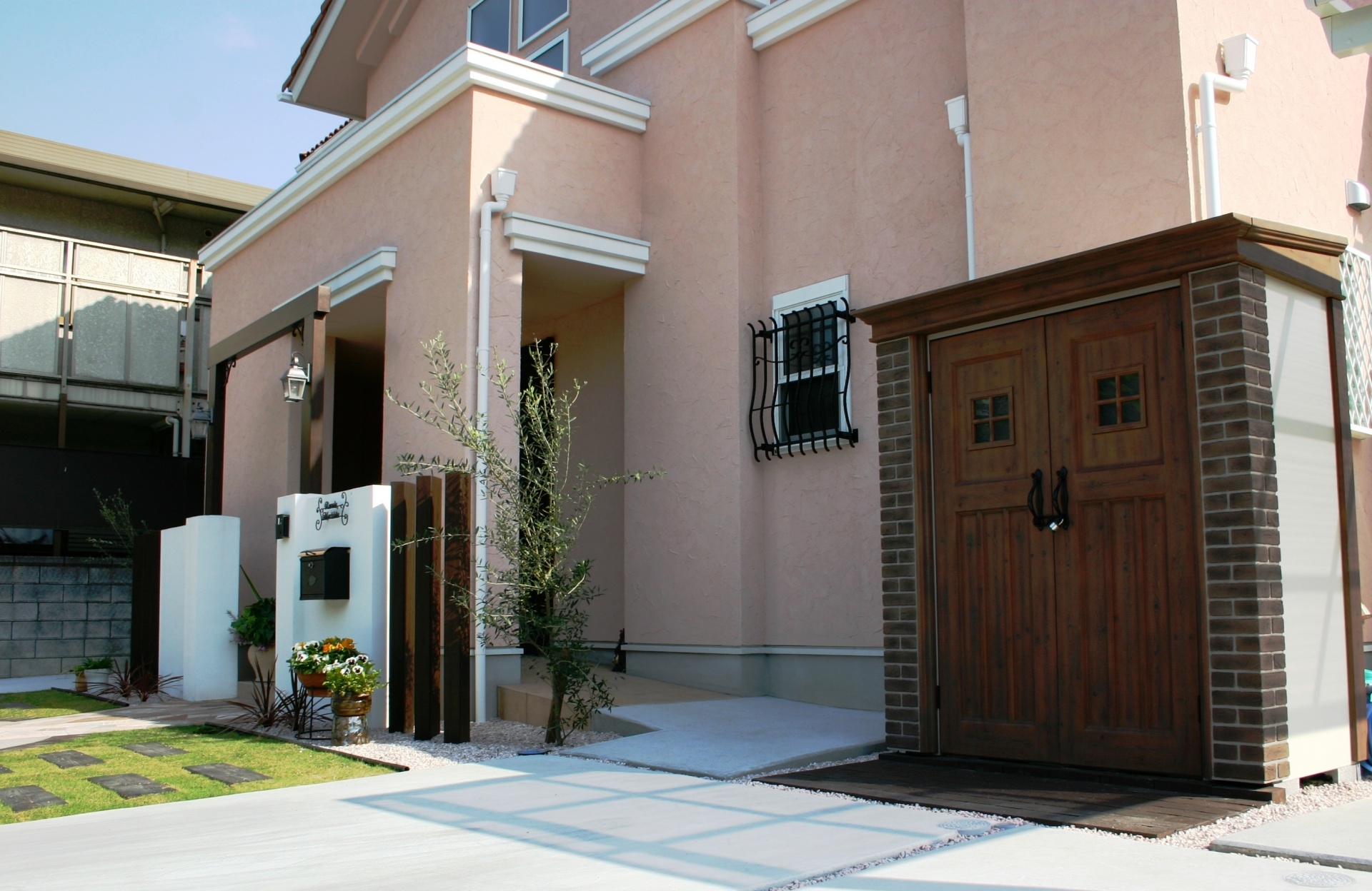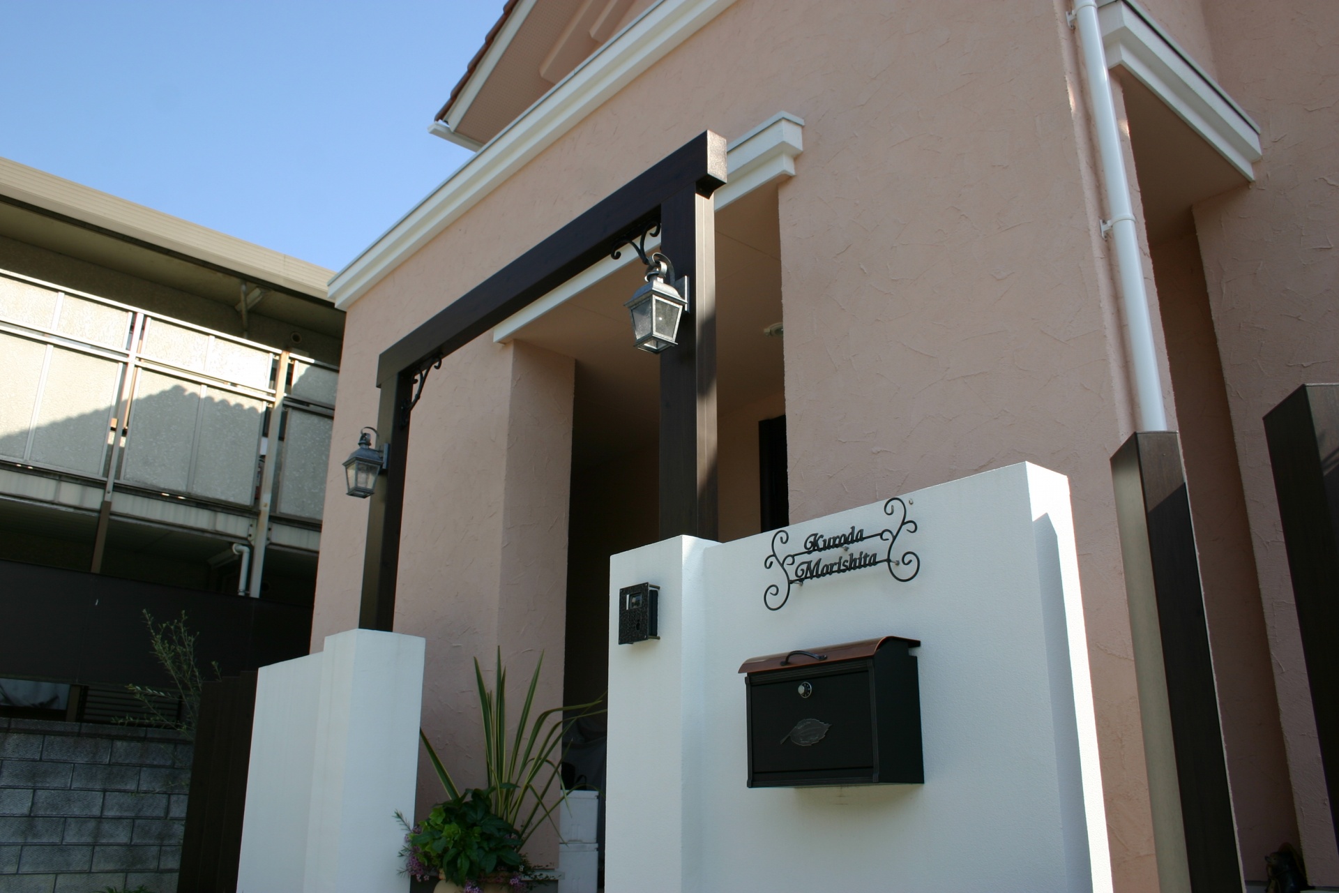 施工実績 ピンクの外壁を背景に四季を楽しむ庭 姫路市K様邸 建物中心(玄関前)に樹形の美しいシンボルツリーのアオダモを配置し、シンメトリーに門袖壁・アプローチをデザインしました。 門袖壁から繋がるアーチ+ライトで建物のボリュームに負けない一体感のある門周りになっています。 カンナ物置も庭のオブジェとしてもマッチしています。 新緑の季節には葉が青々として綺麗です 夜の表情ではダイナミックな表情に変わります 門袖壁から繋がるオリジナルアーチ 芝生とコンクリート製枕木を使ったサブパーキング