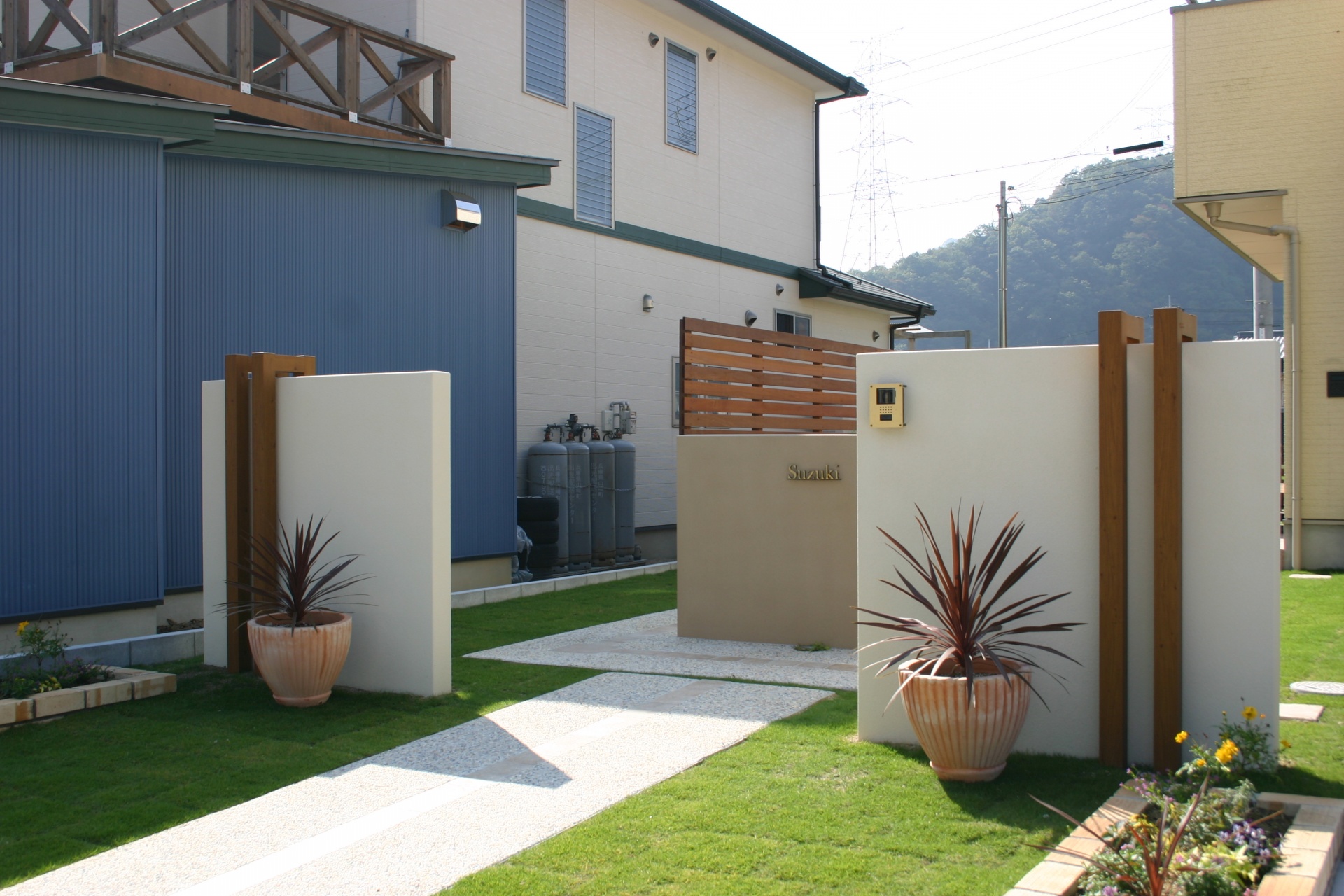 施工実績 自然を借景にシンメトリーデザイン 宍粟市S様邸 自然に囲まれた住宅街に建つS様邸。 玄関前から門周りにかけてシンメトリーなデザインをご希望されていました。 道路からプライベートなお庭が直接見えないように塀を前後に設けて仕切っています。 芝生や花壇に囲まれたアプローチ周りはは、毎日が発見のある楽しめる空間となりました。 意匠壁には木目調のアルミ材でアーチ状に囲っています。 白の壁に縦ラインが良く映えます。 天然木に囲まれたプライベートガーデンをピックアップした写真はこちらです。 お客様の声 工事担当の梶原さんにはとても誠意を持って、 こちらの要望に応えてもらい安心して工事を任せることが出来ました。