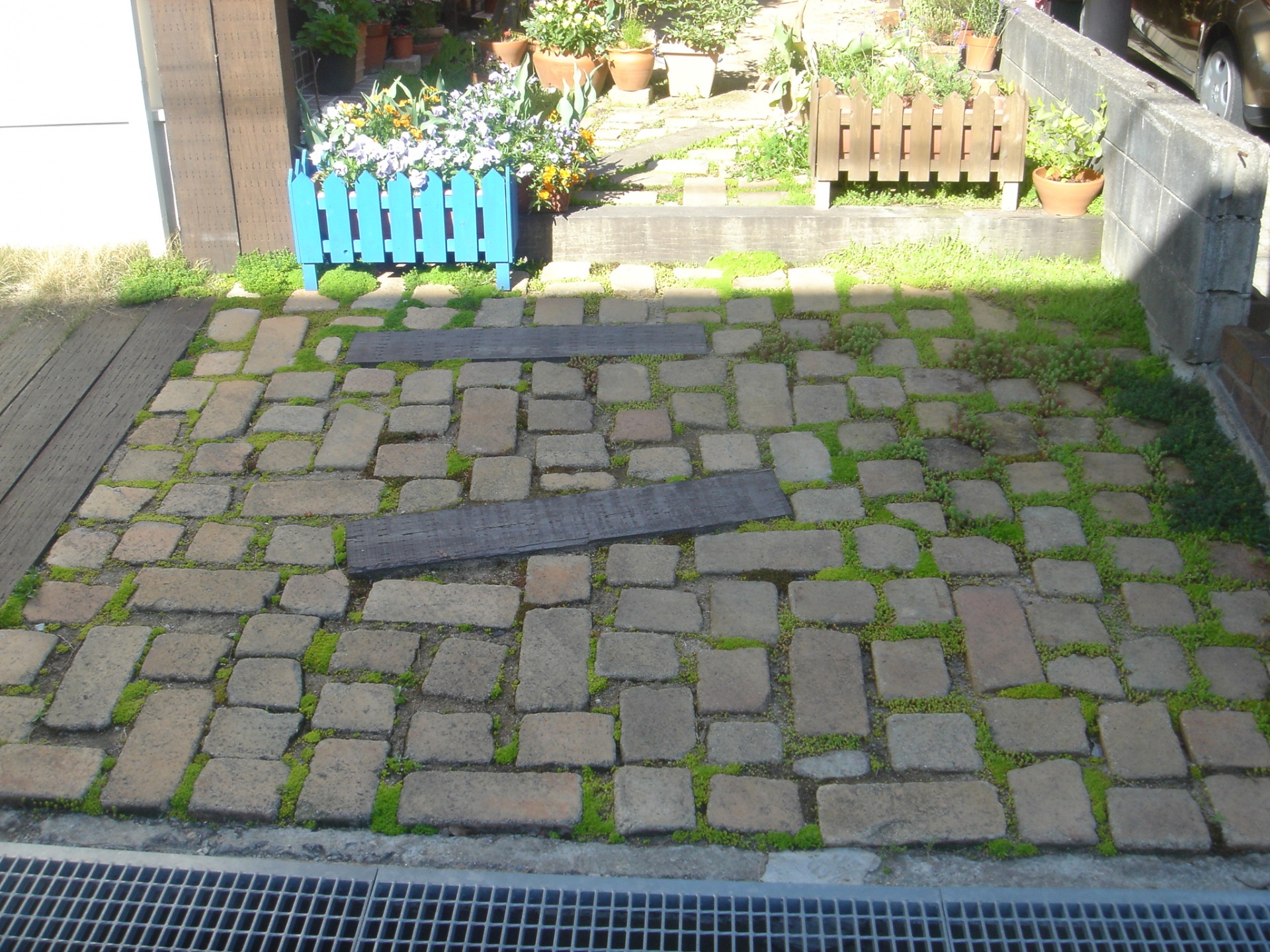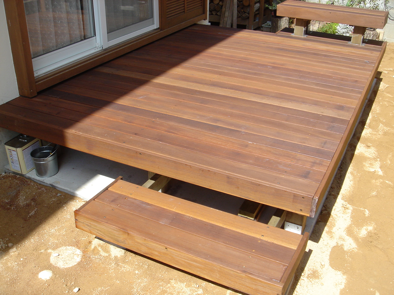 施工実績 自然素材いっぱいのお庭 姫路市S様邸 固めずにアンティークレンガや枕木を使って、自然な風合いをご希望されていました姫路市S様。 ナチュラルな雰囲気の建物に似合う様に 枕木の門柱、階段やレンガや植物が経年変化でより一層、ナチュラルなお庭へと変わっていきます。 ウリン材で作ったウッドデッキ 小さなベンチもあります