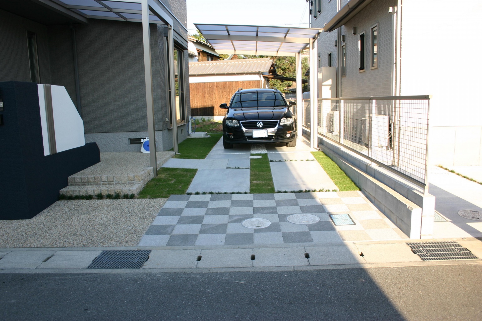 施工実績 ステンカラー|シンプルエクステリア 姫路市T様邸 元々ホワイトの門柱だった太子町T様邸。 玄関前の目隠しのご希望から少し門柱に手を加えました。 モノトーンに仕上がった門柱には、デザイナーズパーツのアルミスリットをデザイン。 存在感のある門周りに仕上がりました。 車庫周りもモノトーンにデザイン。 平板は透水性で芝生と組み合わせることにより、環境にやさしいデザインになりました。 玄関先には、デザイン性を重視しTOEX プラスGにて屋根を取付ました。 建物バルコと併用して玄関周りの使い勝手が一段とアップしました。 TOEXデザイナーズパーツを使用。 ブラックの壁にラインがスマートに納まりました。