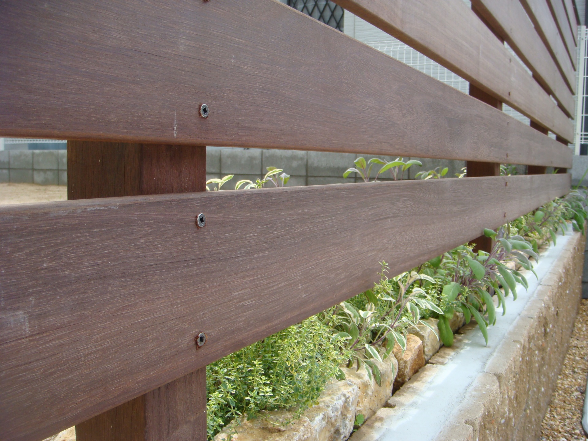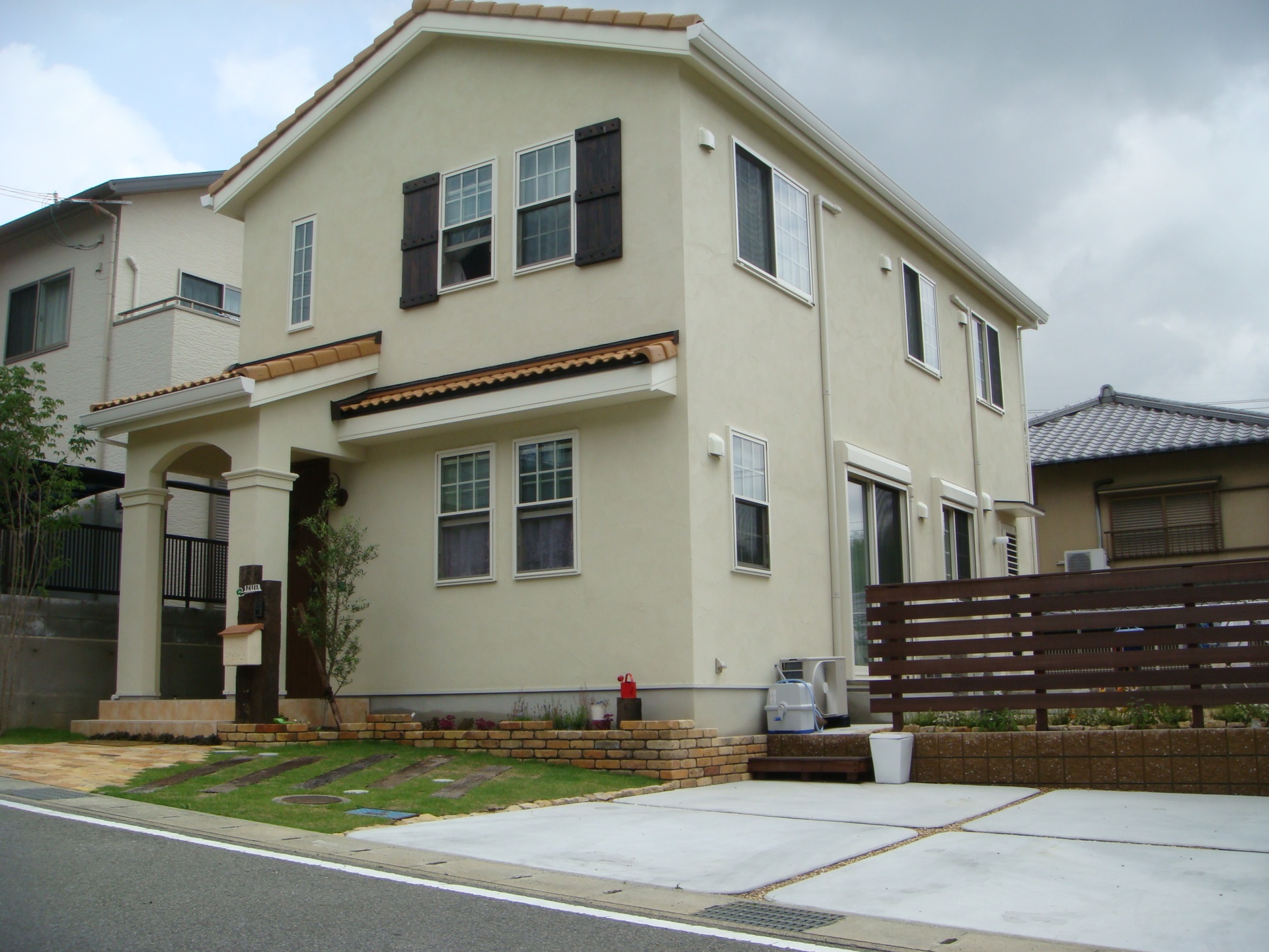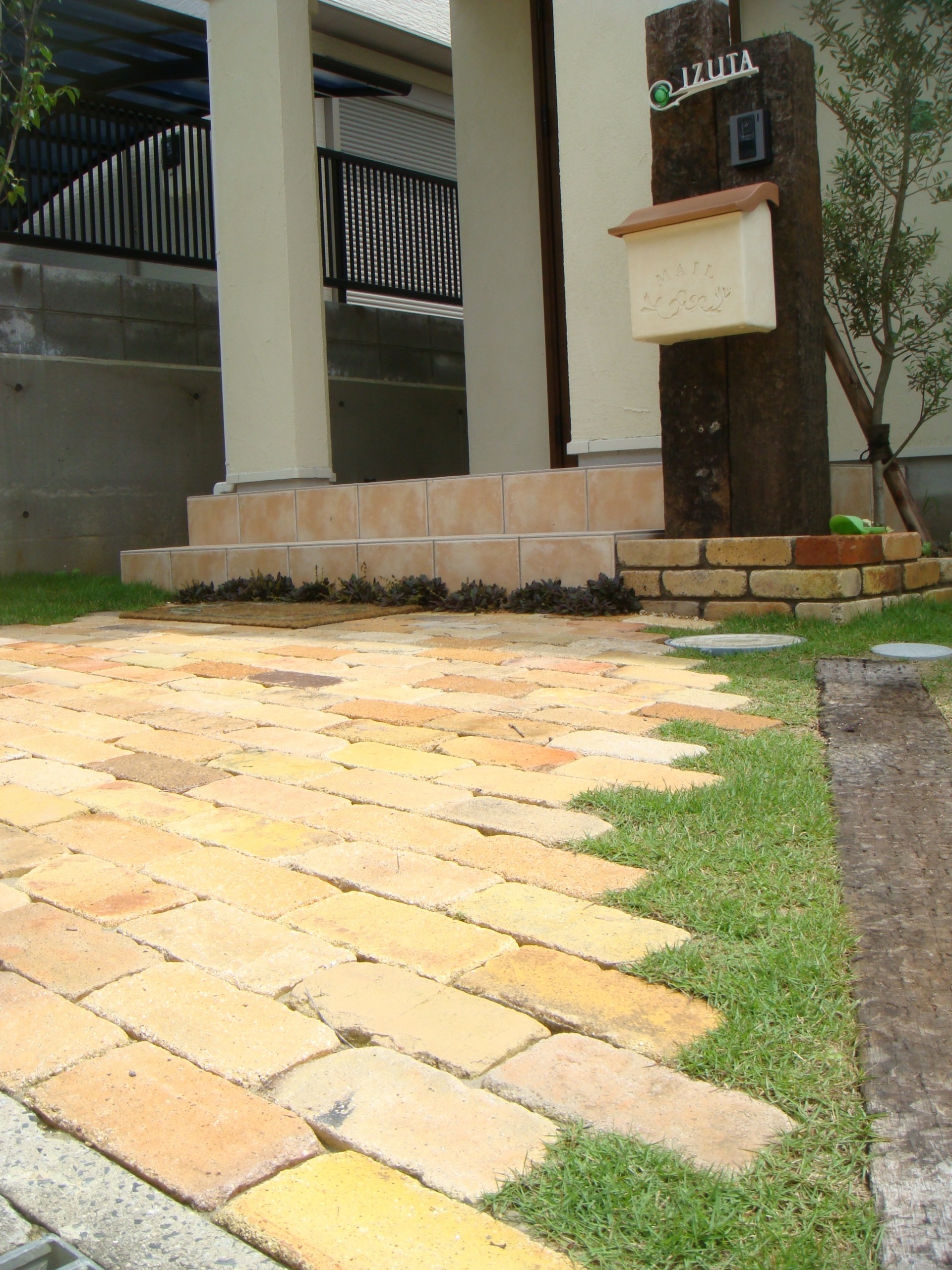 施工実績 耐火レンガと枕木|ナチュラルなお庭 相生市I様邸 可愛い外観の相生市I様邸 前の道路勾配がきつくGLよりの高低差もありましたが、 固める部分と、芝生をうまく組み合わせることで自然な柔らかい雰囲気のお庭になりました。 門柱も枕木を立て、ウッドフェンスなどの自然素材を使い、アンティークレンガの風合いが 経年変化でよりナチュラルな感じに成長していきます。 シンボルツリーのヤマボウシ。 足元の芝生のグリーンがレンガ、枕木との相性も抜群です。 アンティークレンガを敷き詰めたアプローチ 枕木を2本立てた門柱。ディーズガーデン表札、ポストがいい感じに馴染んでいます。 車庫土間も角部分をアールにすることで、柔らかい雰囲気になります。 ウッドフェンスの足元にハーブ類の草花を植え、ブロック天端を覆ってくれ下にこぼれる様なイメージです。