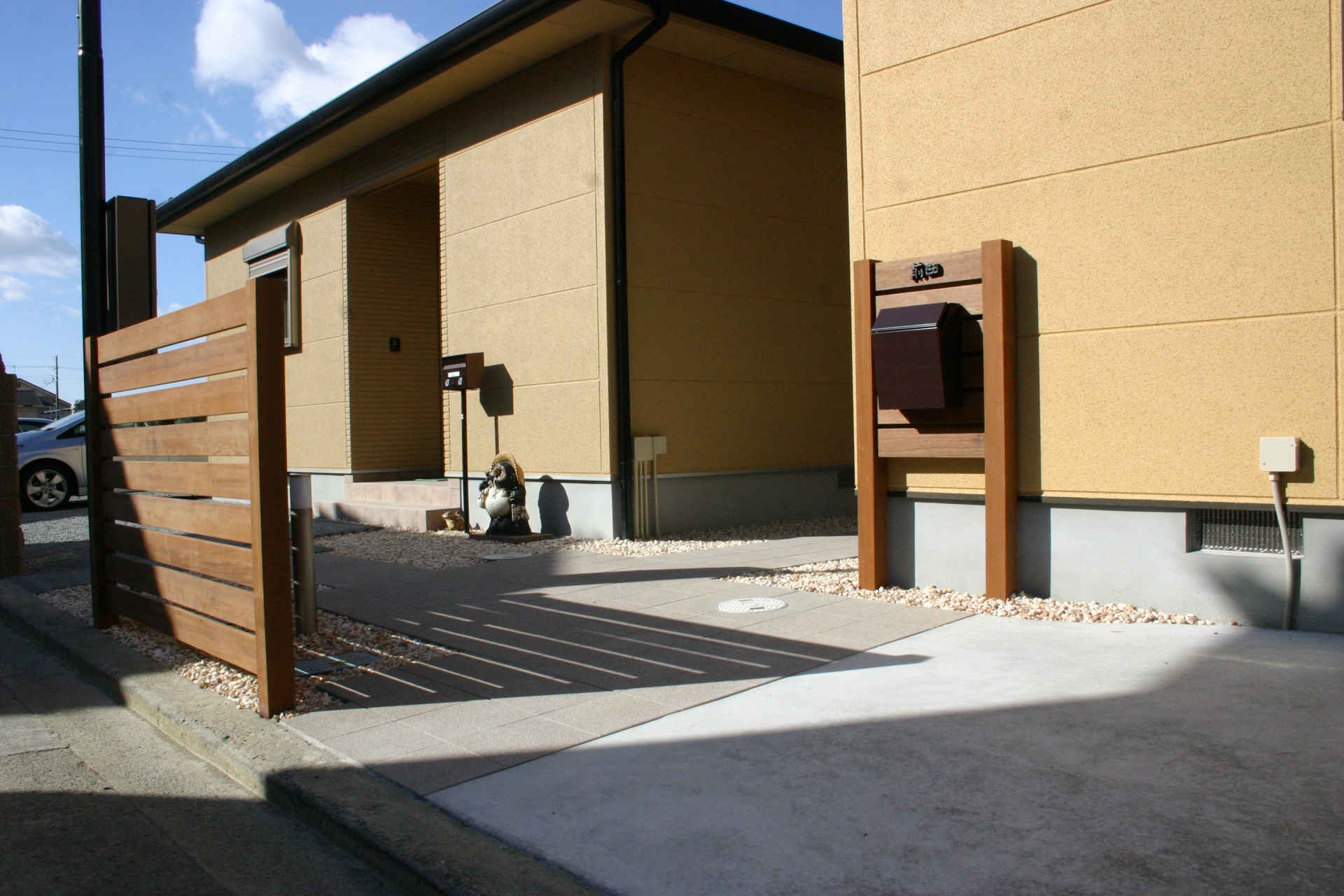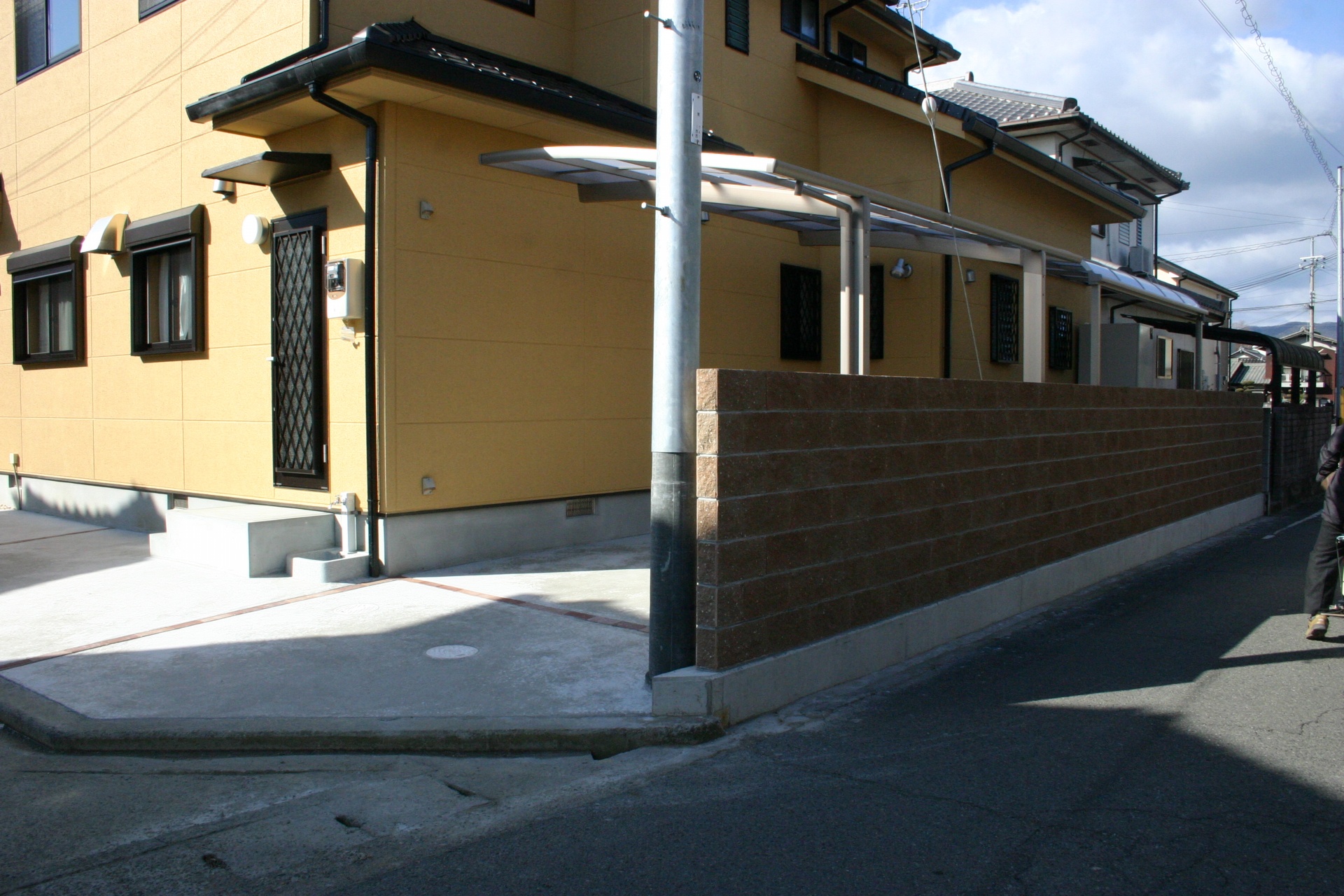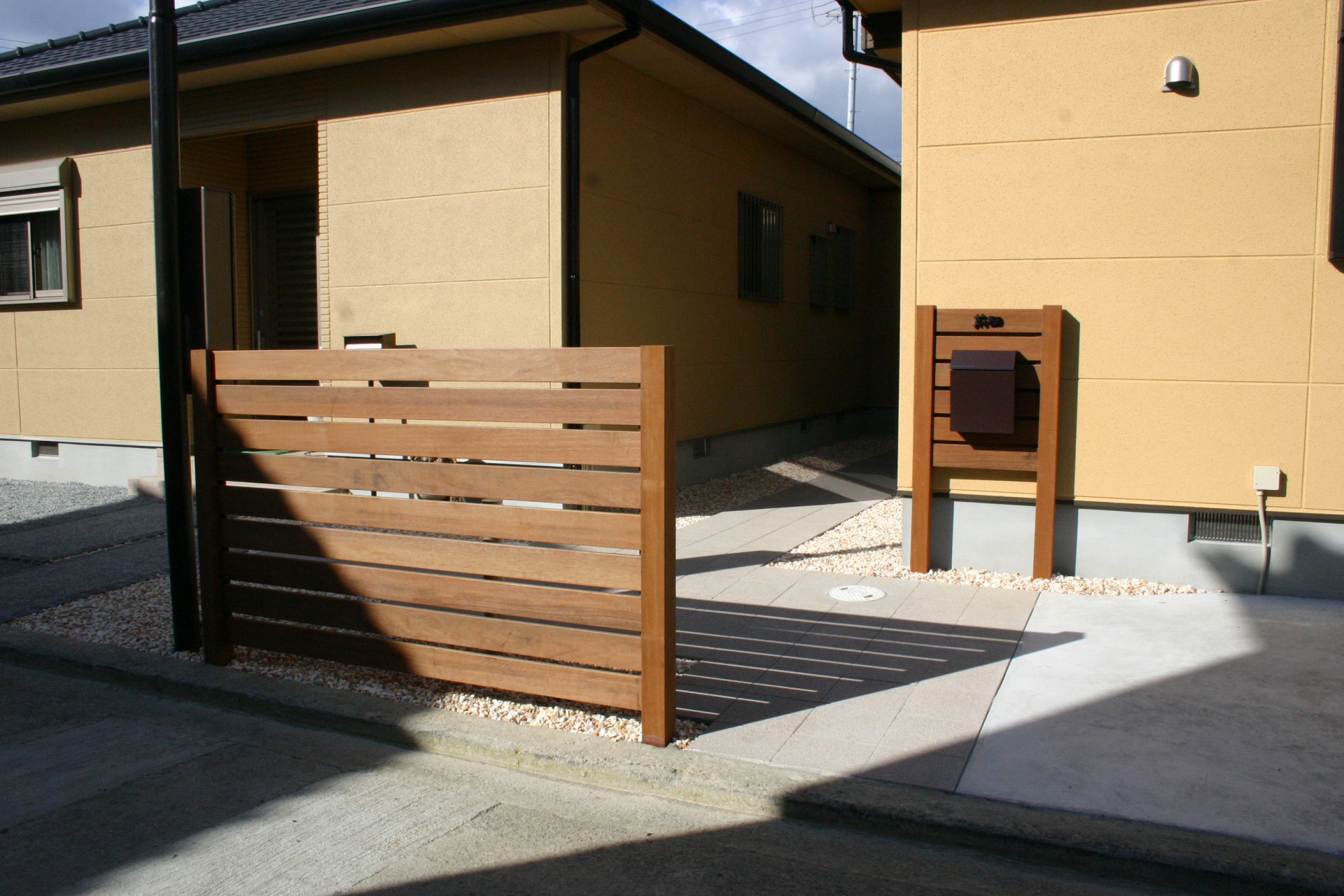 施工実績 ウリン材を使用した看板風門柱 たつの市M様邸 ウリン材で塀を作っています。正面からビスが見えない様に工夫・拘っています。 自然の素材を使っていますので、経年変化と共に、 今後植栽等をお客様自ら増やして頂くのが楽しみですね。 駐車スペースには、カーポートを設置しています。
