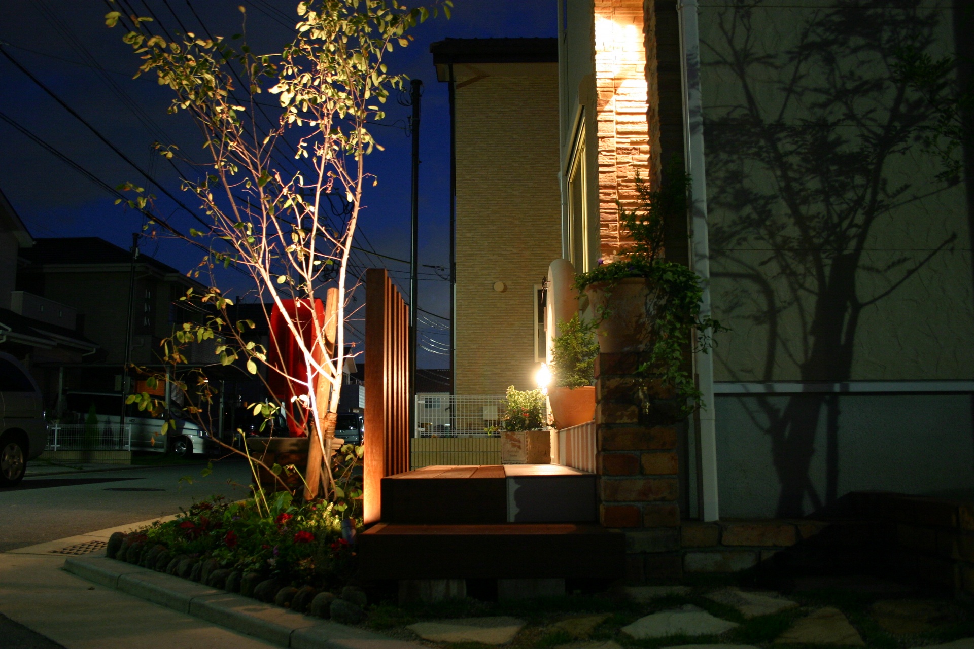 施工実績 ジュンベリーをライトアップ 加古川市O様邸 ナチュラルなお庭の加古川市O様邸。 自然素材を多く取り入れた中でシンボルツリーのジュンベリーを優しい明かりが照らします。 雑木の樹形がより存在感を出します。 門柱に取り付けたライトがサイドからのローデッキステップも照らし実用性もあります。 オレンジの光が優しく灯ります。