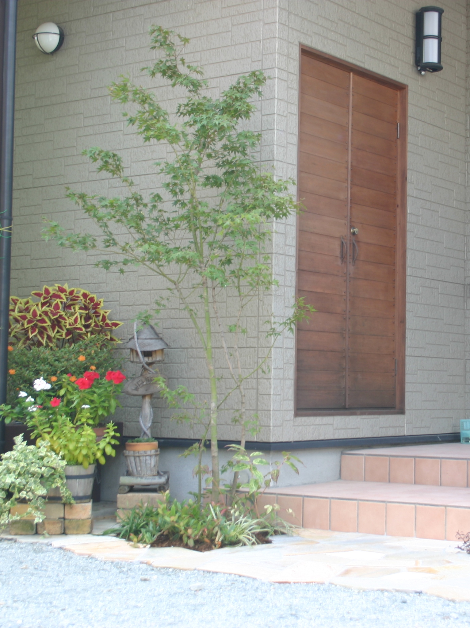 施工実績 紅葉が楽しみなイロハモミジ 太子町I様邸 玄関前を彩る四季の移り変わりを楽しんで頂けるイロハモミジを配置しました 来客やお家の方の目を楽しませてくれます このイロハモミジが入った施工写真はこちらです