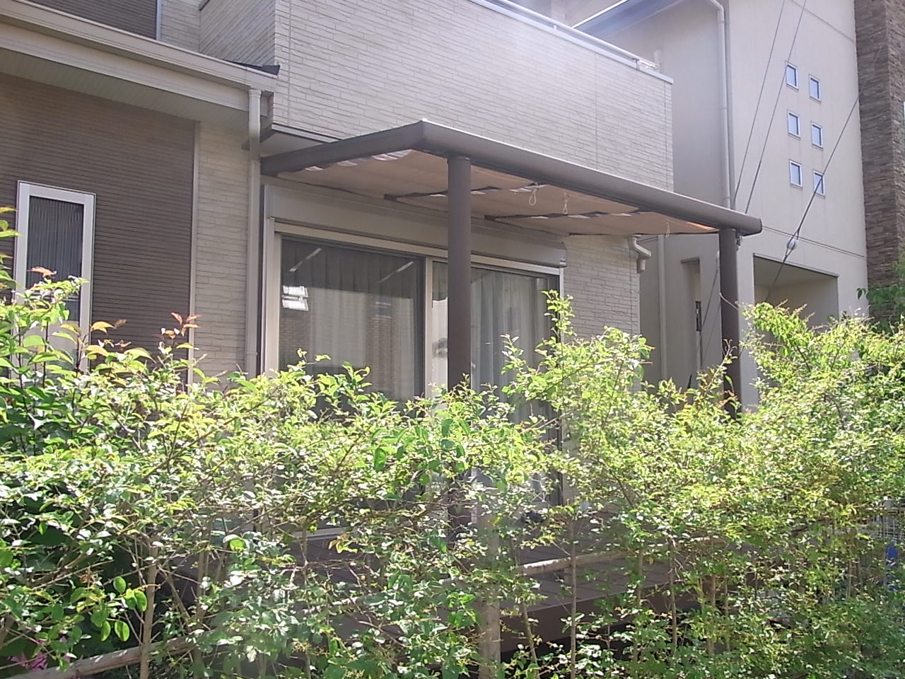 施工実績 ダークブラウンの落ち着いた樹の木テラス 加古川市A様邸 バリアフリーのワイドサッシにフラットに納まるダークブラウンのウッドデッキ。上部のテラスも同素材の樹の木テラスで組み合わせました。南向きの日当たり良好の加古川市A様宅。建物とのつながりを持たす為、落ち着きのあるダークブラウン系でまとめました。 日除けはブラウンをセレクト。 夏の強い日差しから室内を守ってくれます。 道路からのワンショット 人工樹脂の樹の木テラスが、違和感なく建物のブラウンとつながります。