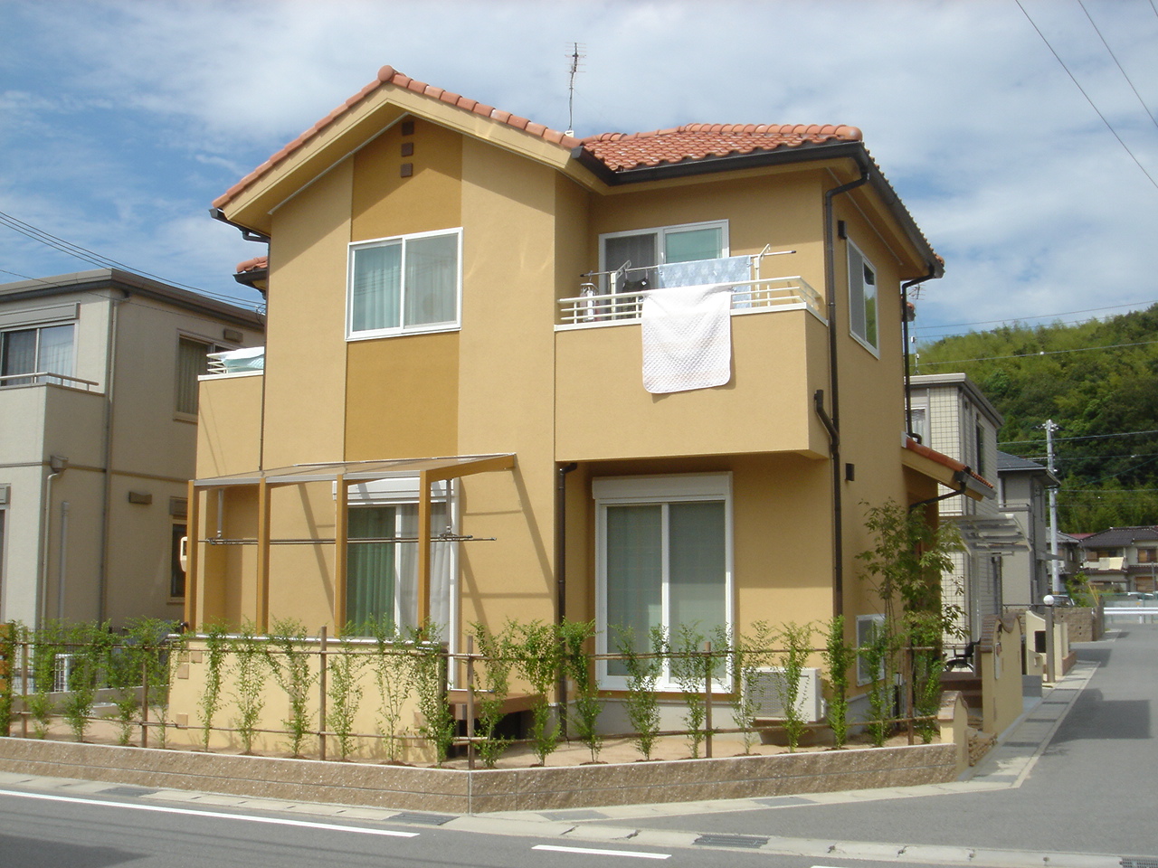 施工実績 ガーデンラウンジcocoma 腰壁タイプ 太子町H様邸 南向きのリビング前に、物干し兼用のcocomaテラスを施工しました。 下部はウッドデッキでお子様も遊ぶことのできるアウトドアリビングです。 建物に違和感なく溶け込むイタリアンウォールナット色をセレクト。