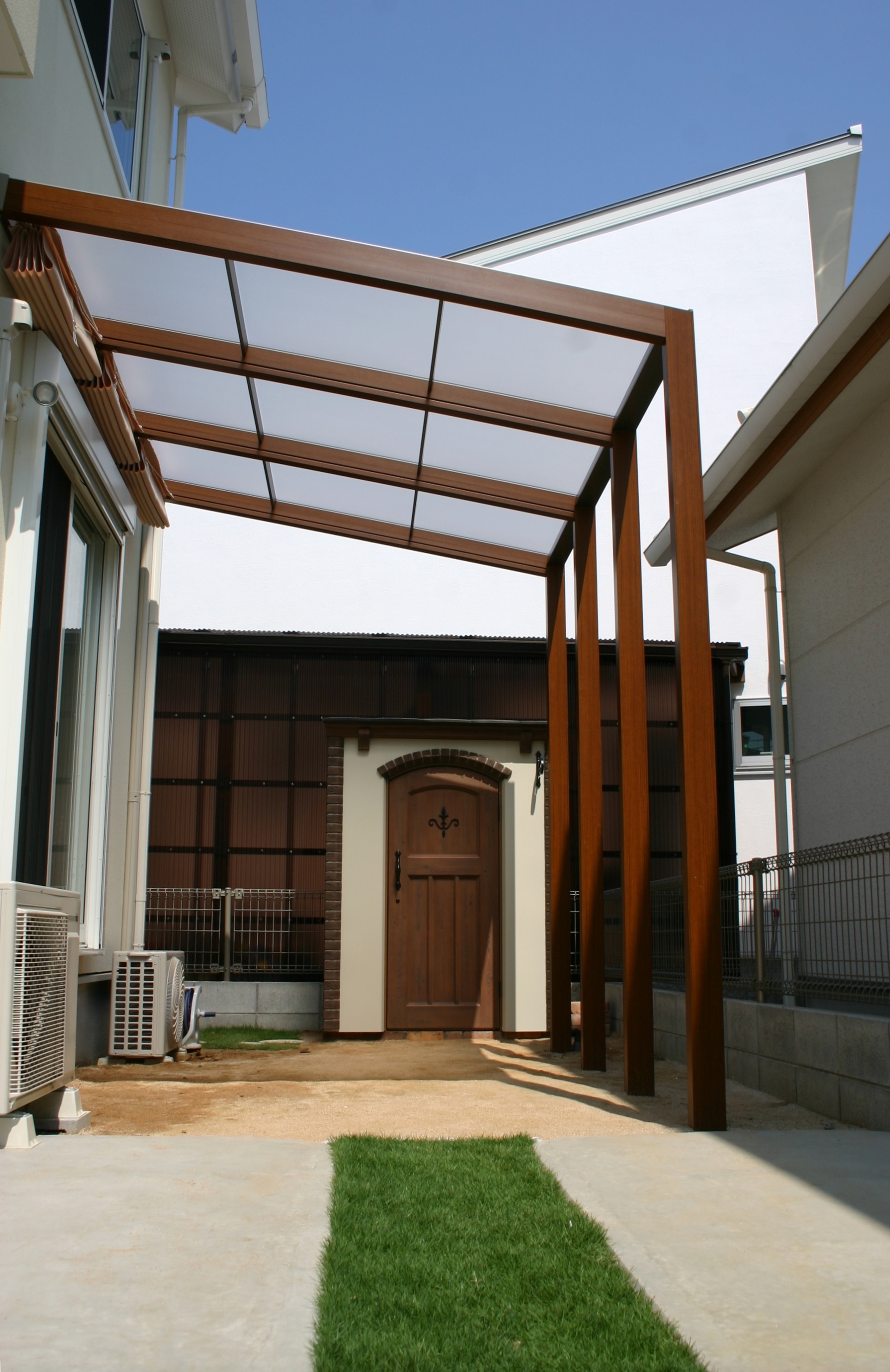 施工実績 おしゃれな自転車置き場にココマオープンテラス 姫路市I様邸 自転車の台数が多い為、外構をするにあたり自転車置き場もご提案する必要がありました 車庫スペース等を考慮するとリビング前の空間にココマを取り付け駐輪場としています お子さんが大きくなり自転車の台数も少なくなると、この空間をまた違った使い方が出来ると思います クリアマットの屋根材を使用することで、隣家の2Fより目隠し効果があります ココマの奥にはおしゃれ物置:カンナ キュートがあります