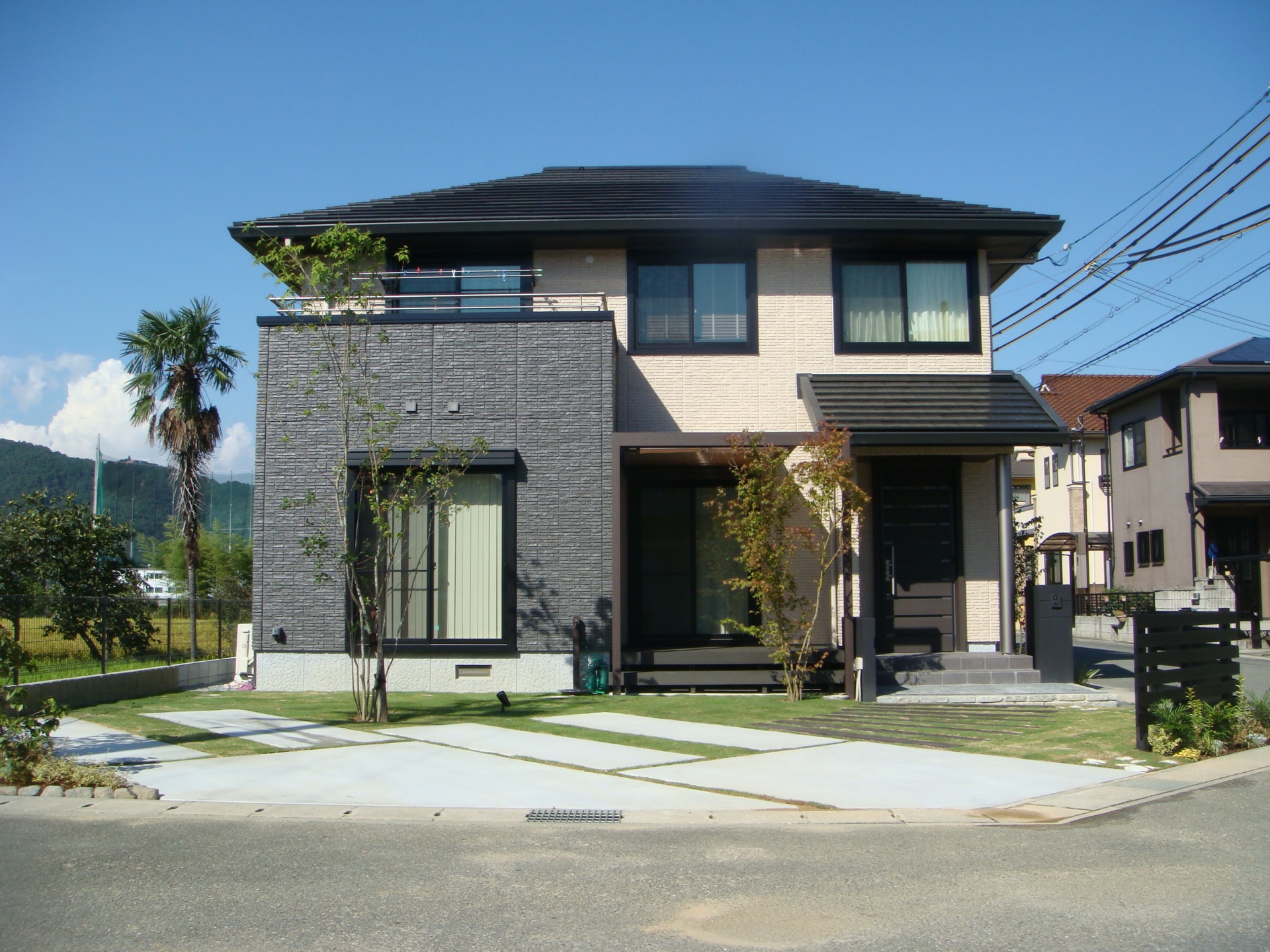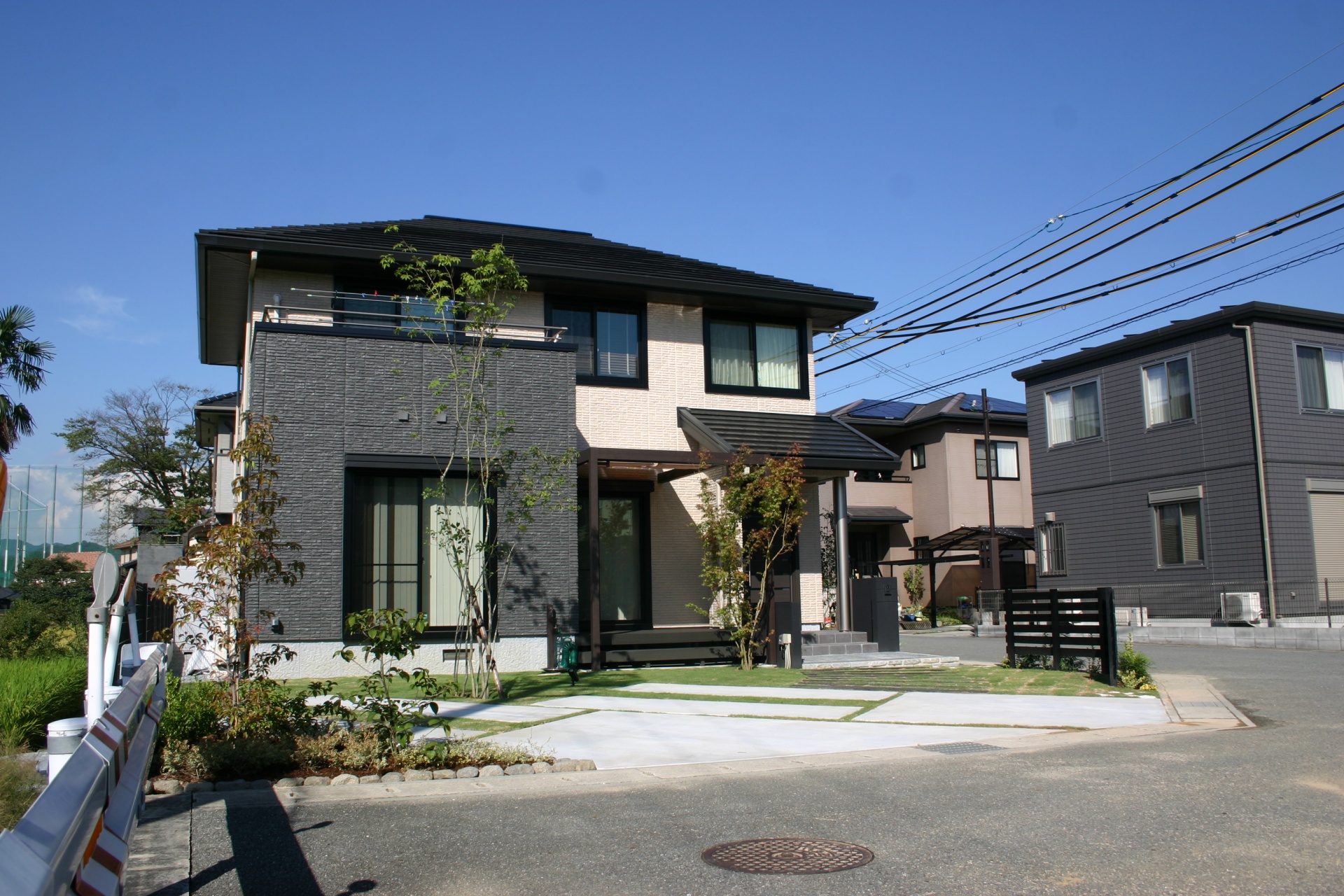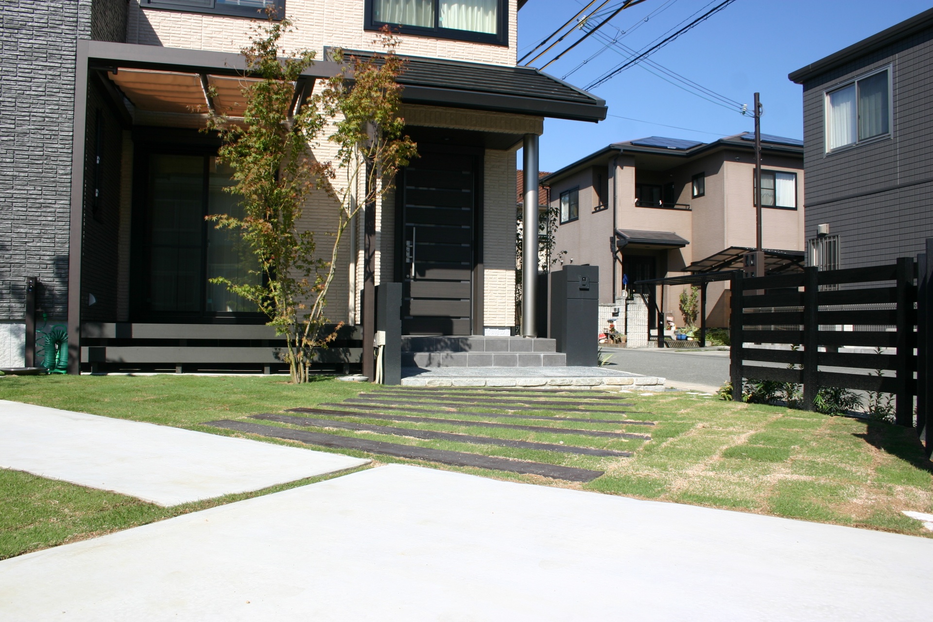 姫路市新築外構 斜め駐車で奥行き感をだし黒でモダンな門回り
