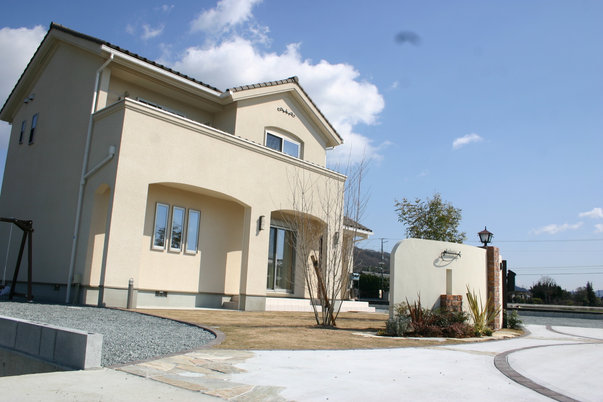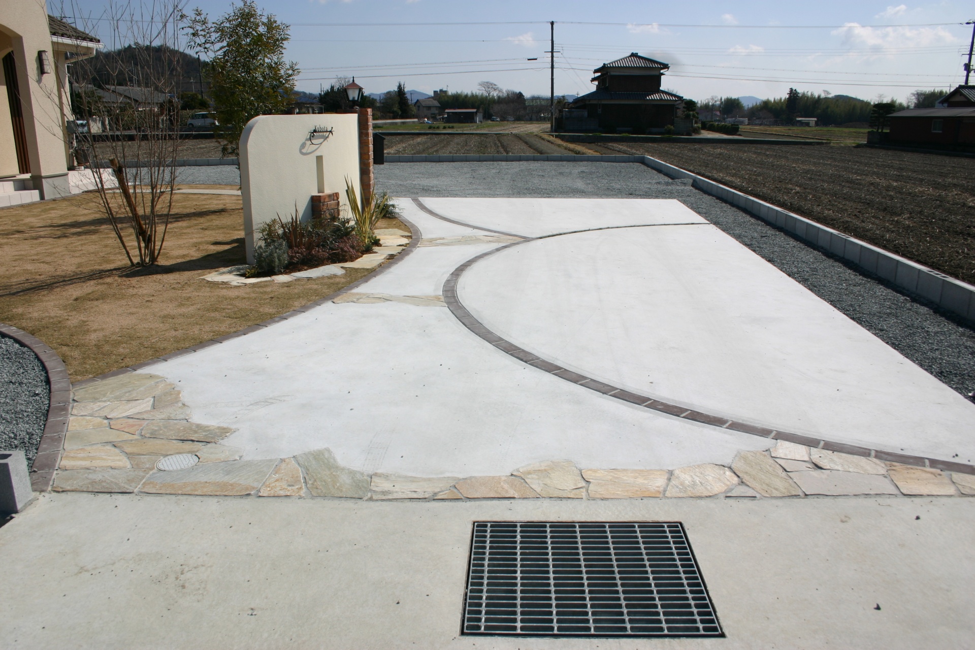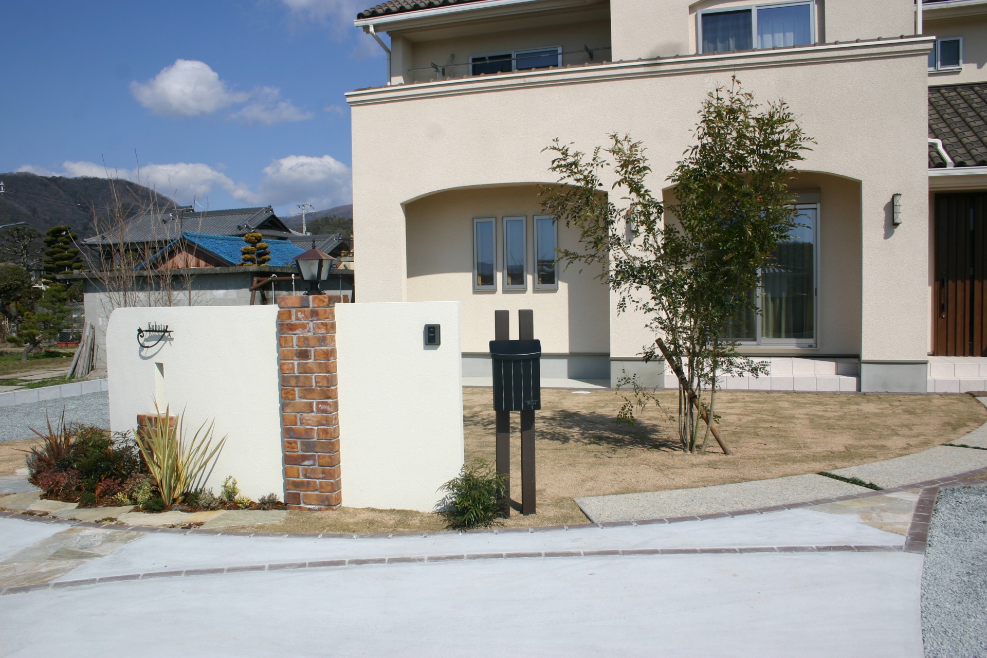 施工実績 たつの市新築外構 曲線を生かしたガーデンエクステリア 海辺のリゾートを彷佛とさせる外観のたつの市K様邸。リビング前のタイルテラスからは芝生のグリーンが広がります。ポイントにレンガ角柱をデザイン。ホワイトウォールの門柱がアイアンサインを引き立ててくれます。 before ツインのアーチウォールがリゾート風によく似合います。シンボルのヤマボウシが四季の移り変わりを感じさせてくれます。 アイストップに植樹した常緑のシマトネリコ。ディーズガーデンのポスト・表札でトータルコーディネイトしました。 奥のガレージにつながる通路兼アプローチ。レンガラインとタマリュウグリーンラインでアクセントデザインしました。