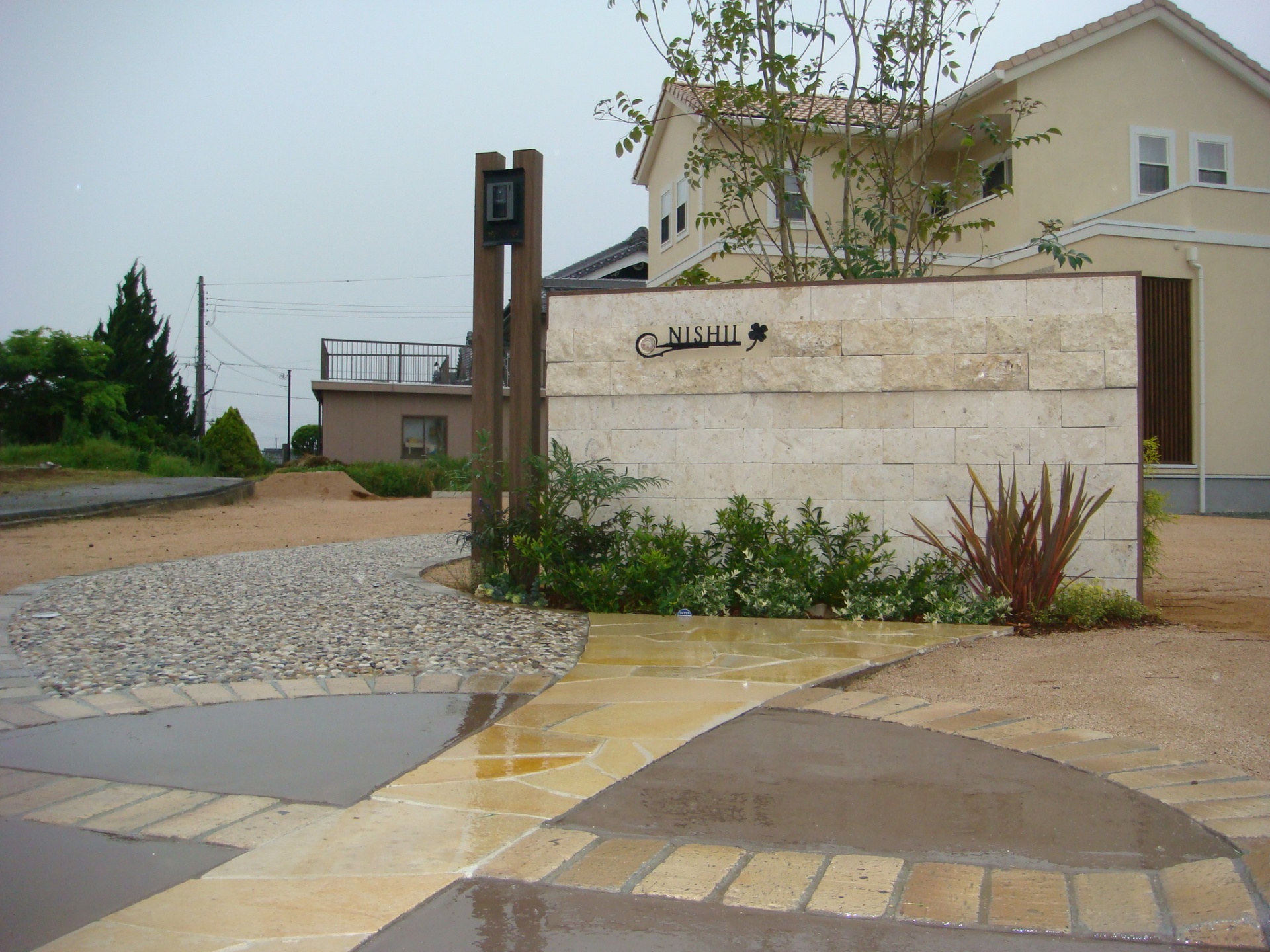 施工実績 フロントガーデンの一体感LIXIL人工木デッキ樹ら楽ステージ たつの市H様邸 玄関扉とリビング前の窓が隣接していましたので一体感のあるデザインをご提案させていただきましたLIXIL:人工木樹ら楽ステージ木彫を設置し統一感を持たせて広々とした空間となっていますリビングの窓の正面にはシマトネリコを植え目隠し効果がありますワインレッドのボビポストもいい差し色になってくれていますその他隠れミッキーがいる自然石アプローチのお庭はこちらからどうぞ