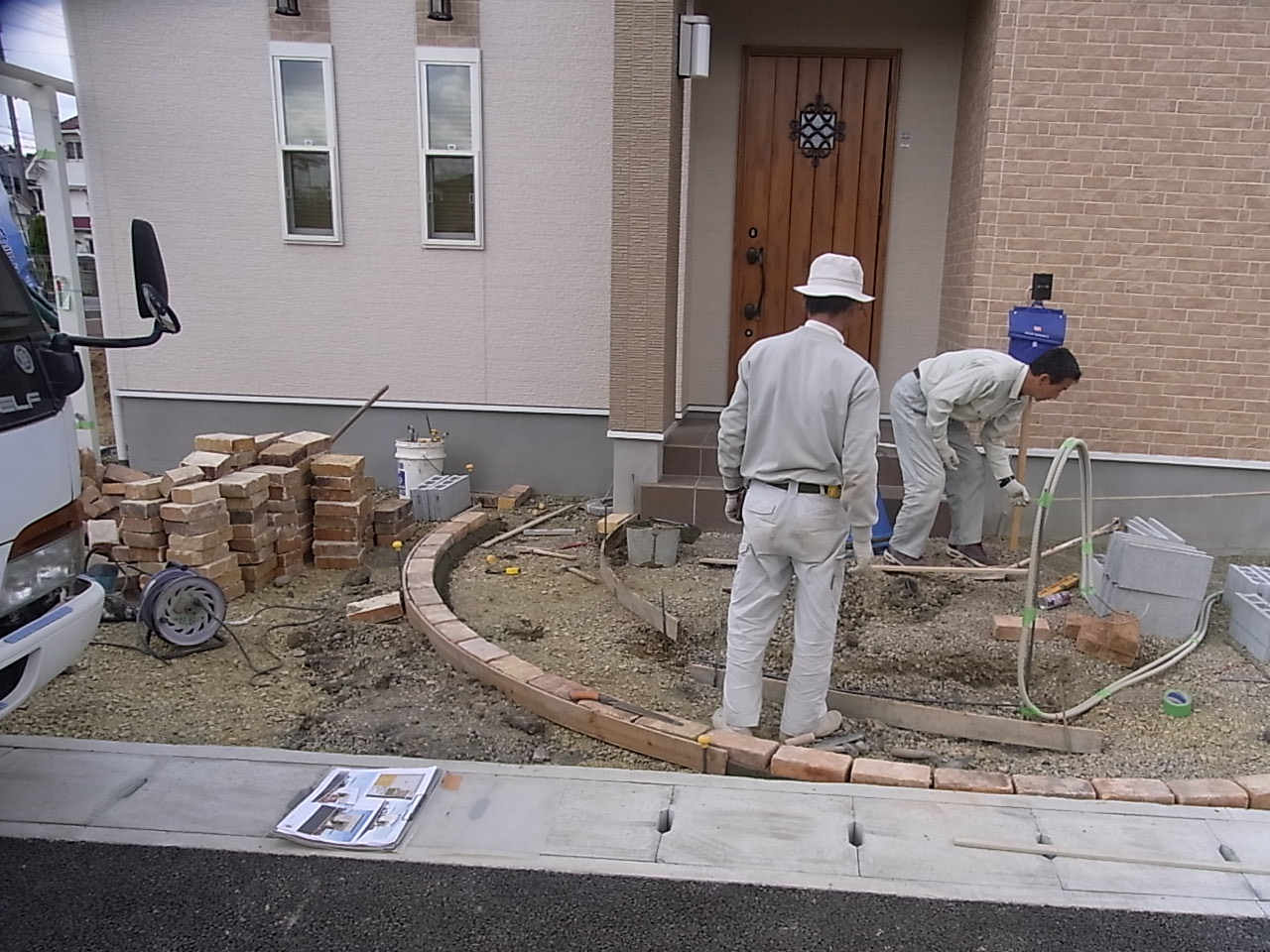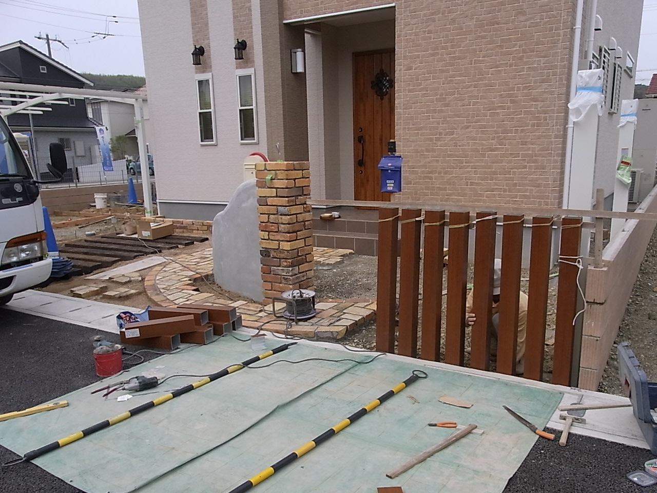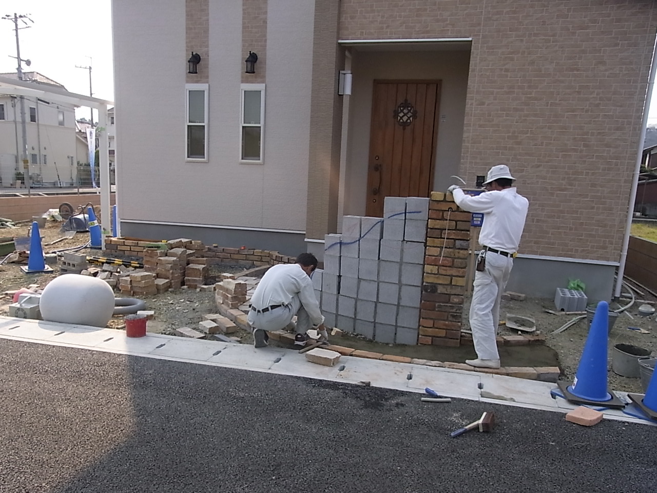 いよいよヴィンテージレンガ、塗門柱下地に入っていきます。