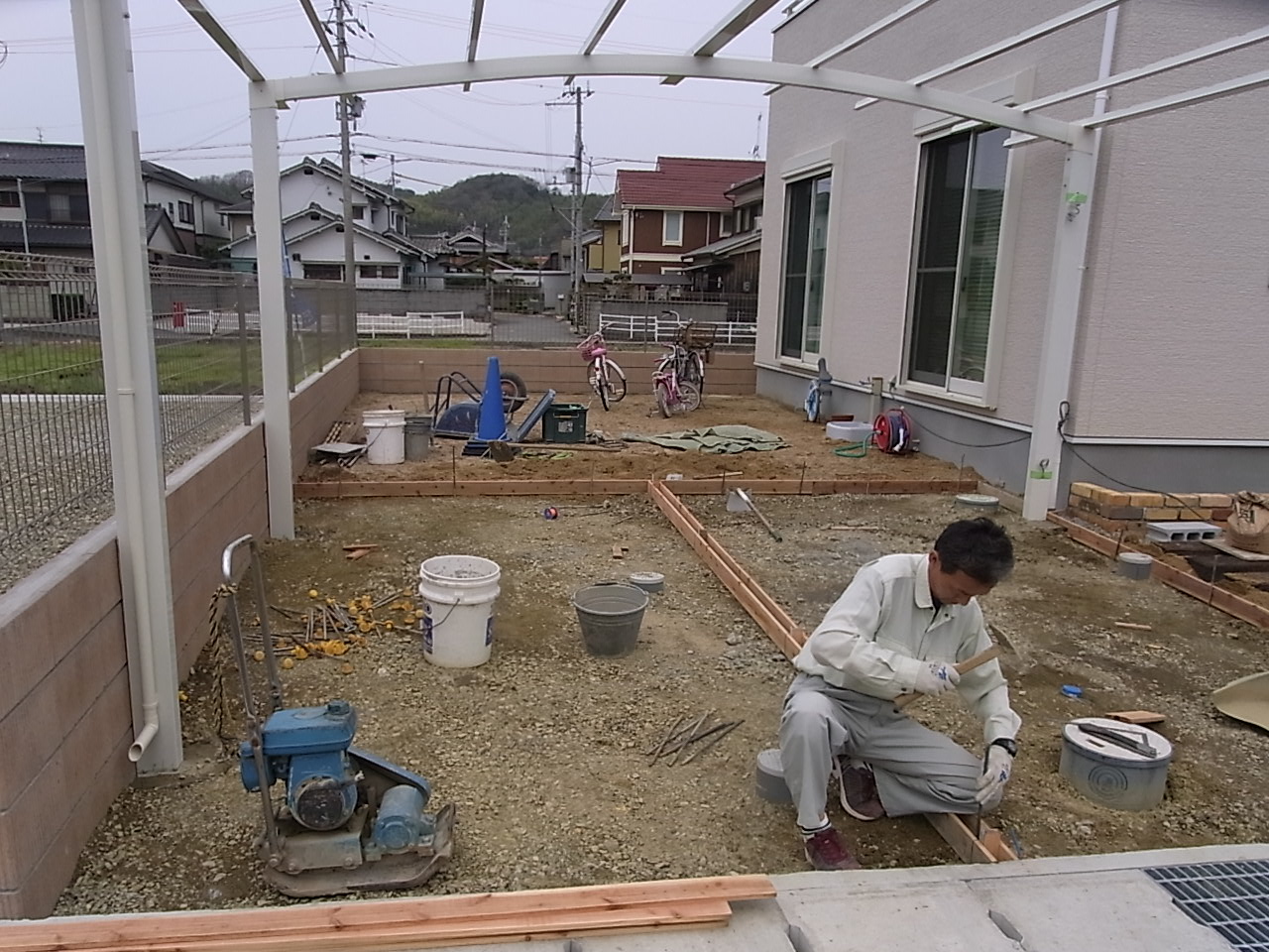 カーポート完了後に土間コンクリート下地準備に移ります。