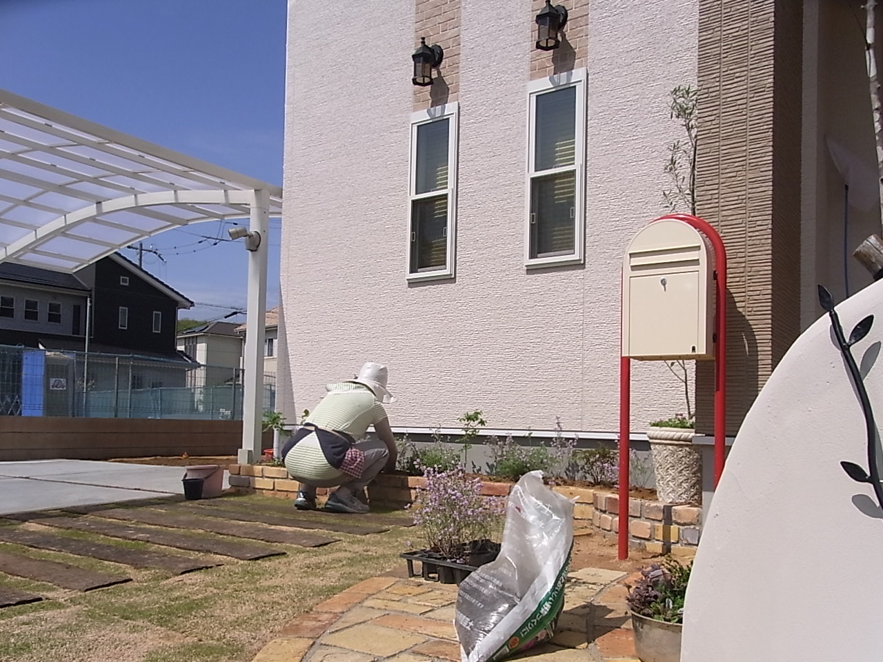 ハード部の施工後に、様々な植栽の植え込みに入ります。