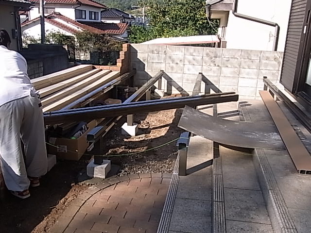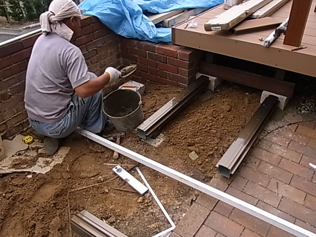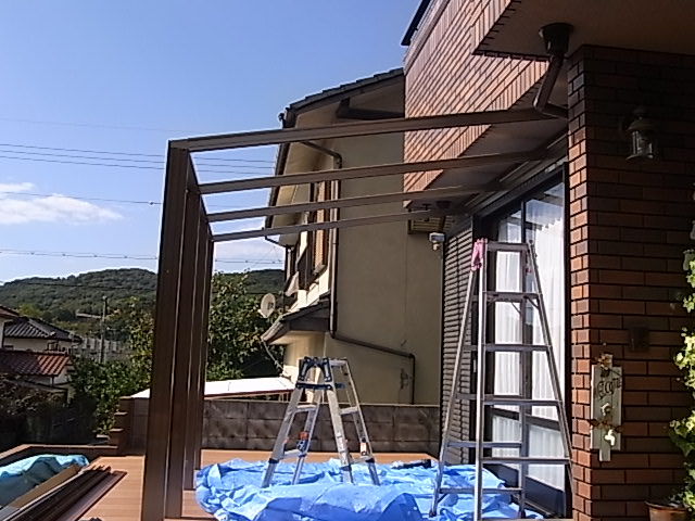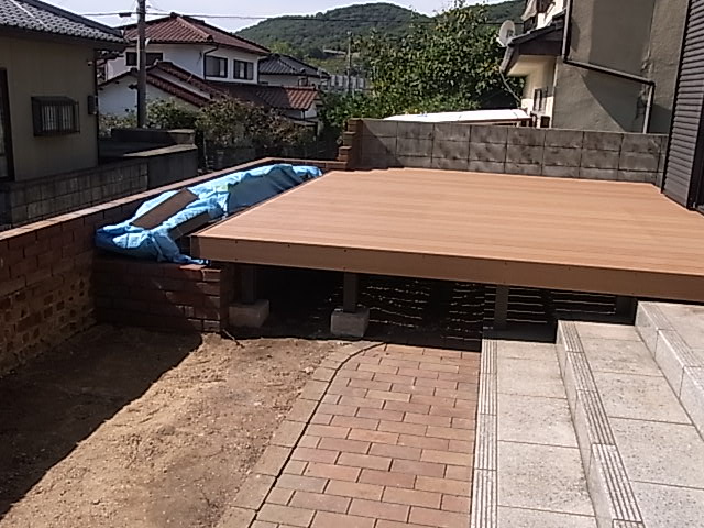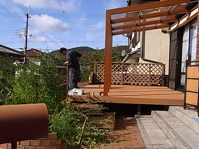 ウッドデッキを貼りつめいよいよガーデンラウンジココマの施工です。