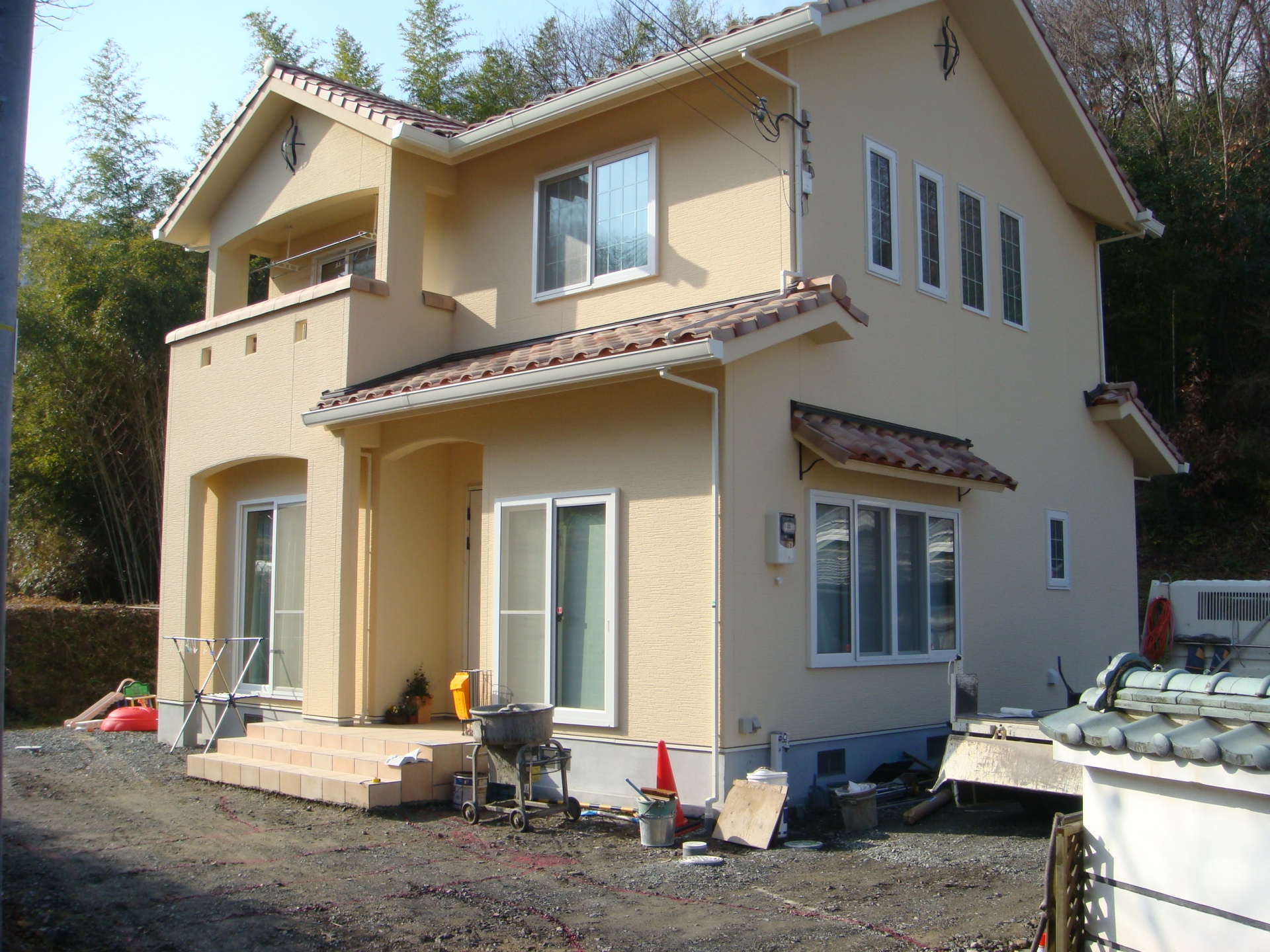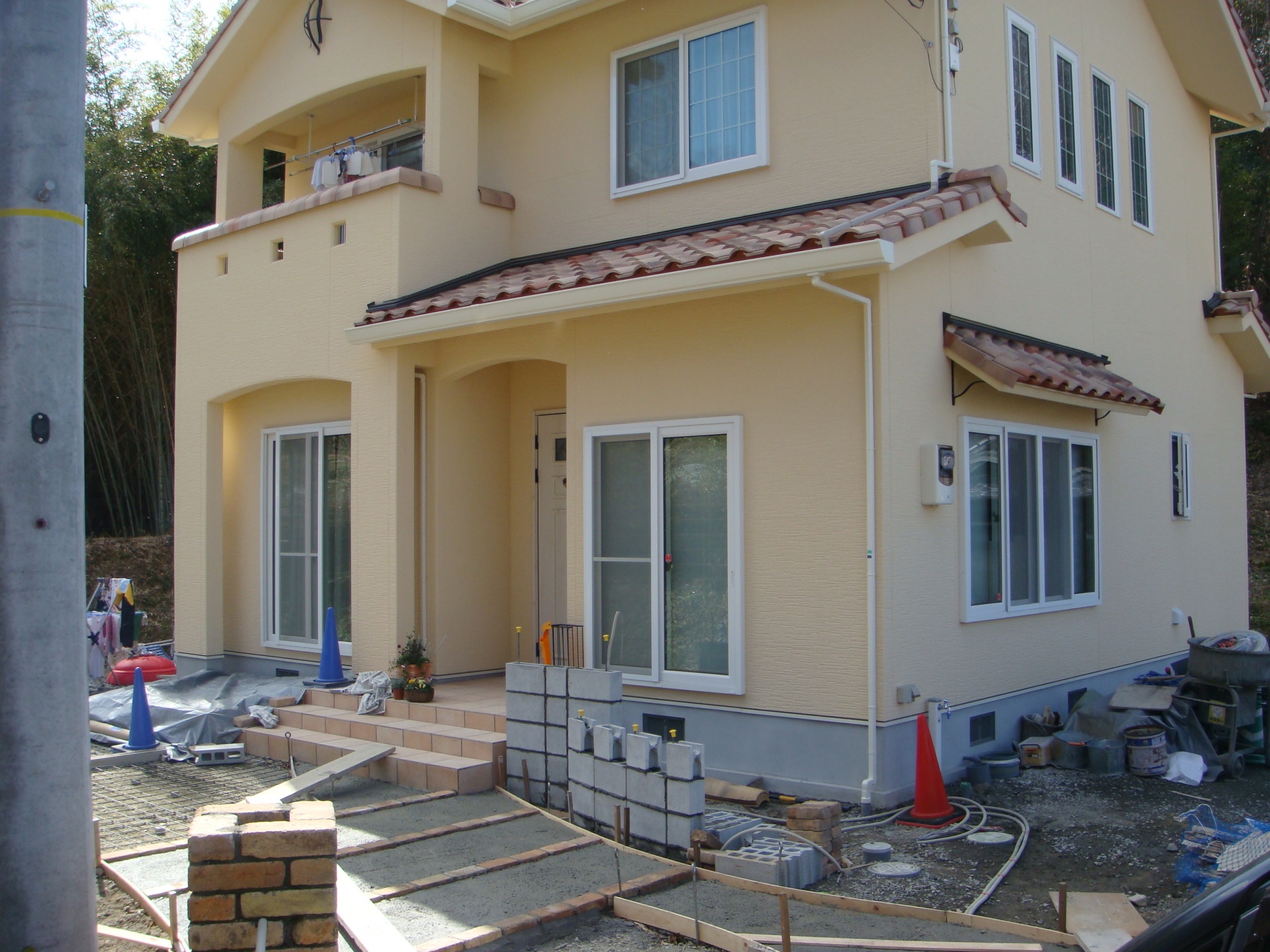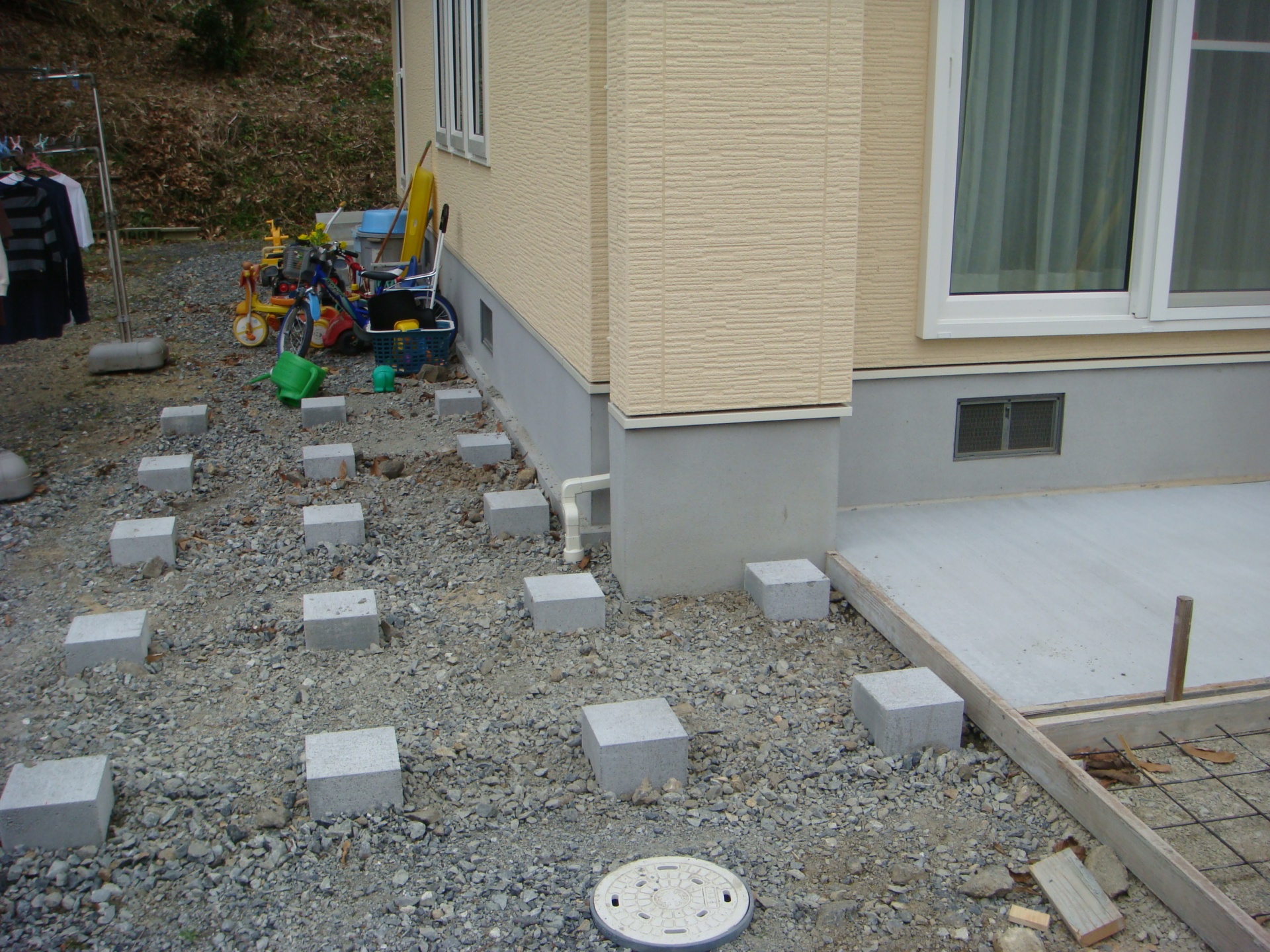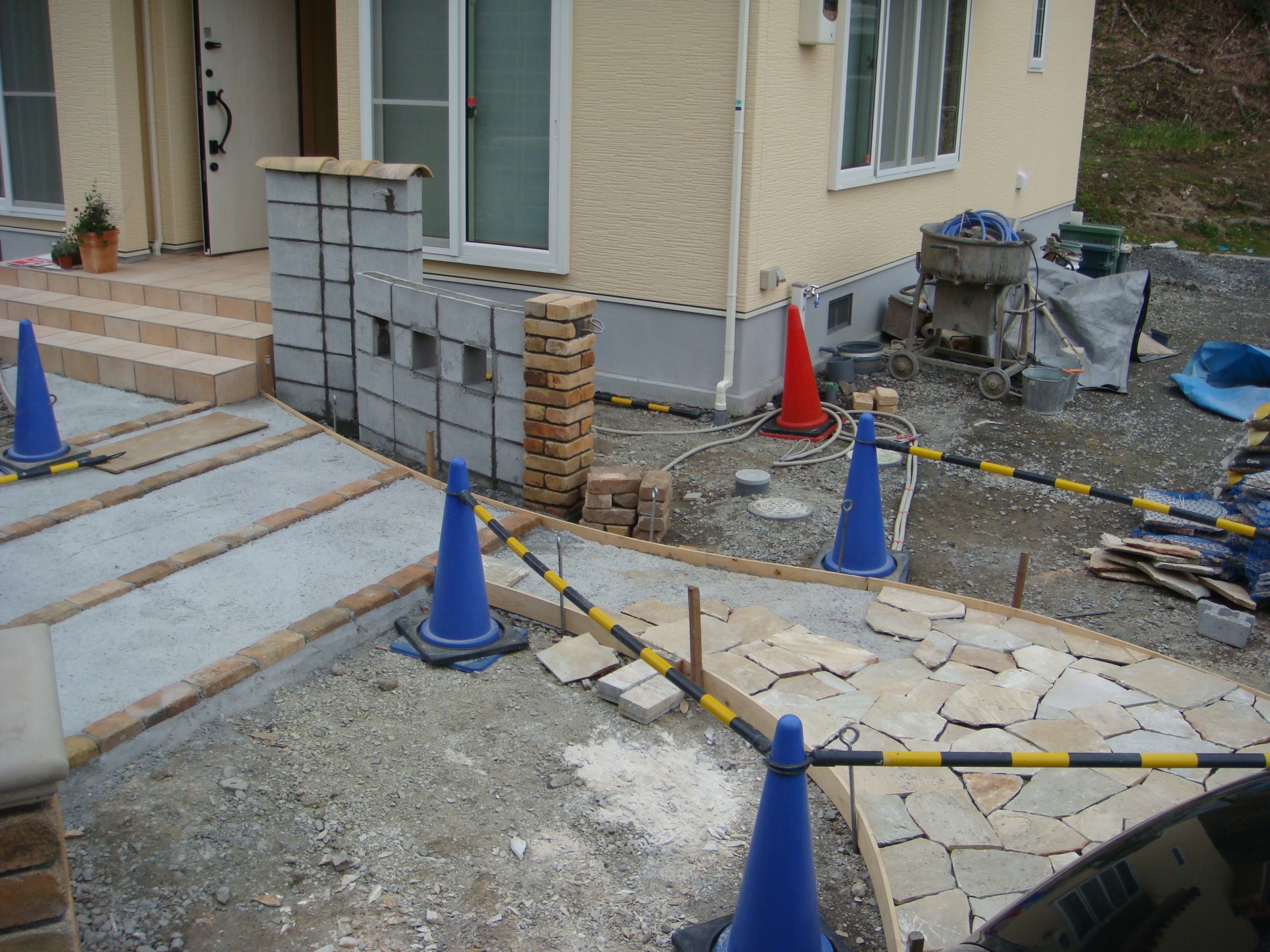 アプローチの下地コンクリートも打ち、仕上げ作業に入っていきます。