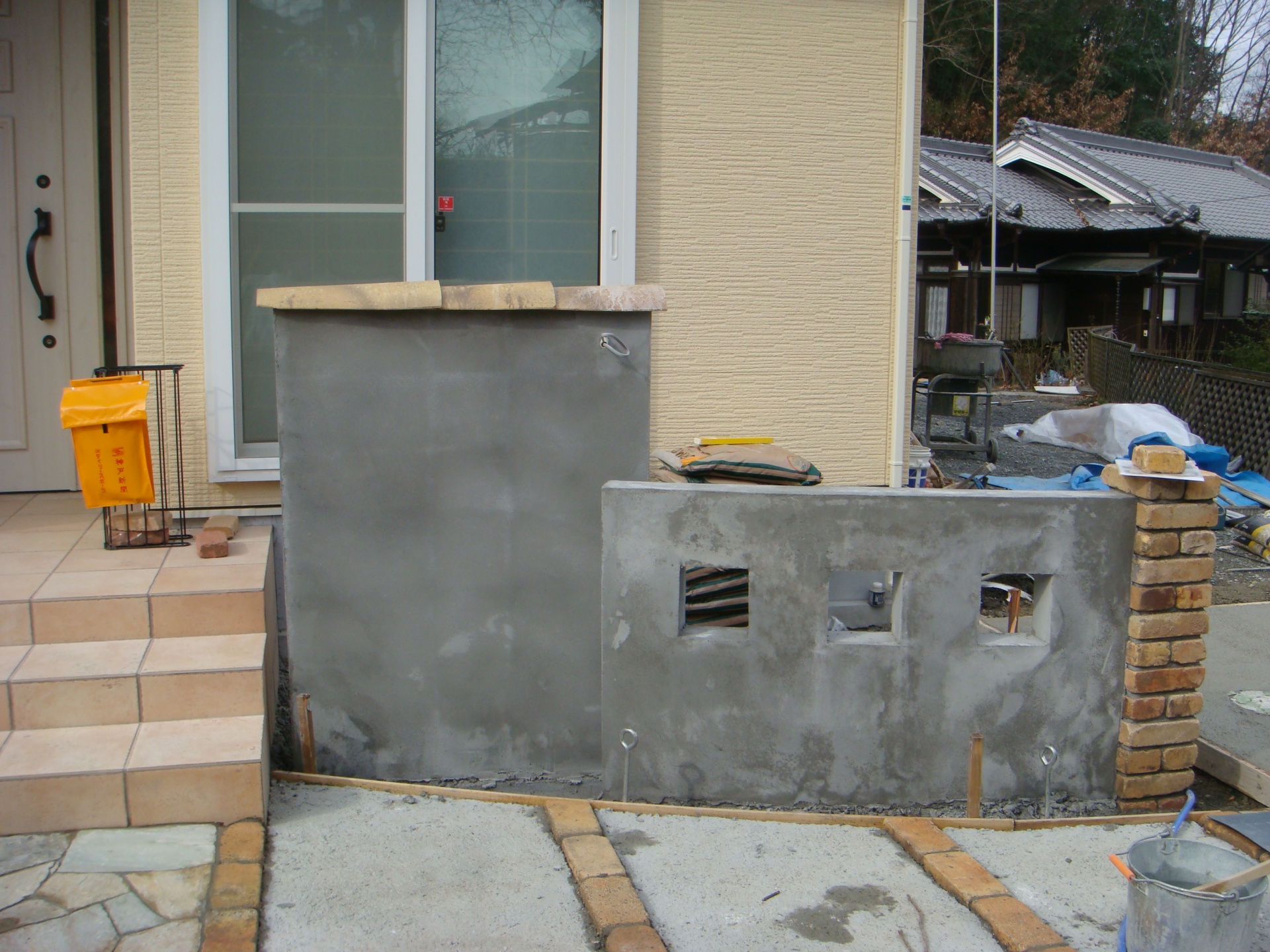 塀の後ろにあるカラーモと呼ばれるモルタルで、
